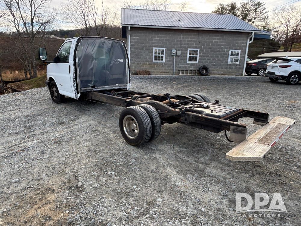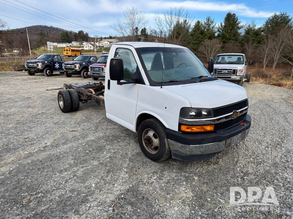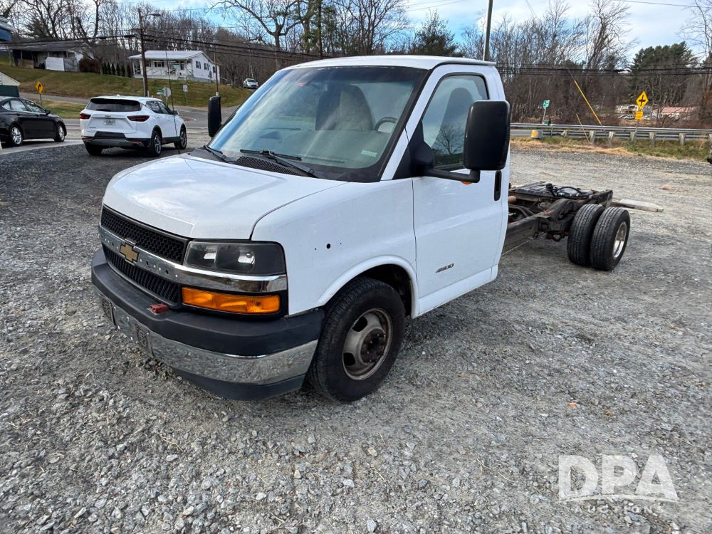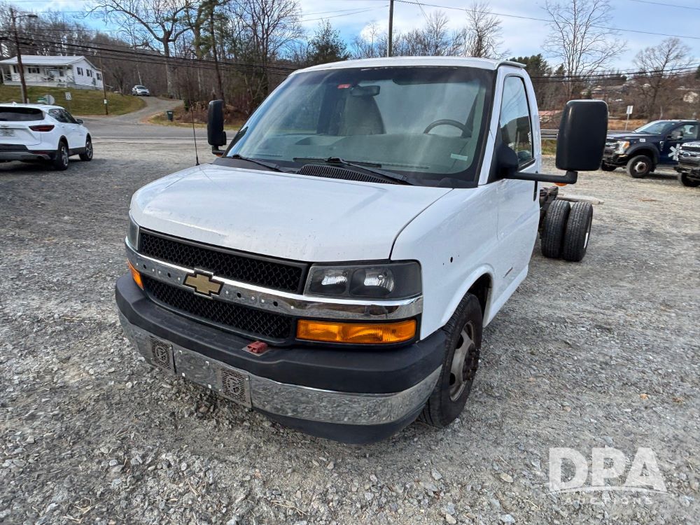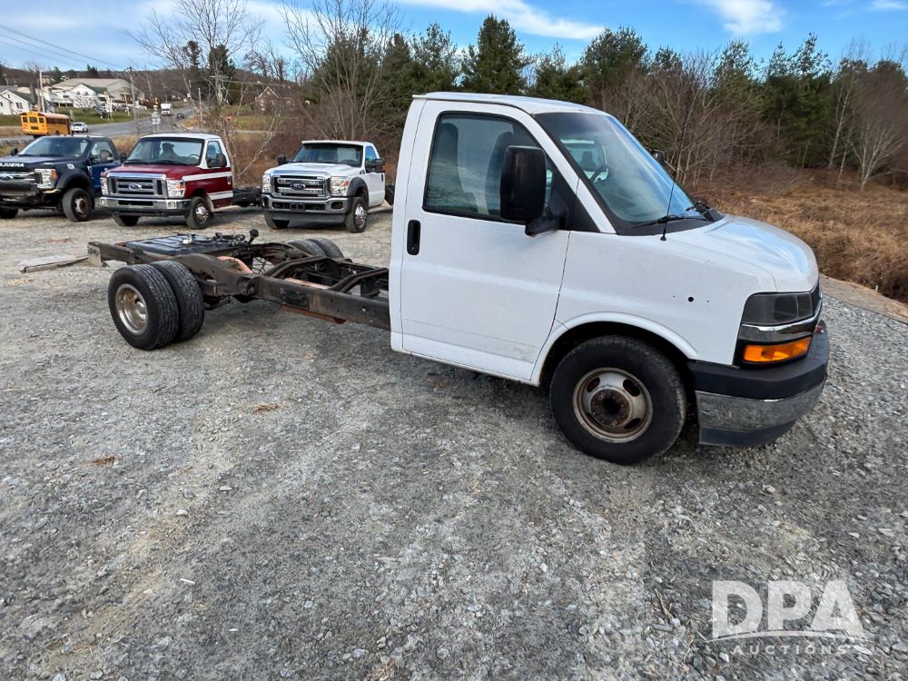 2018 Chevy 4500 Chassis (GP12132), Vortec 6.0L V8 engine, automatic transmission, air conditioning, heat, am/FM radio, shows 309,833 miles.