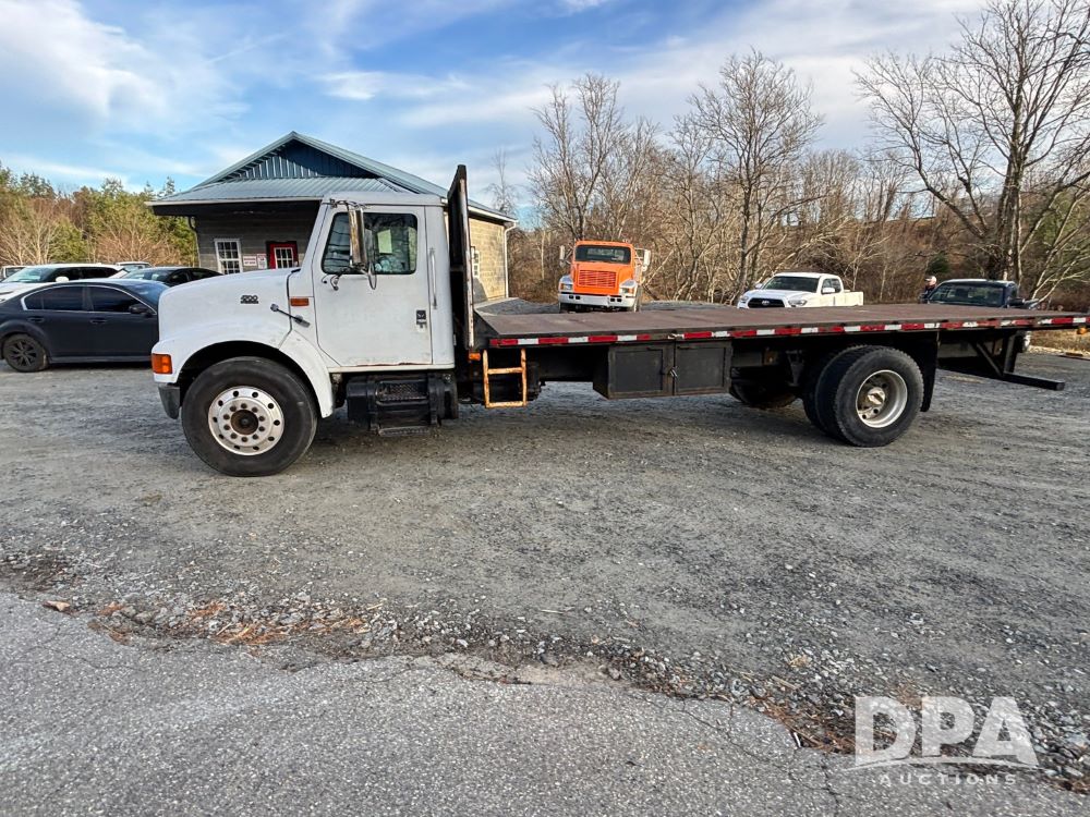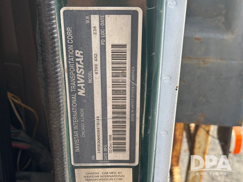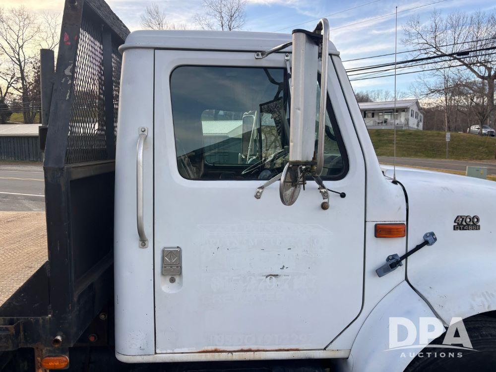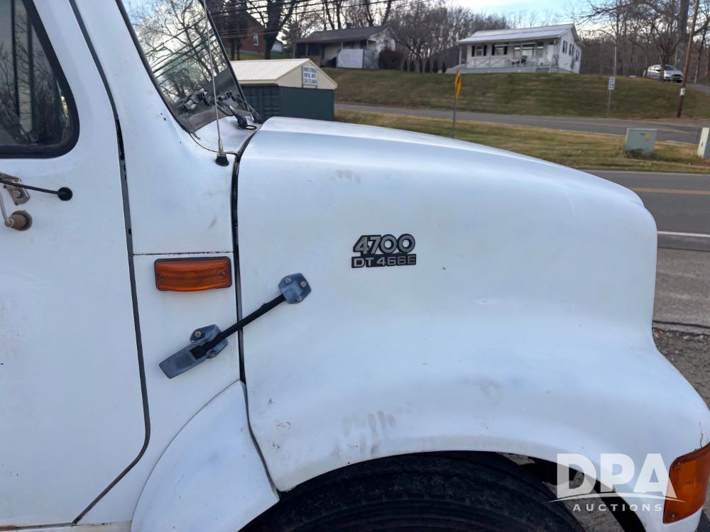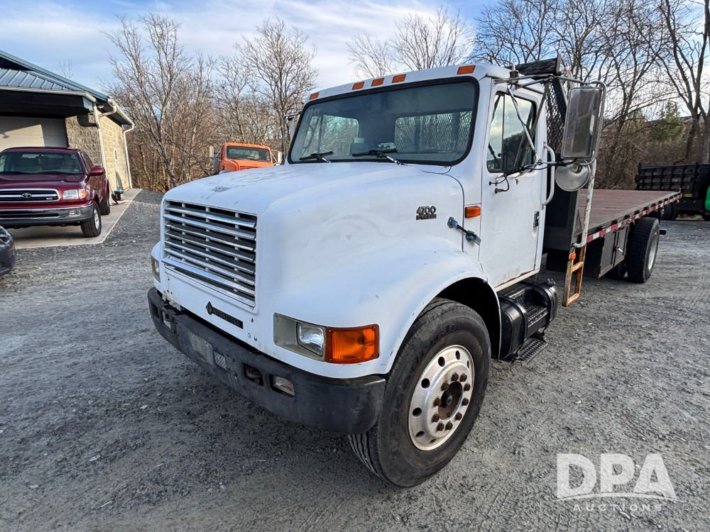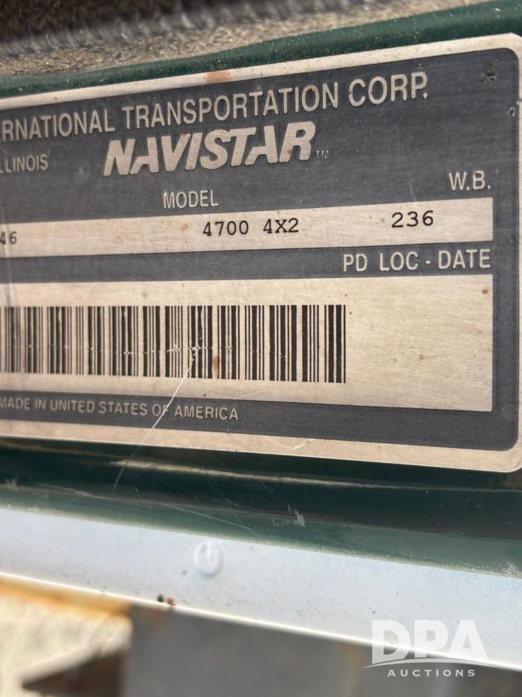 1999 International 4700 Flatbed (GP12135), 4 X 2, DT 466E engine, 6 speed Plus transmission, tandem axle, air ride suspension air conditioning, heat, am/FM radio, 22' flatbed, hydraulic brakes, 11R22.5 tires, shows 285,470 miles.