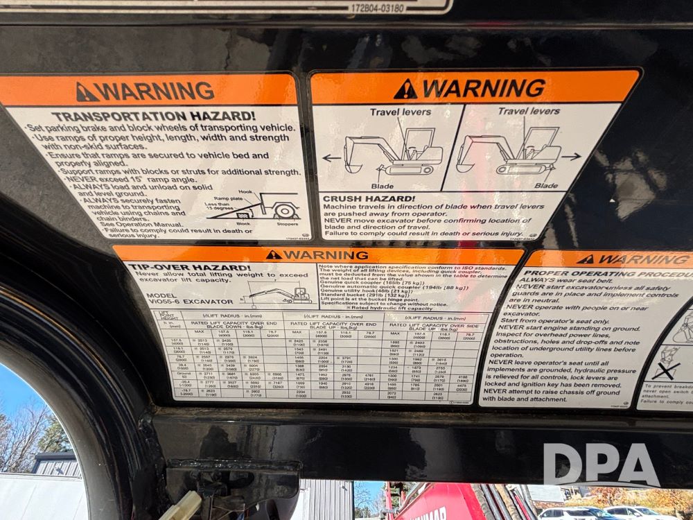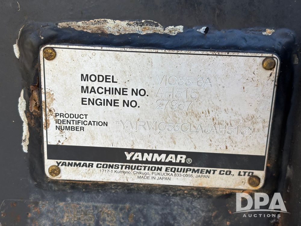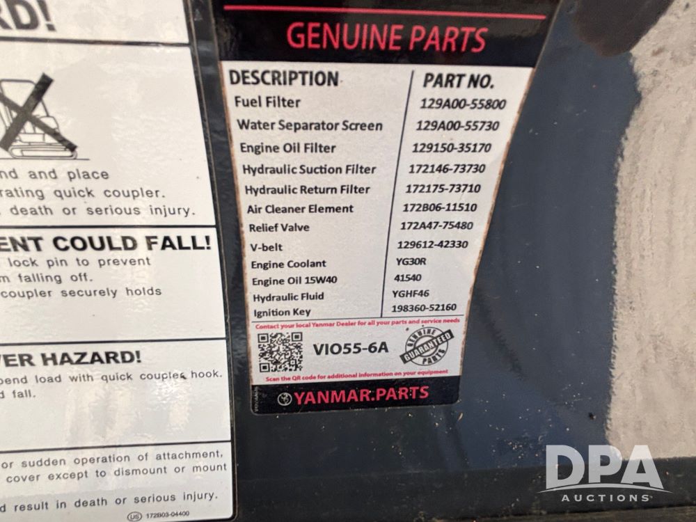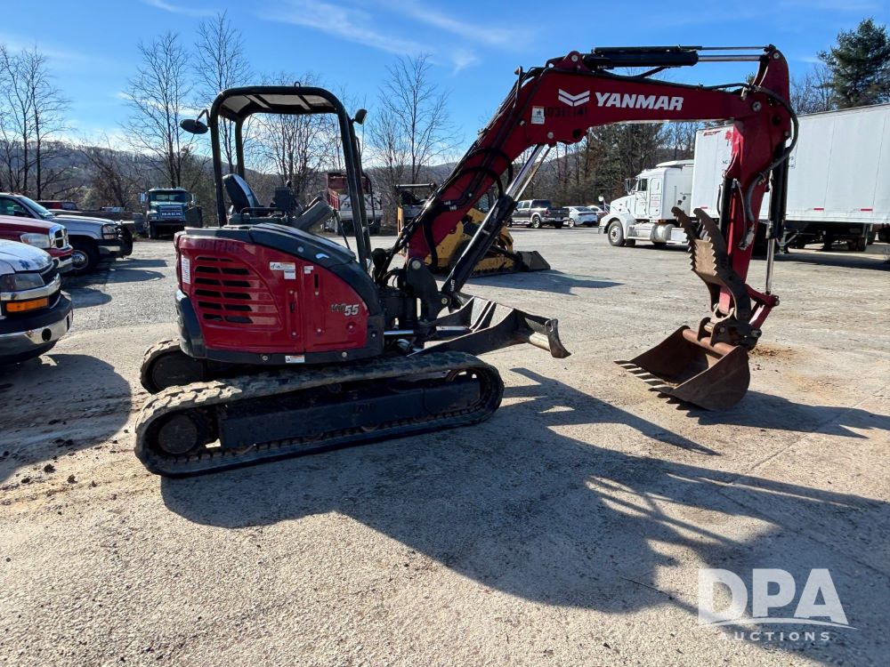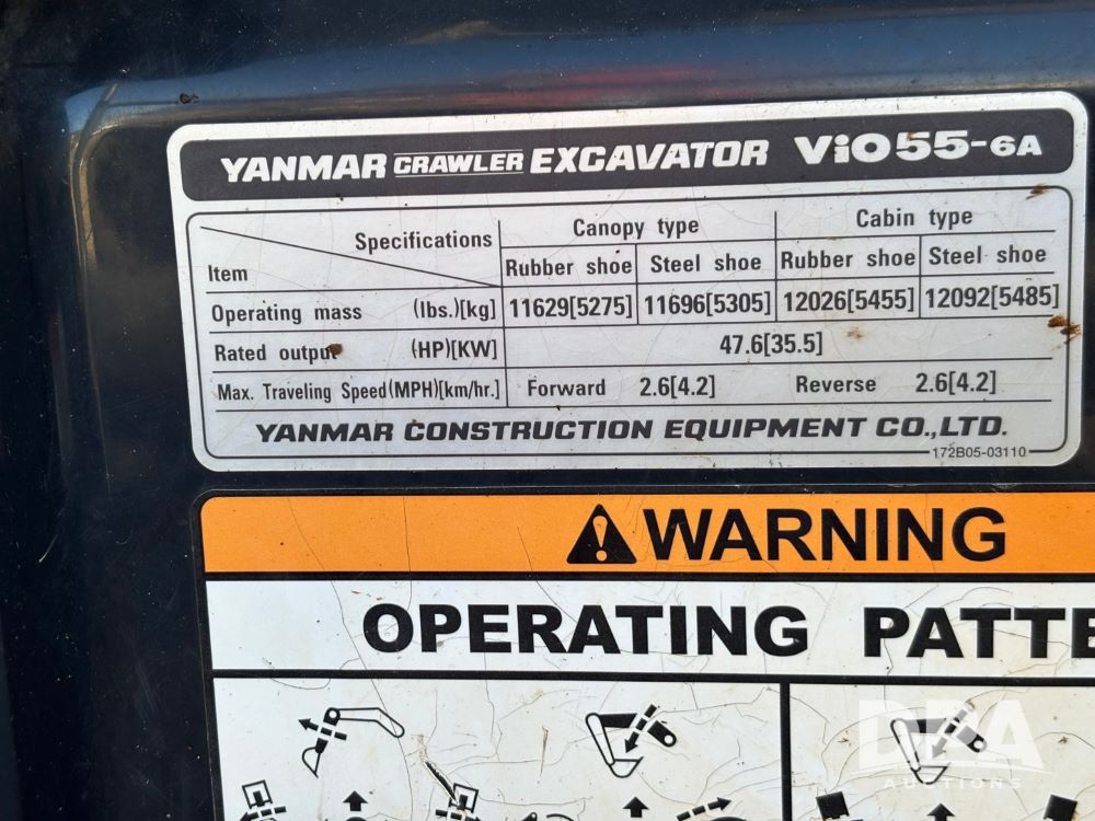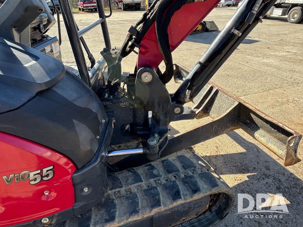 2020 Yanmar VIO55 Excavator (GP12151), turbocharges Tier 4 final engine, 47 hp, 2 speed, 5.5 ton class mini excavator, digging depth of 13 feet 6 inches, zero tail swing design, hydraulic quick coupler, tracks good, ROPS, shows 2405 hours.