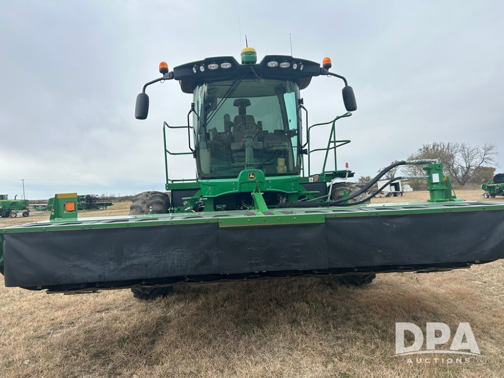Notes: This windrower was just inspected at John Deere service the end of October 2025 and an inspection summary can be provided at buyer's request. The globe and monitor will not be included in this sale, the bottom step is coming off, and the windrower has been plumbed for a merger attachment.