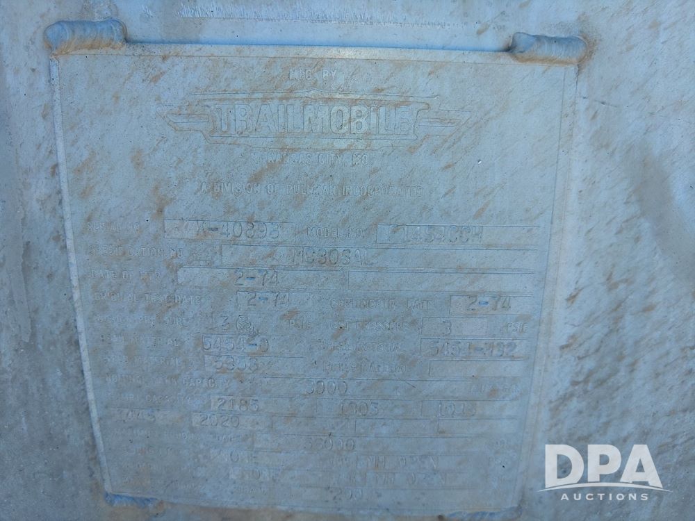 1974 TrailMobile Fuel Transport Trailer (JM682), Model F14S4CCH, 8,000 gallon capacity, 5 compartment (2,185, 1,305, 1,045, 1,445, 2,020), tandem axle, air brakes, steel frame, full-length walkway, tires- 11R24.5.