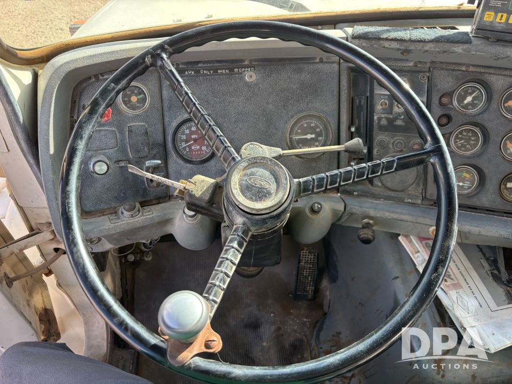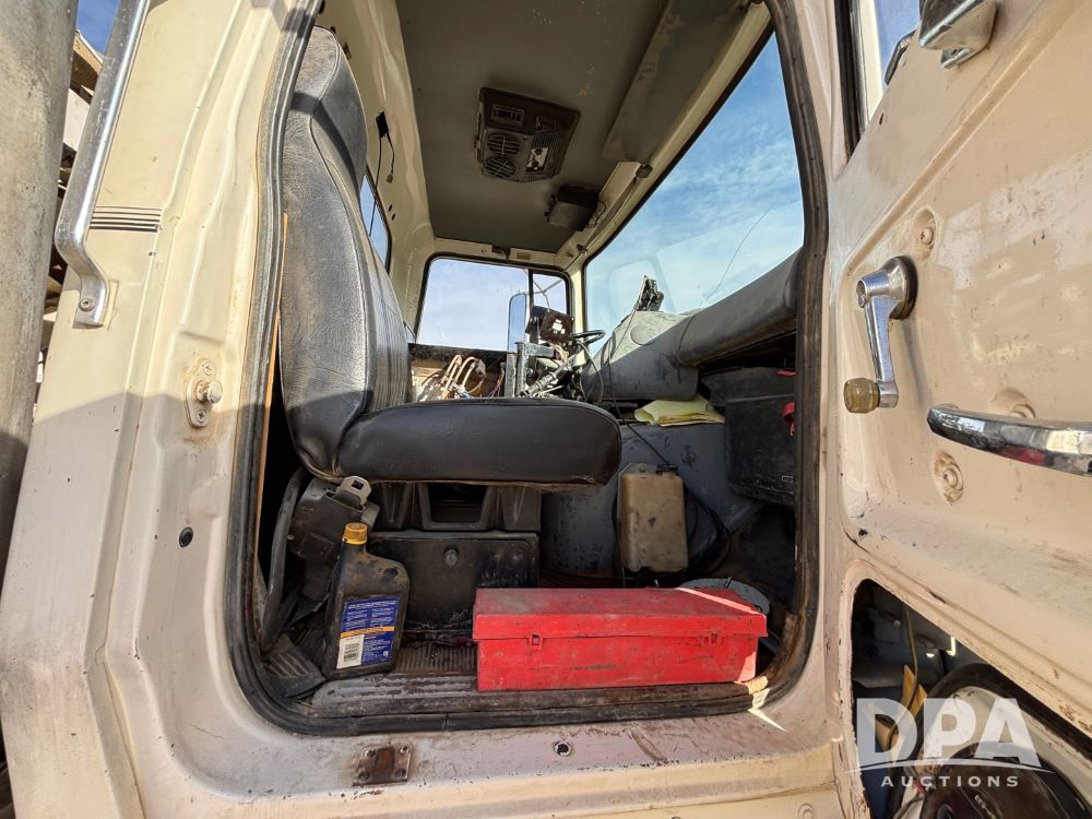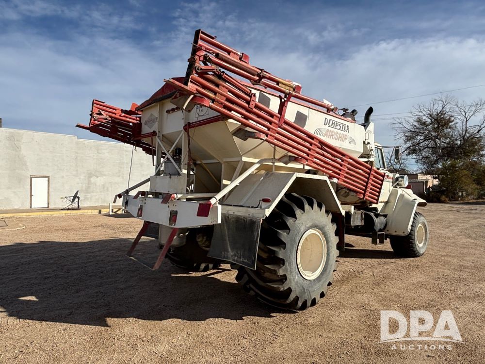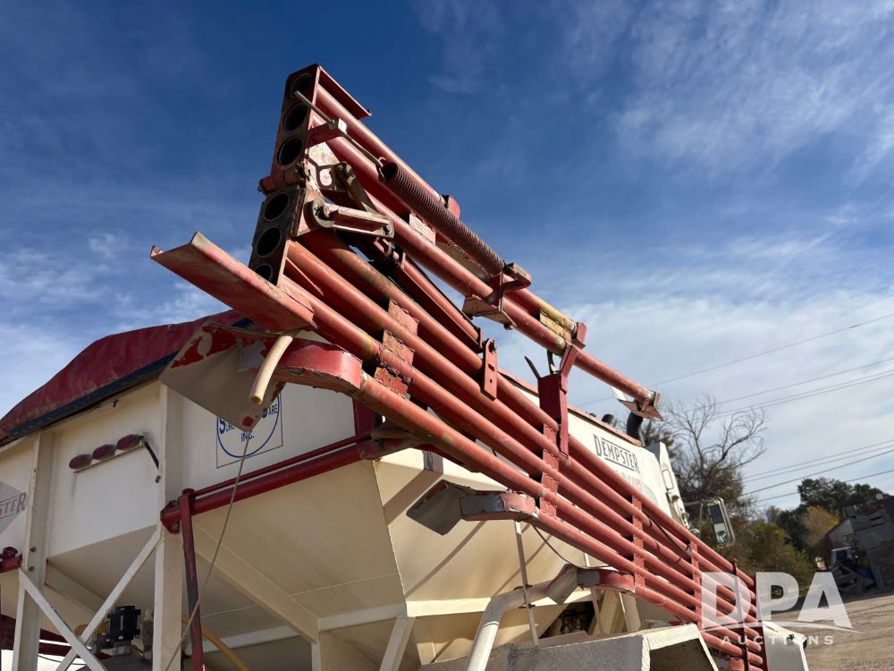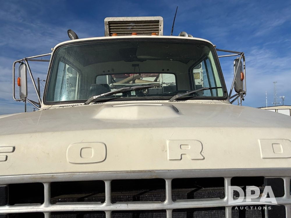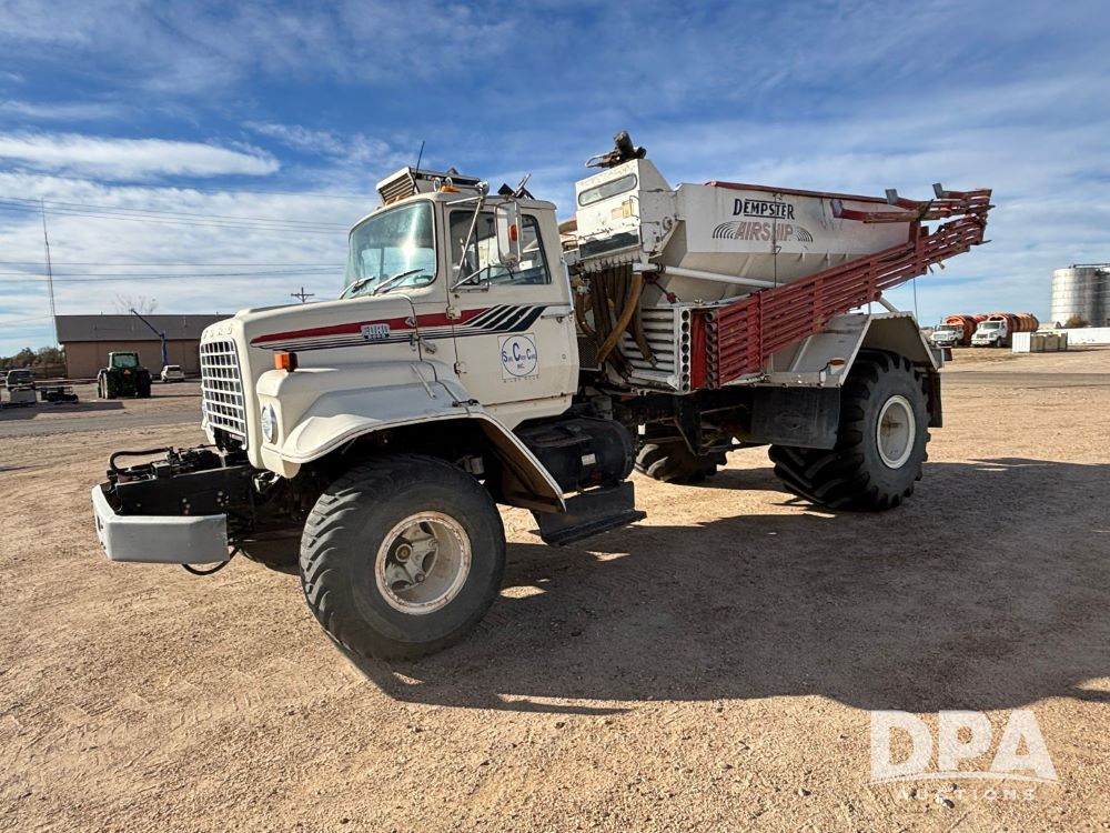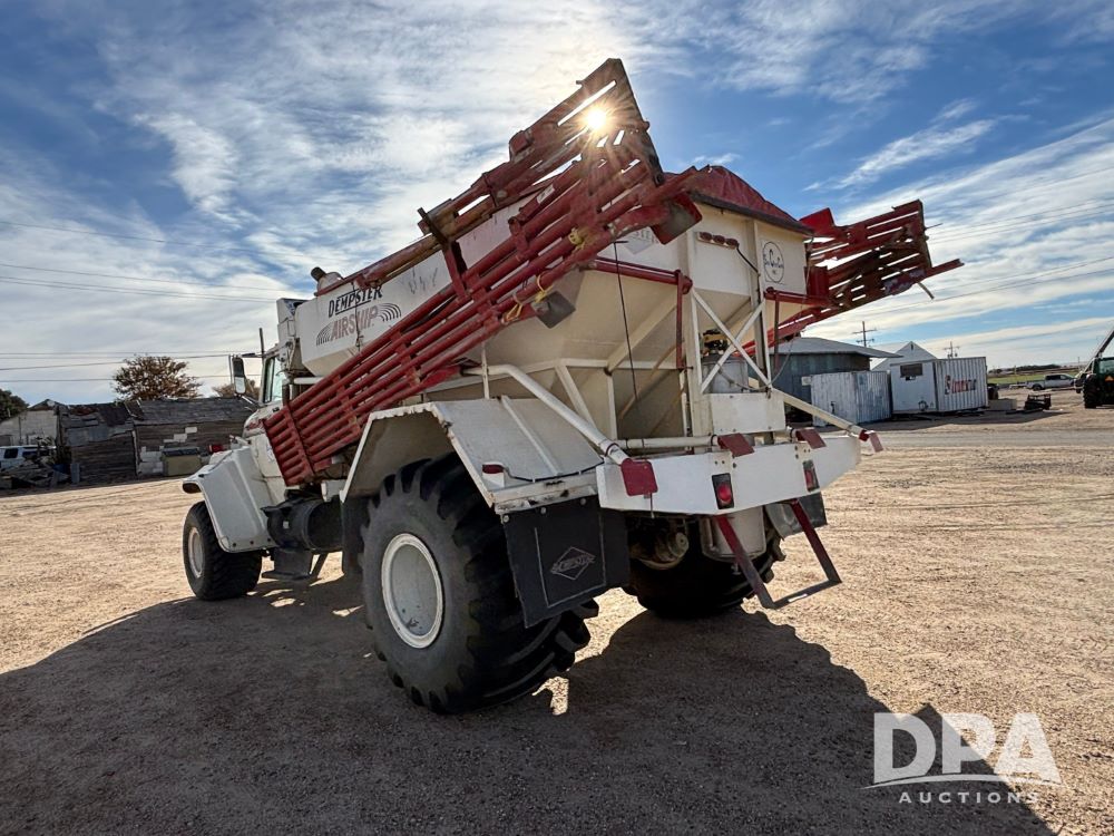 Ford Dempster Airship (GP11959), Cummins engine, automatic transmission, 60 foot boom, 75 gallon tank, single hopper box, approx. 7 ton, shows 10,682 miles.