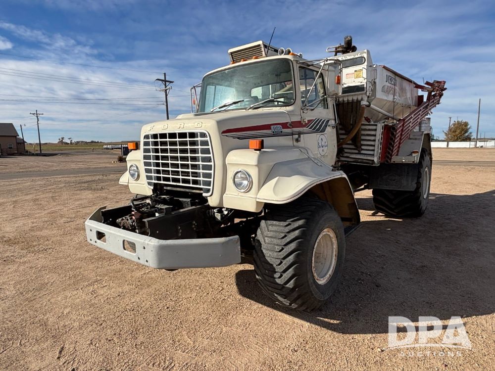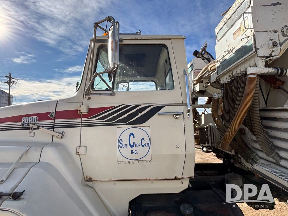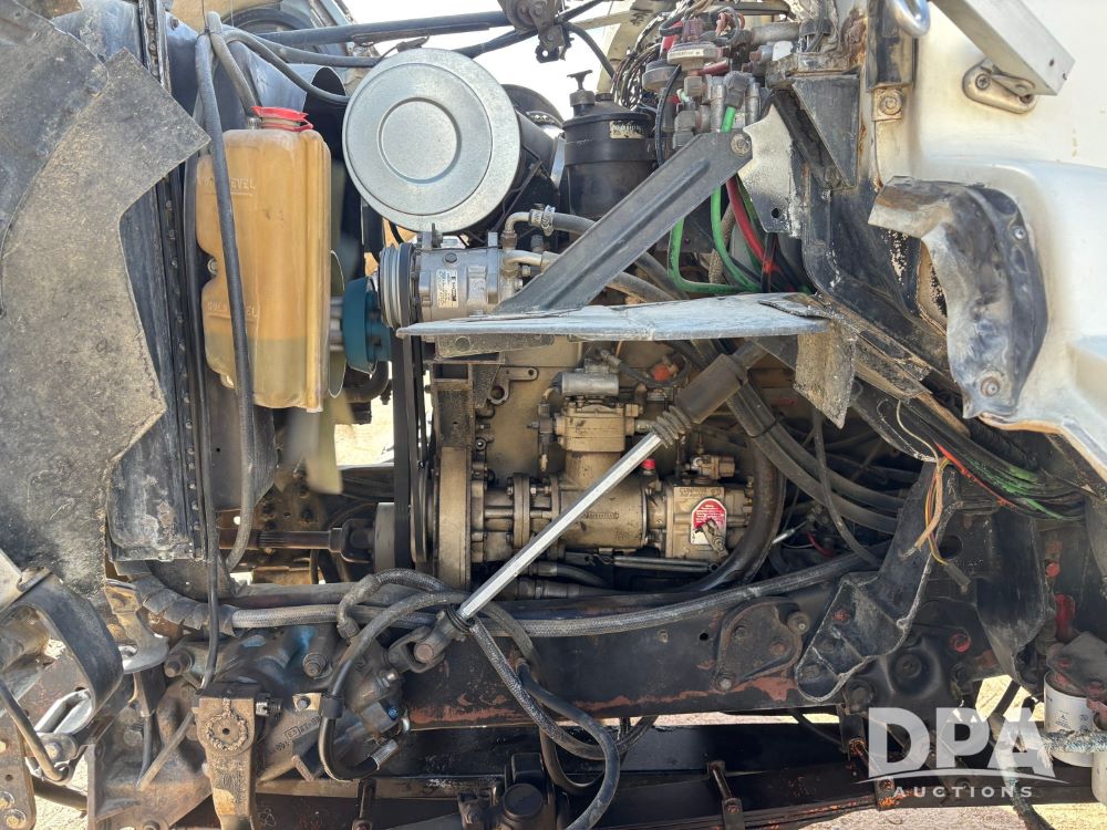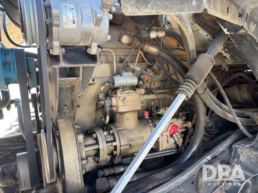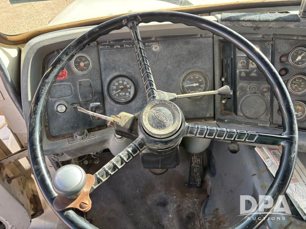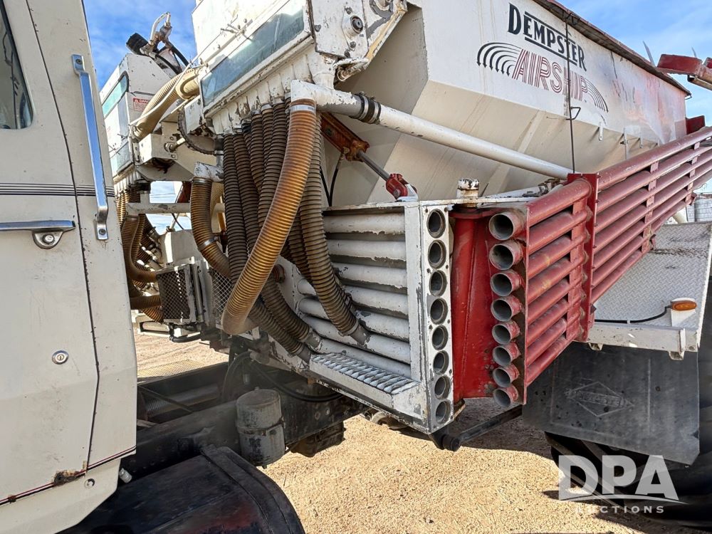 Ford Dempster Airship (GP11959), Cummins engine, automatic transmission, 60 foot boom, 75 gallon tank, single hopper box, approx. 7 ton, shows 10,682 miles.