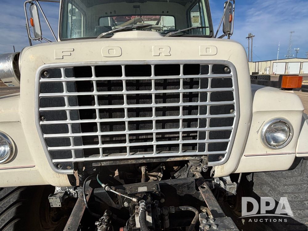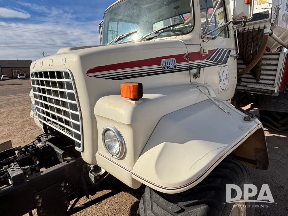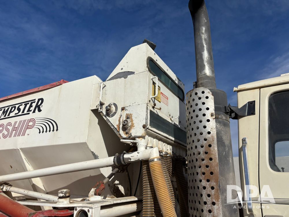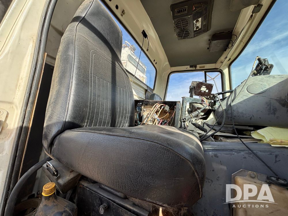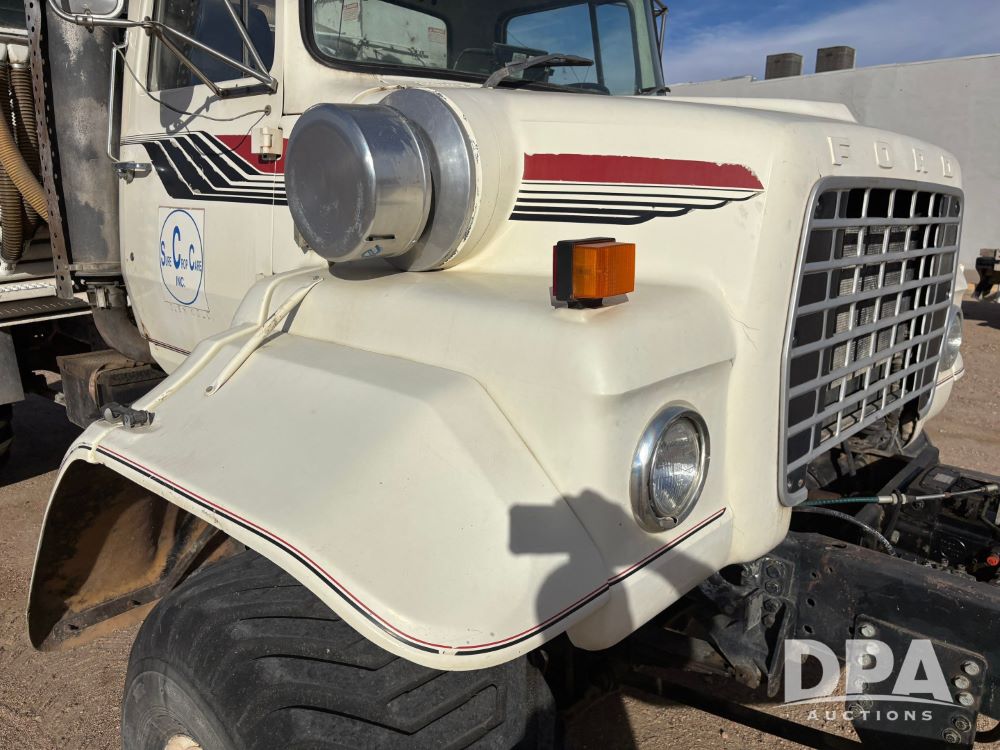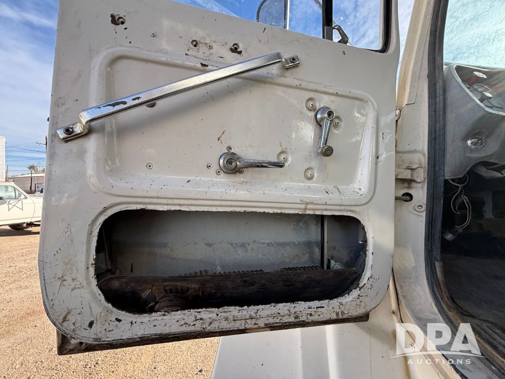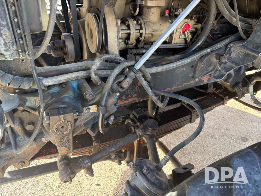 Ford Dempster Airship (GP11959), Cummins engine, automatic transmission, 60 foot boom, 75 gallon tank, single hopper box, approx. 7 ton, shows 10,682 miles.