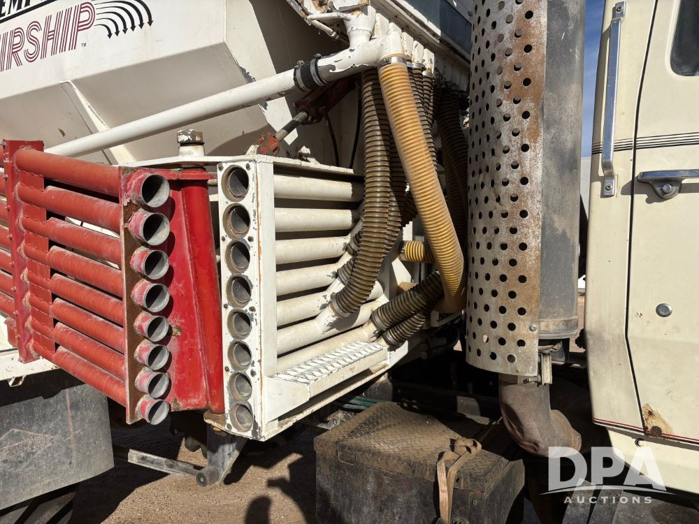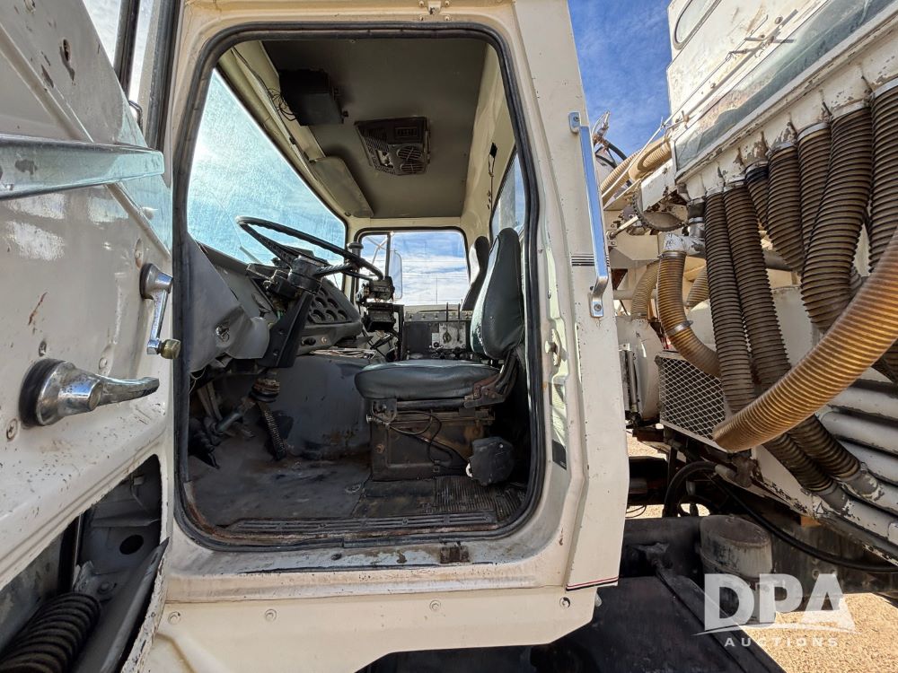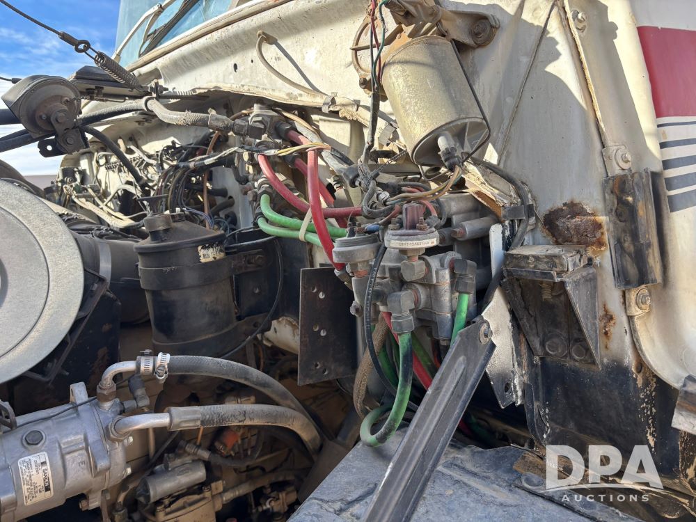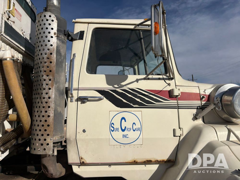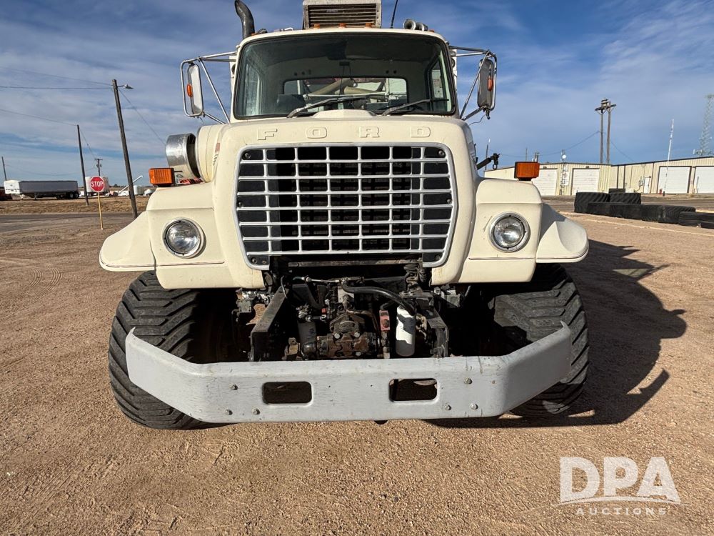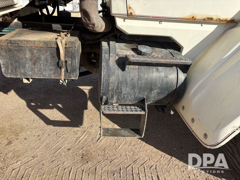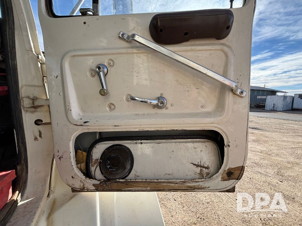 Ford Dempster Airship (GP11959), Cummins engine, automatic transmission, 60 foot boom, 75 gallon tank, single hopper box, approx. 7 ton, shows 10,682 miles.