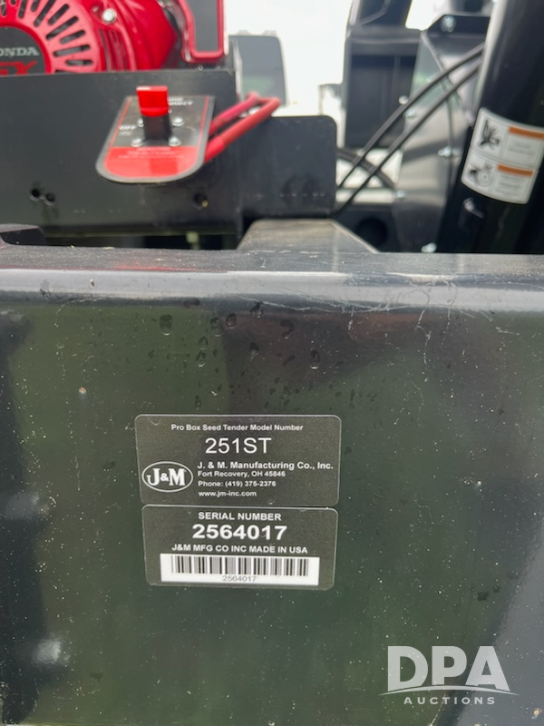 NEW J&M 251 Speed Tender Pro (MN1146), NEVER USED J&M 251 Pro box speed seed tender, 6in auger, Honda gas motor, electric key start, tandem axle, 225/75R15 tires, pull type, ball hitch, remote control.