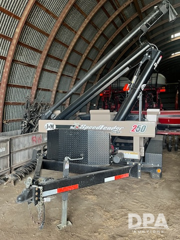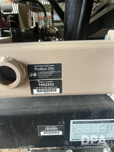 J&M 250 Speed Tender Pro (MN1147), J&M 250 Pro box speed seed tender, 6in auger, Honda gas motor, electric key start, tandem axle, 225/75R15 tires, spare tire included, pull type, ball hitch, remote control.