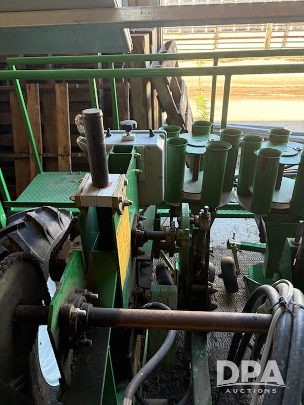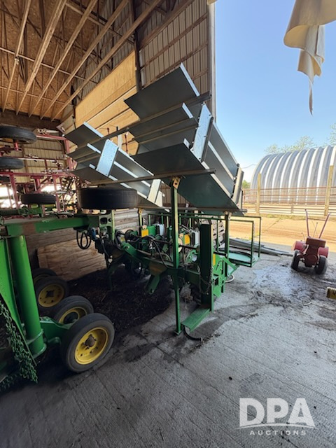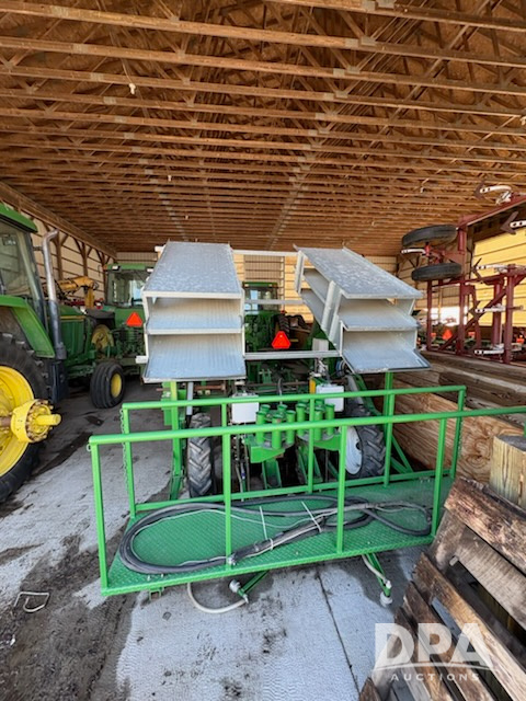 Renaldo Transplanter (PD5402), 2 row, can plant on plastic, open ground, or raised beds, row spacing is adjustable, various transplant cube sizes, like brand new, stored inside, owner retired, less than 25 acres of use.