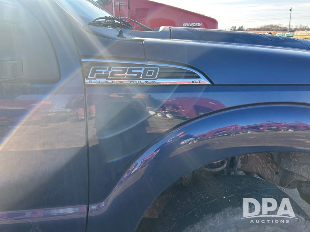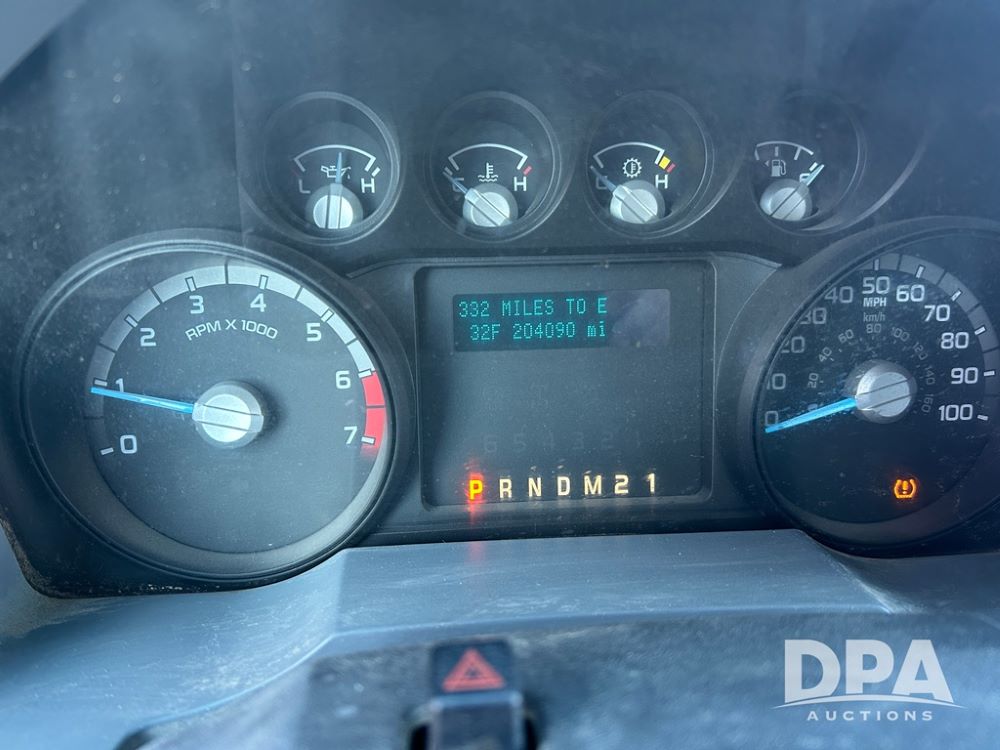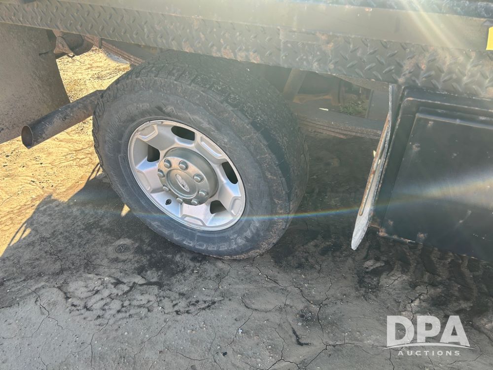 2011 Ford F-250 Super Duty XLT 4x4 Flatbed Pickup (CP1341, Unit 22126), regular cab, gas engine, automatic transmission, heat, air conditioning, Am/Fm radio, power windows and locks, cruise control, Winkel approx. 8' steel flatbed, running boards, LT265/70R17 tires, shows 204,090 miles.