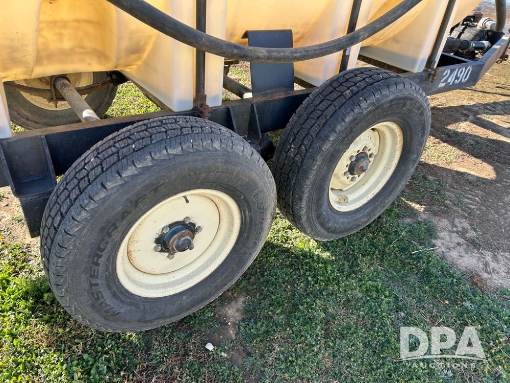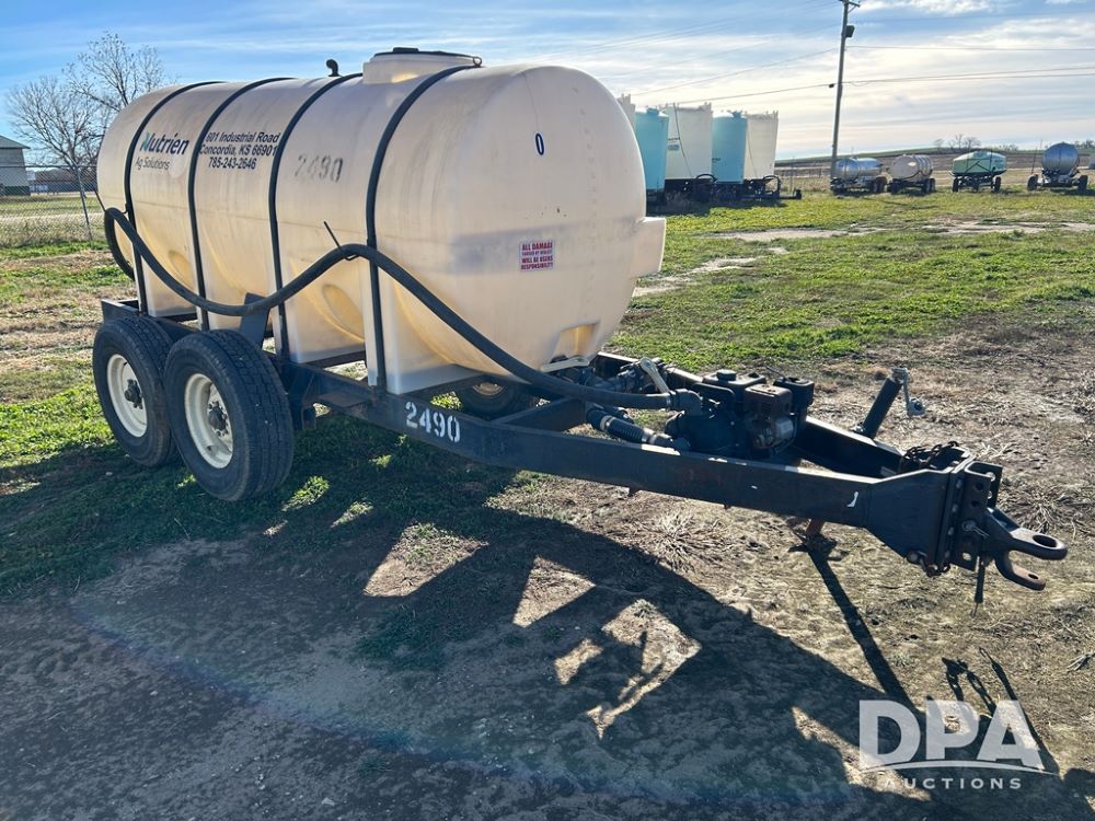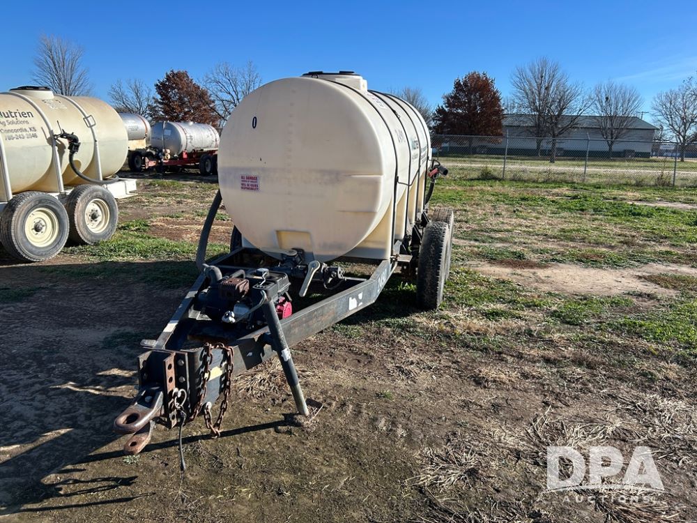 Liquid Nurse Trailer (CP1349, Tank 2490, Unit 92689), 1,000 gallon poly flat bottom liquid nurse tank, gas motor, pump, tandem axle gear.