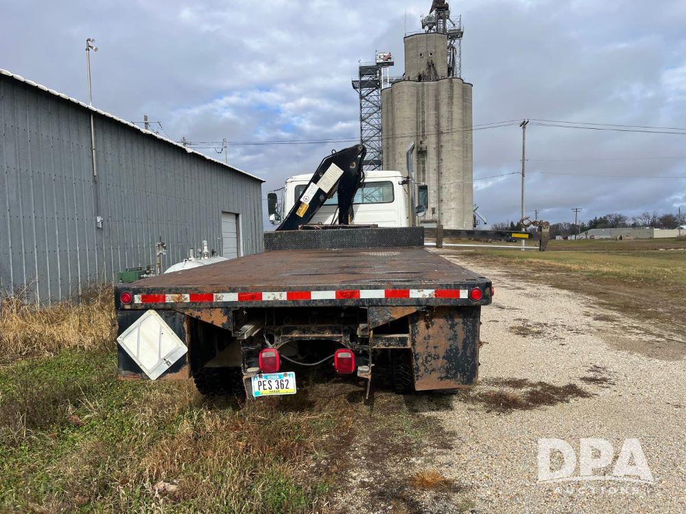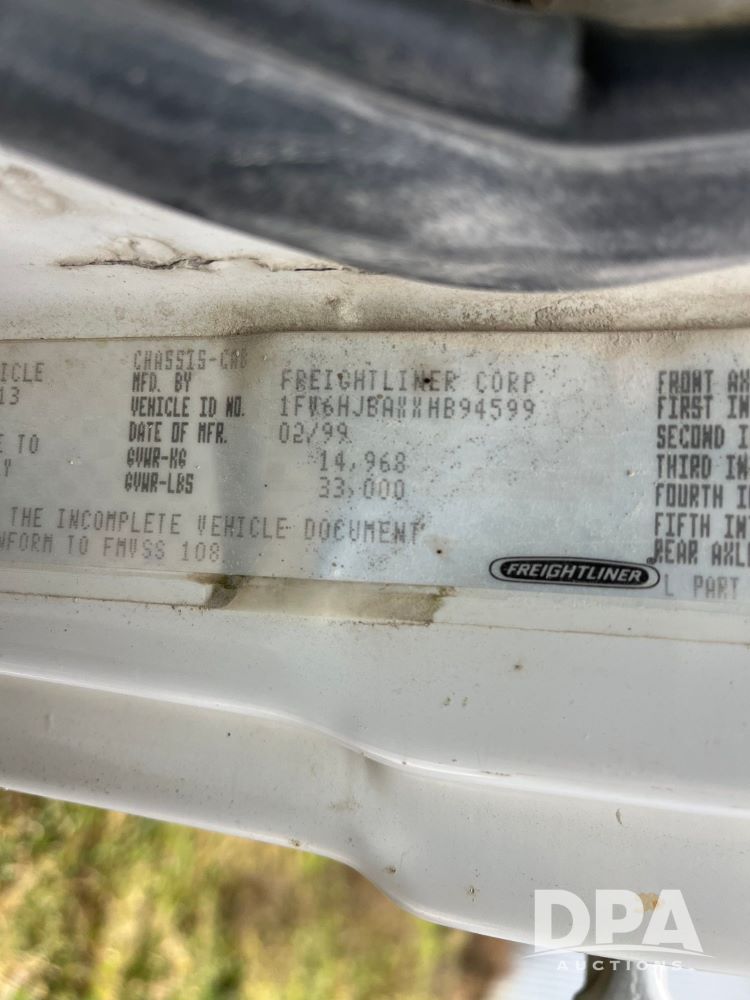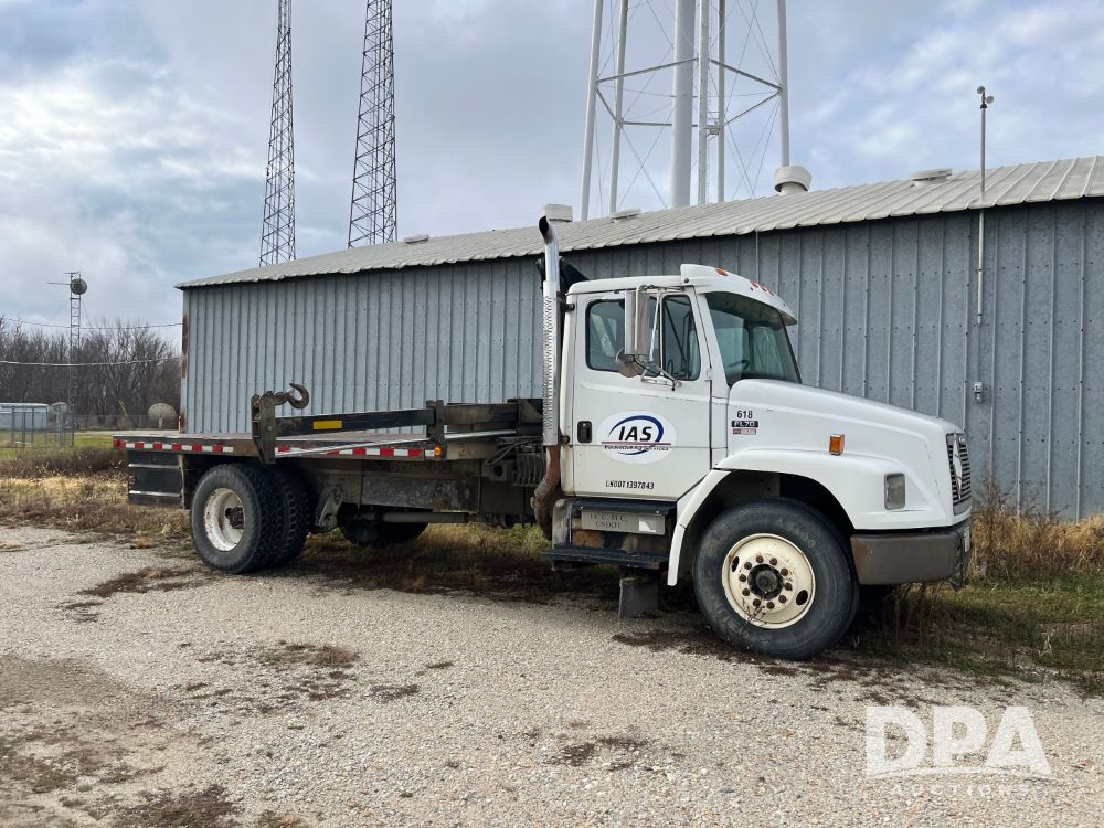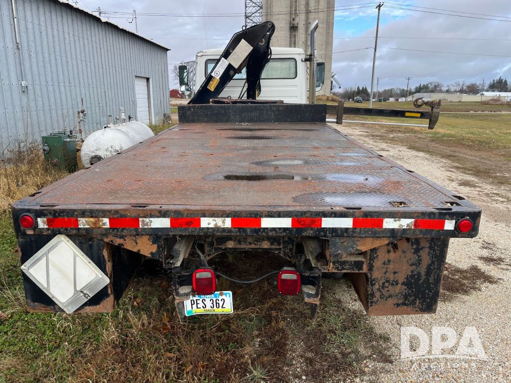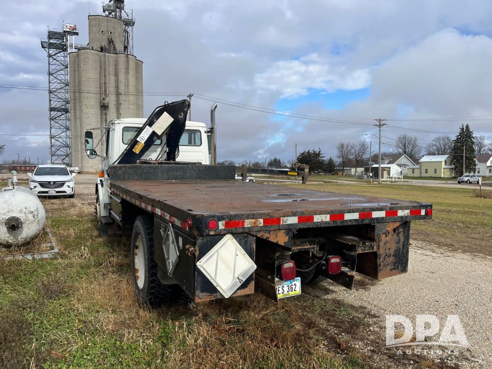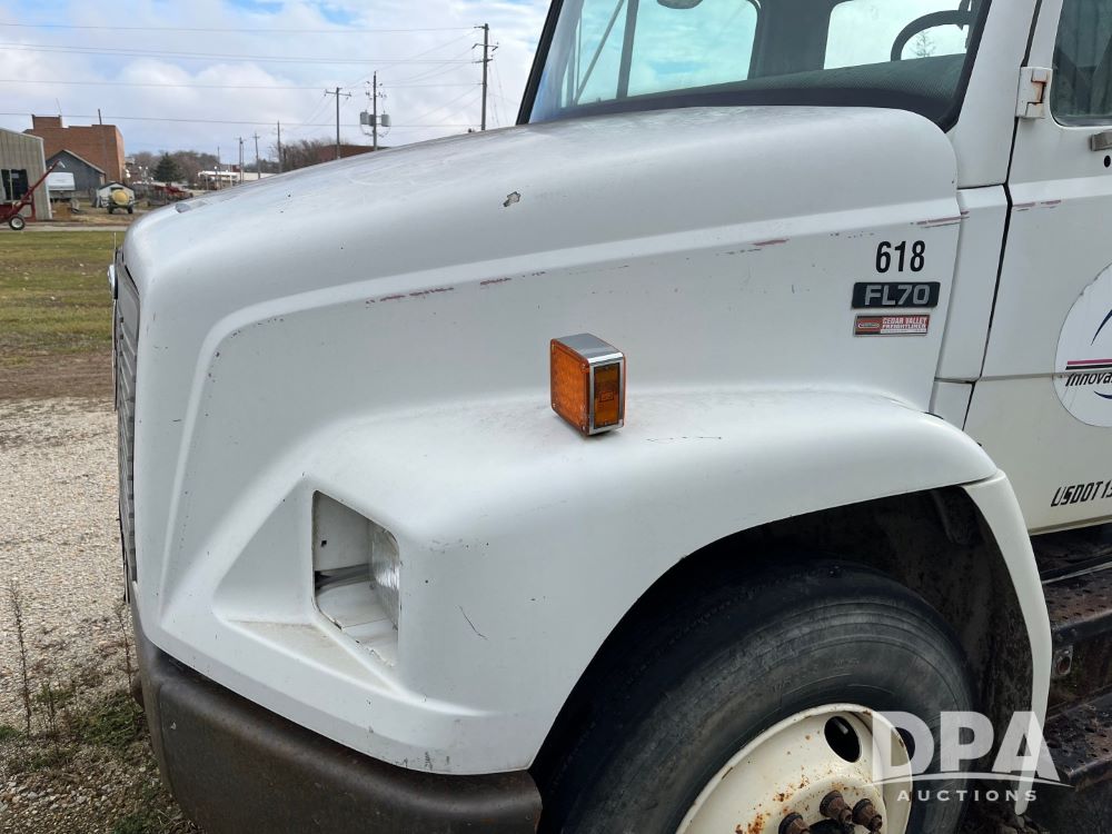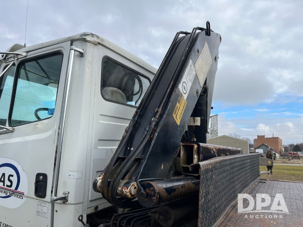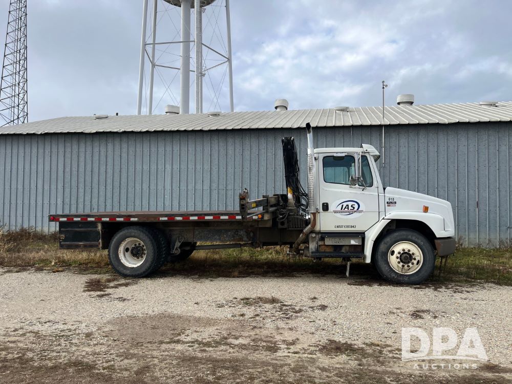 1999 Freightliner FL70 Boom Truck (JN3515, Unit 618), Cat diesel engine, 6 speed transmission, air conditioning, heat, Am/Fm radio, cruise control, single axle, air ride suspension, steel flatbed, HIAB knuckle boom crane, missing 1 down rigger, 11R22.5 tires, shows 204,056 miles.