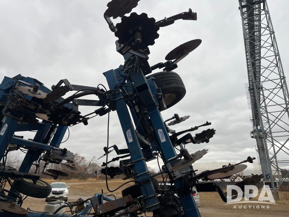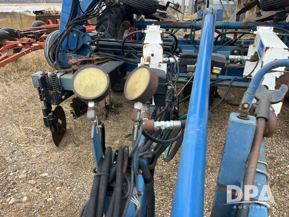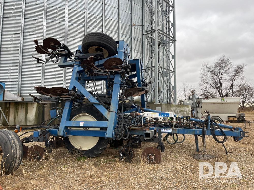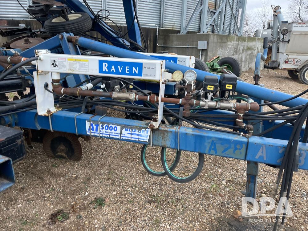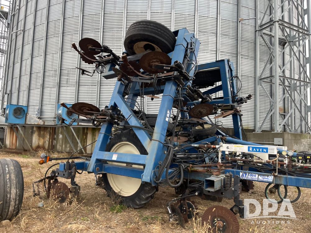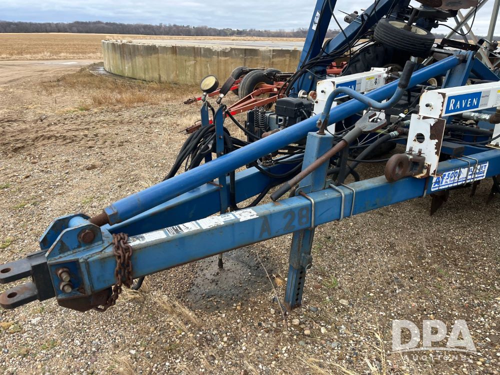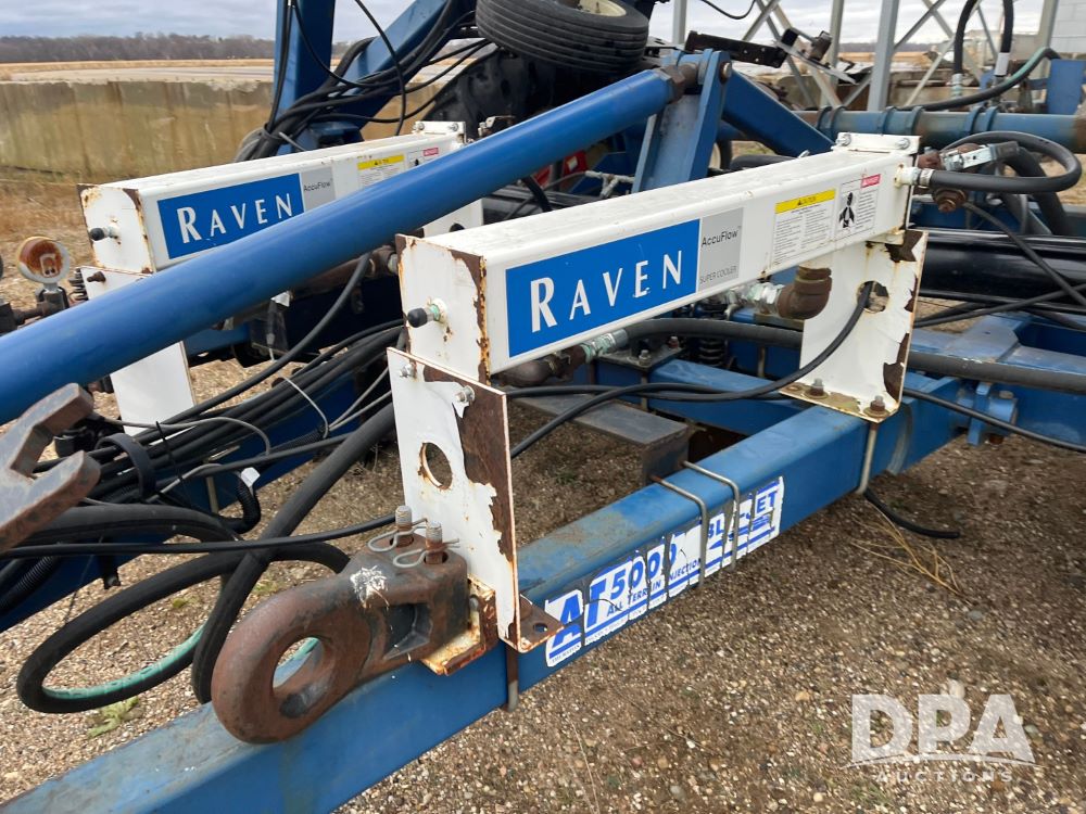 Blu Jet AT 5000 NH3 Tool Bar (JN3534, Unit A28), Blu Jet AT5000 19 knife pull type tool bar, coulters, notched double disc sealers, Double Raven Super coolers, hydraulic wing, rear hitch, 12.4-38 tires.