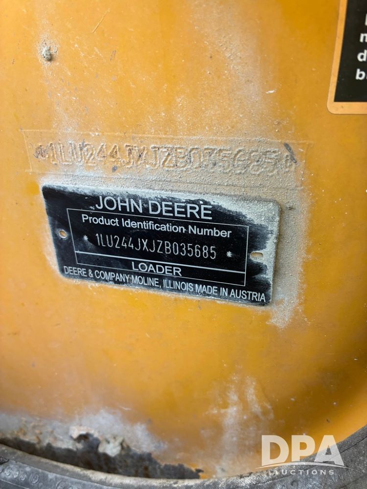 2014 John Deere 244J Loader (PZ14222, Unit 38281), John Deere diesel engine, shuttle shift transmission, cab, lights, bucket, Firestone 405/70R18 tires, fenders.