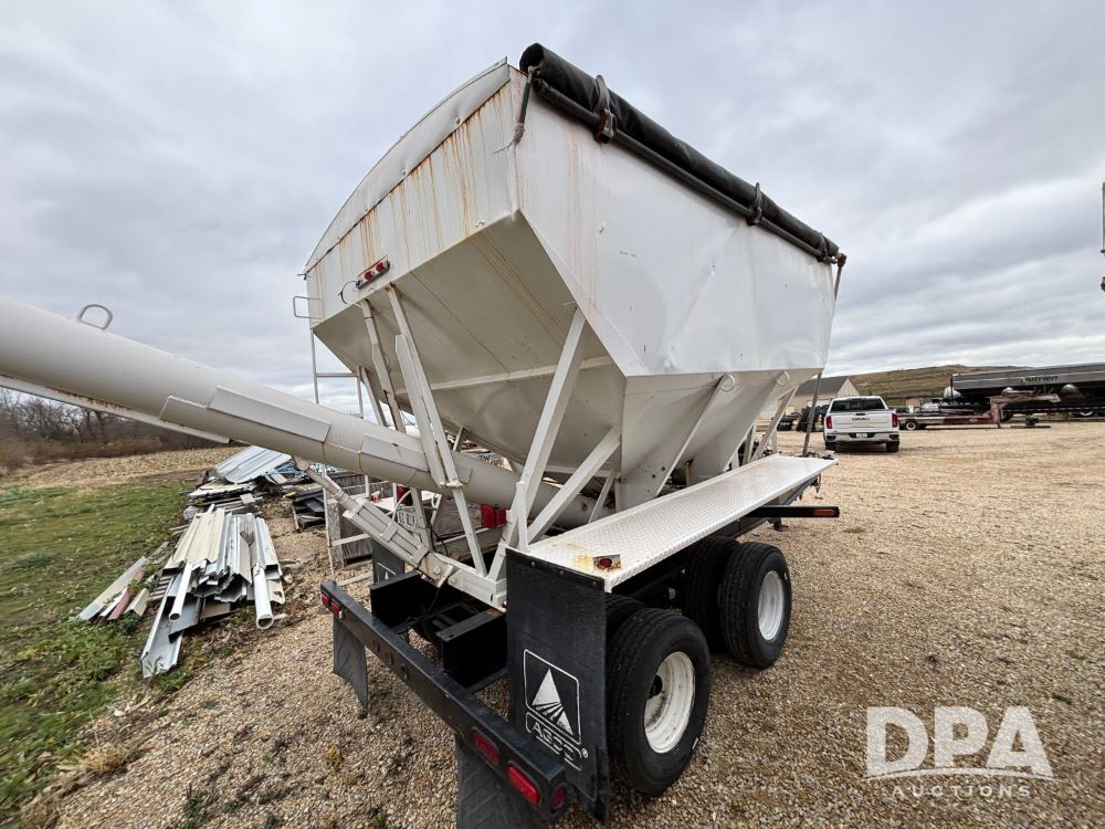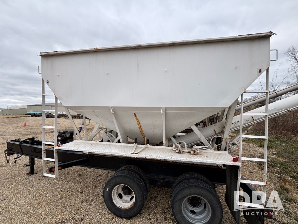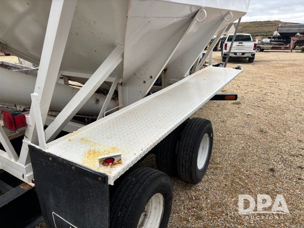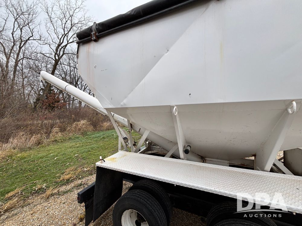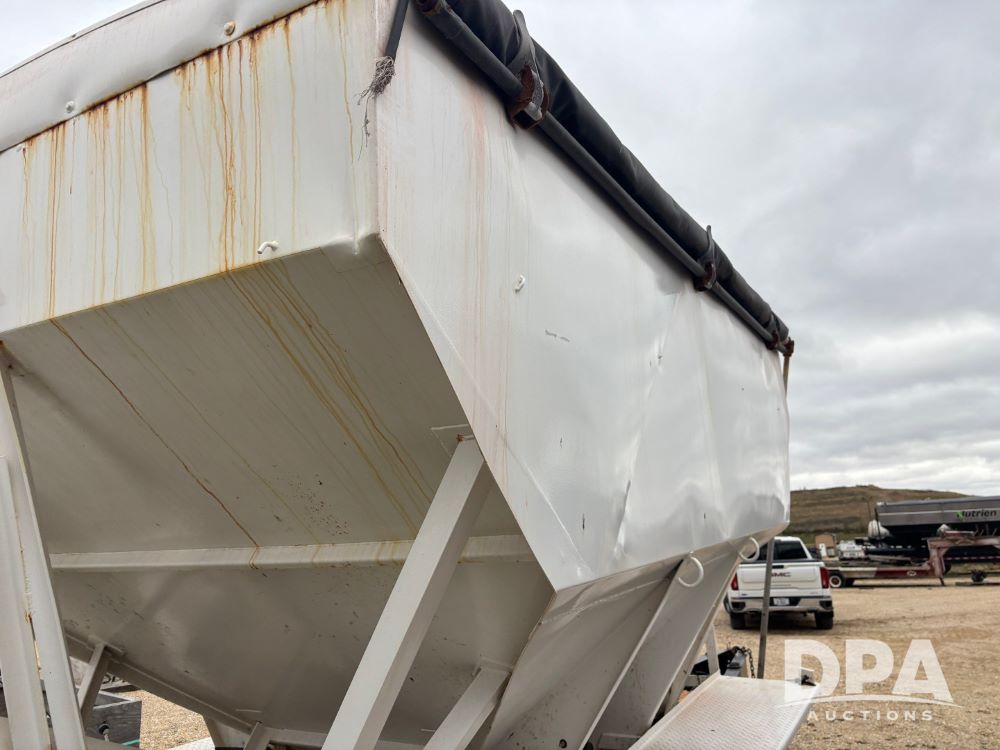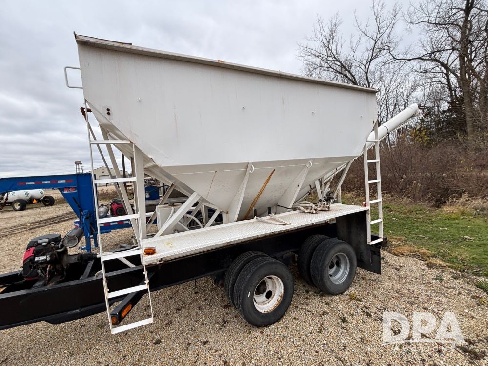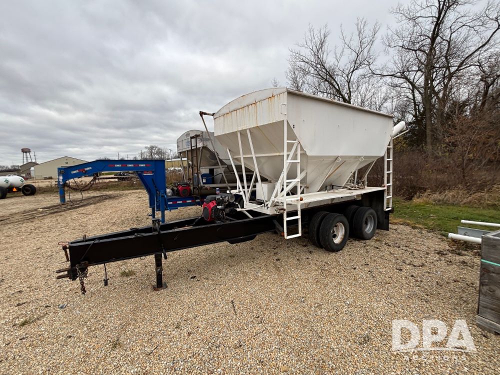 2009 B-B Dry Tender Trailer (GP12136), 10 ton 2 compartment dry tender box, rear discharge auger, roll over tarp, Honda electric start gas engine, 2009 B-B trailer, tandem axle, ST235/85R16 tires.
