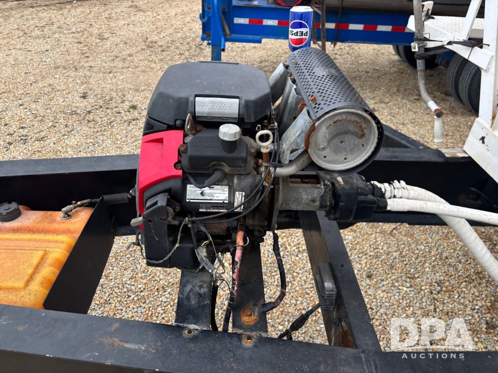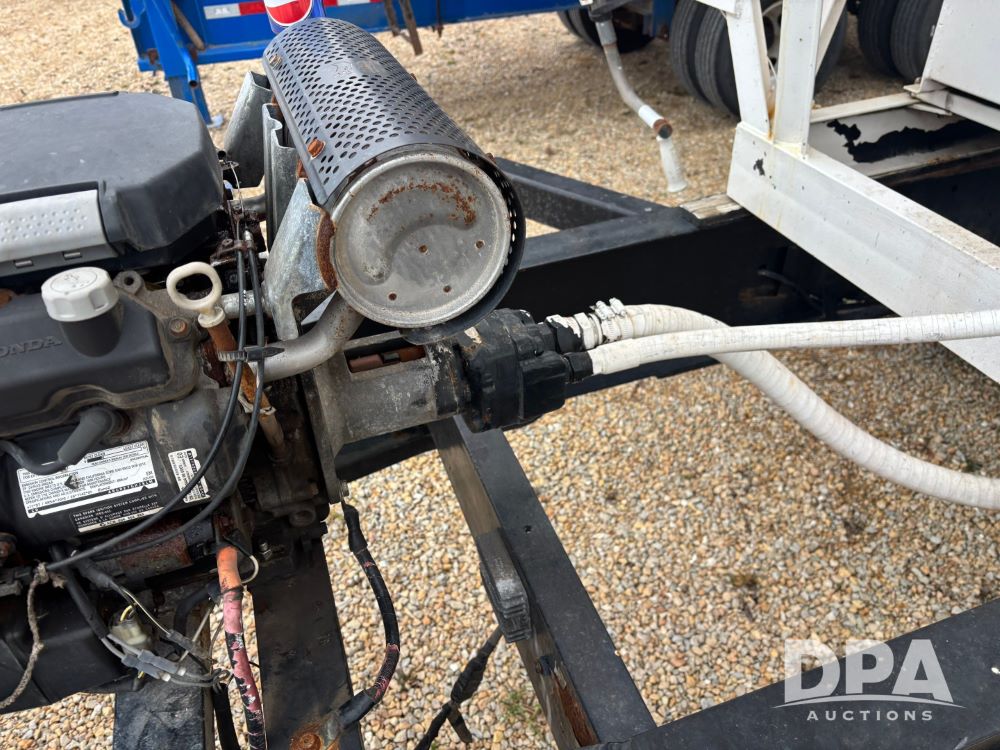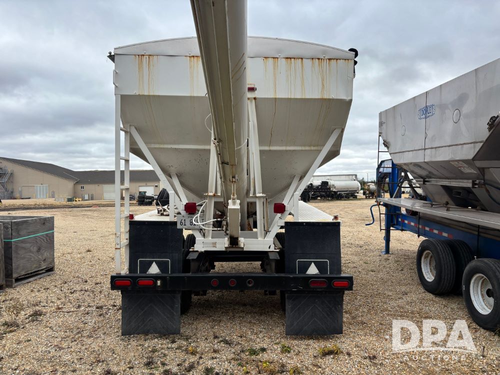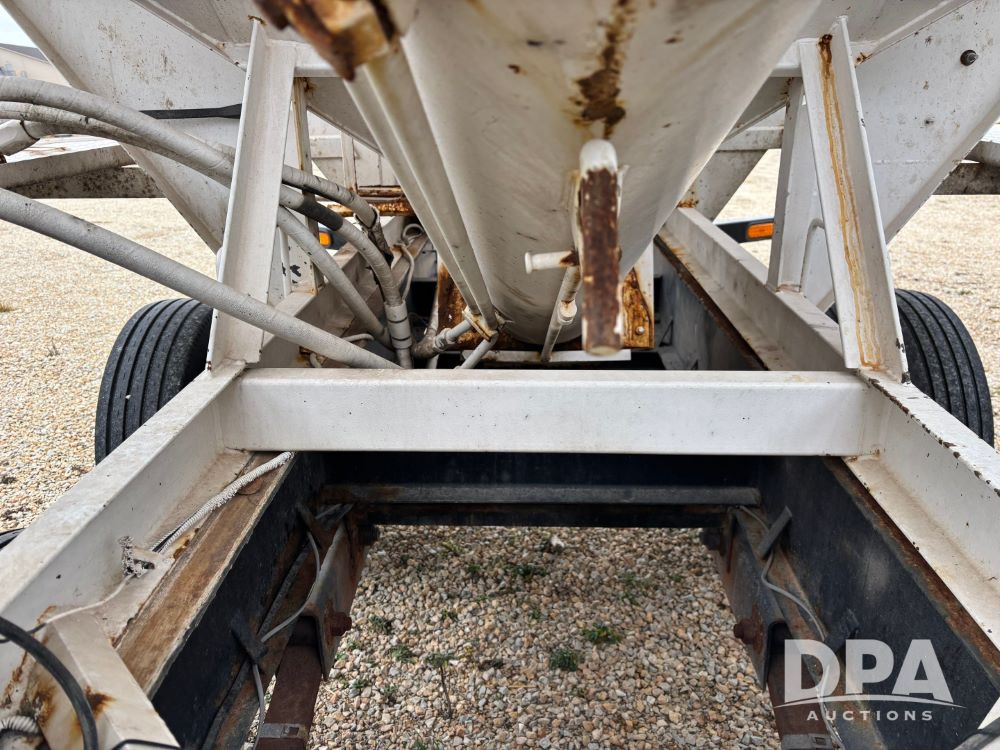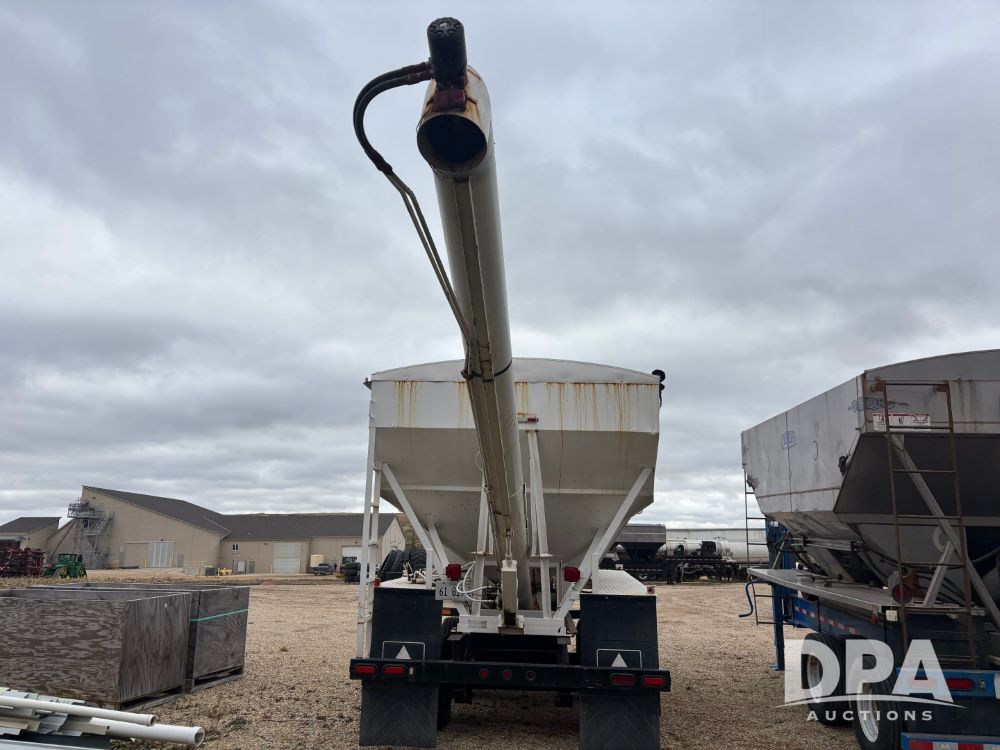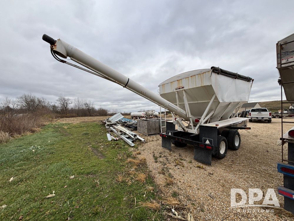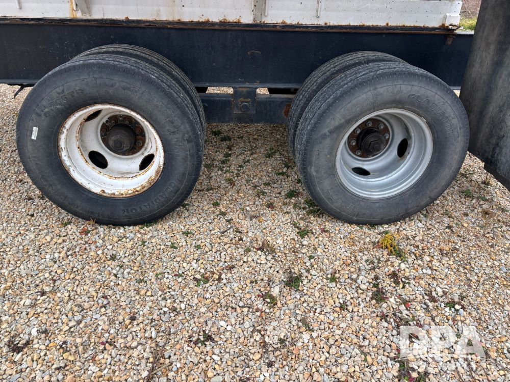 2009 B-B Dry Tender Trailer (GP12136), 10 ton 2 compartment dry tender box, rear discharge auger, roll over tarp, Honda electric start gas engine, 2009 B-B trailer, tandem axle, ST235/85R16 tires.