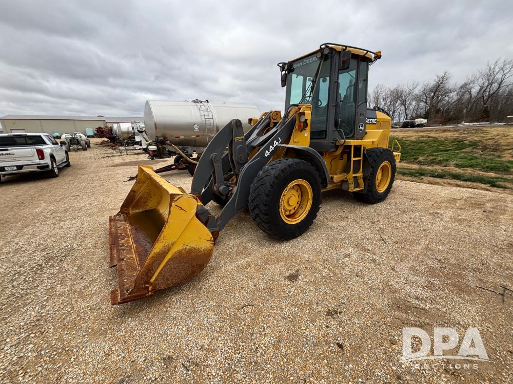 2007 John Deere 444J Loader (GP12138), John Deere diesel engine, shuttle shift transmission, cab, lights, Am/Fm radio, beacon light, 8' bucket, Michelin 17.5R25 tires, fenders.