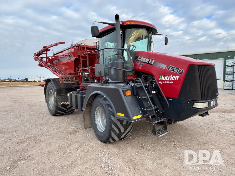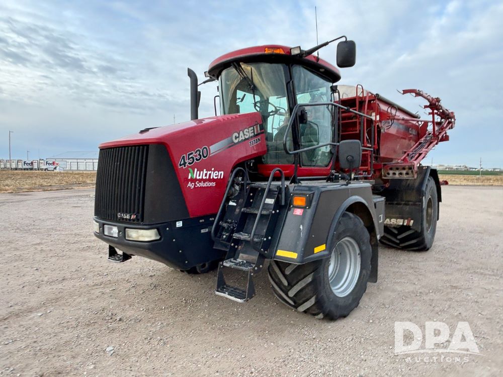 2014 CaseIH Titan 4530 Dry Floater (GP12143, Unit 02294), FPT 8.7L diesel engine, Allison automatic transmission, heat, air conditioning, Am/Fm radio, buddy seat, CaseIH Flex-Air 810 dry air flow system, 70' boom, electric roll tarp, Michelin 750/50R26 front tires, Michelin 1050/50R32 rear tires, Voyager backup camera, Raven GPS, Raven Viper Pro monitor, shows 7,059 hours.