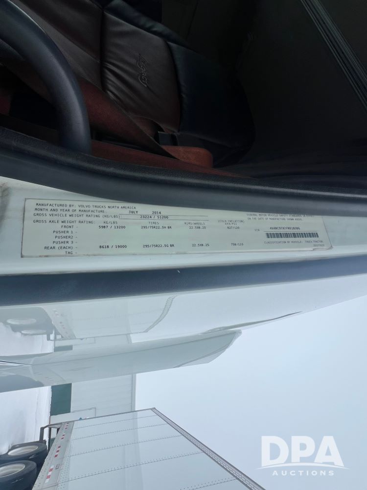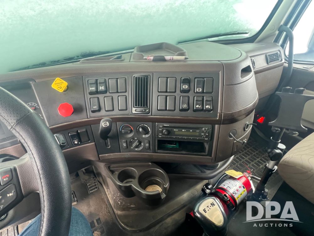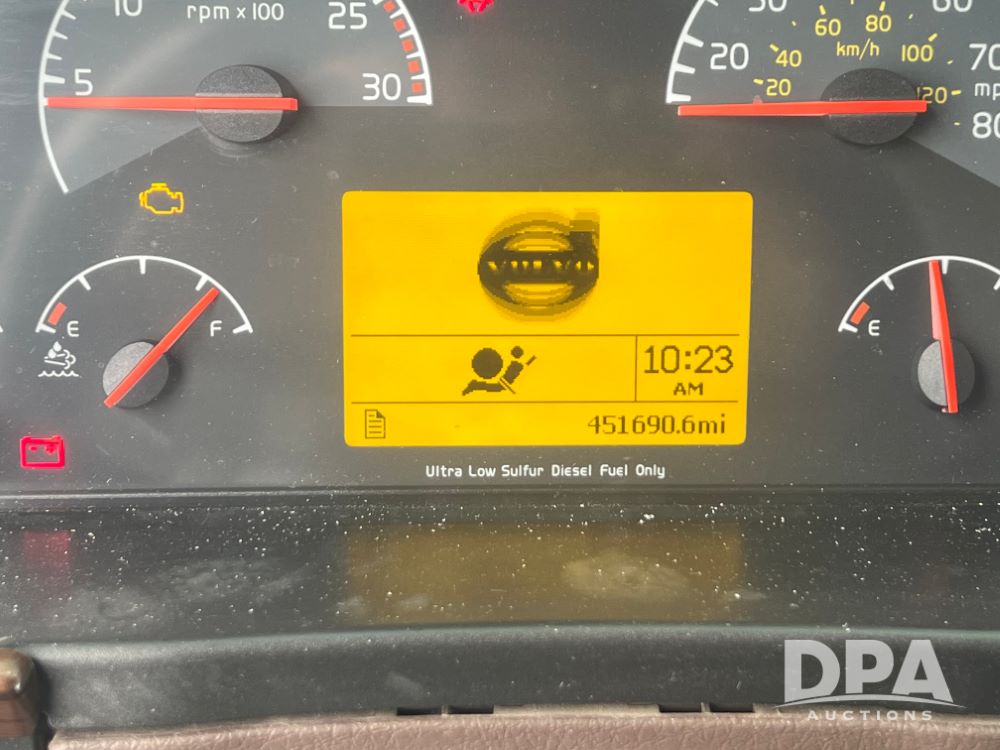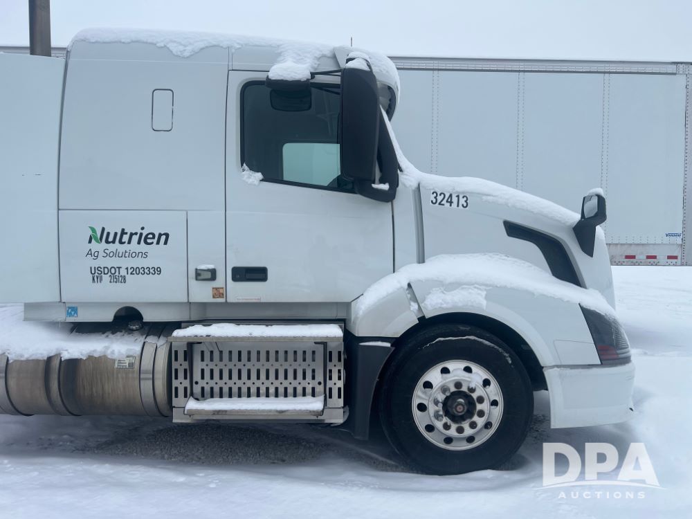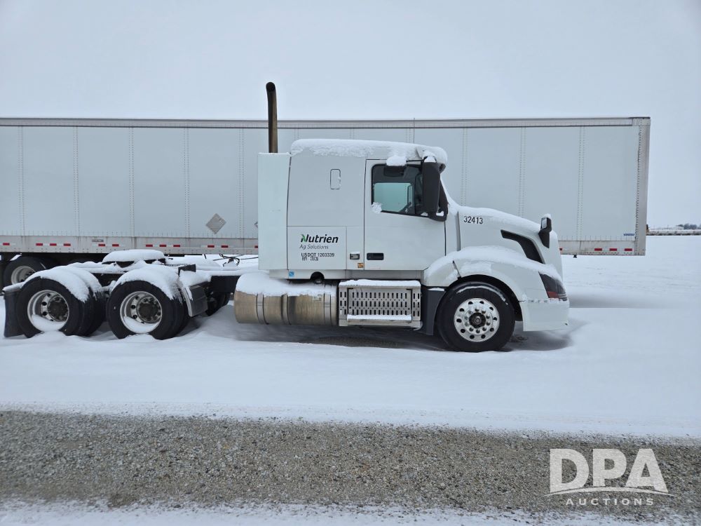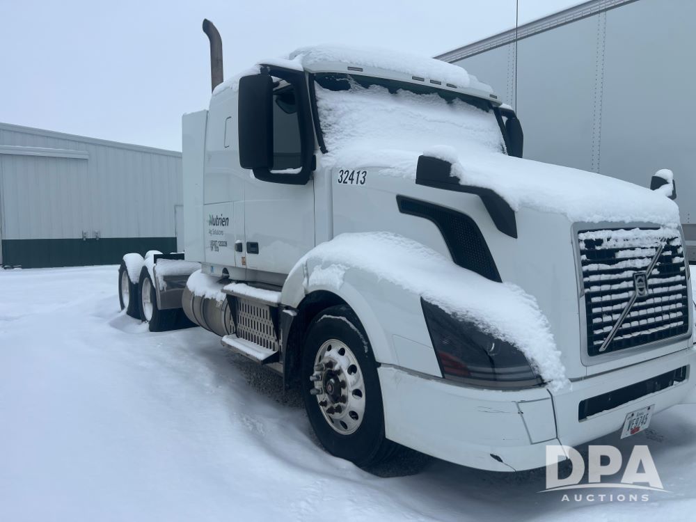 2015 Volvo VNL64T Truck (PZ14224, Unit 32413), diesel engine, Eaton Fuller transmission, air conditioning, heat, Am/Fm CD radio, cruise control, engine brake, sleeper, tandem axle, full screw, air ride suspension, 5th wheel, 295/75R22.5 tires, aluminum rims, shows 451,690 miles.