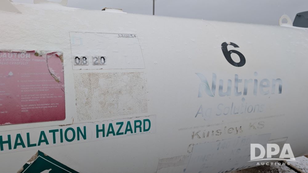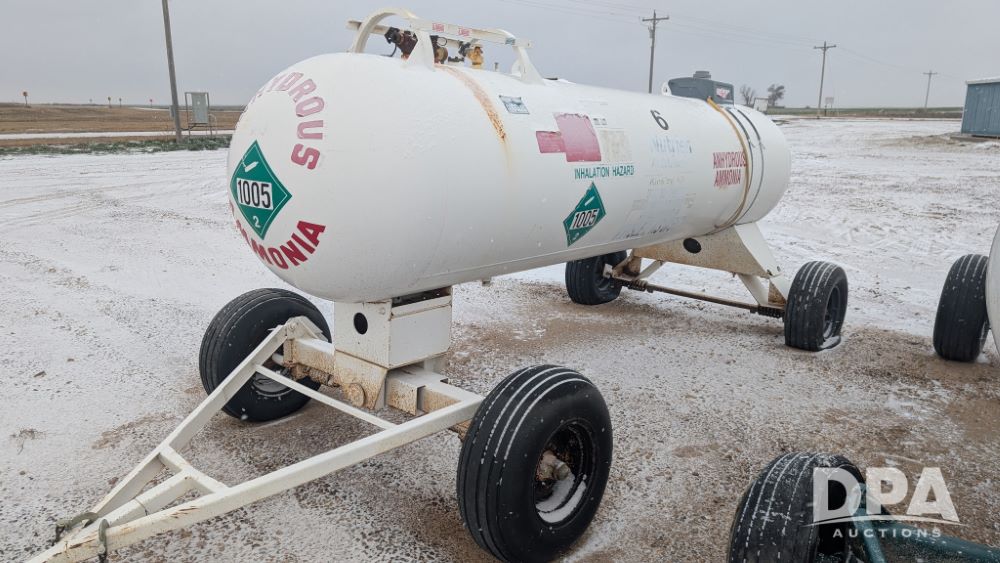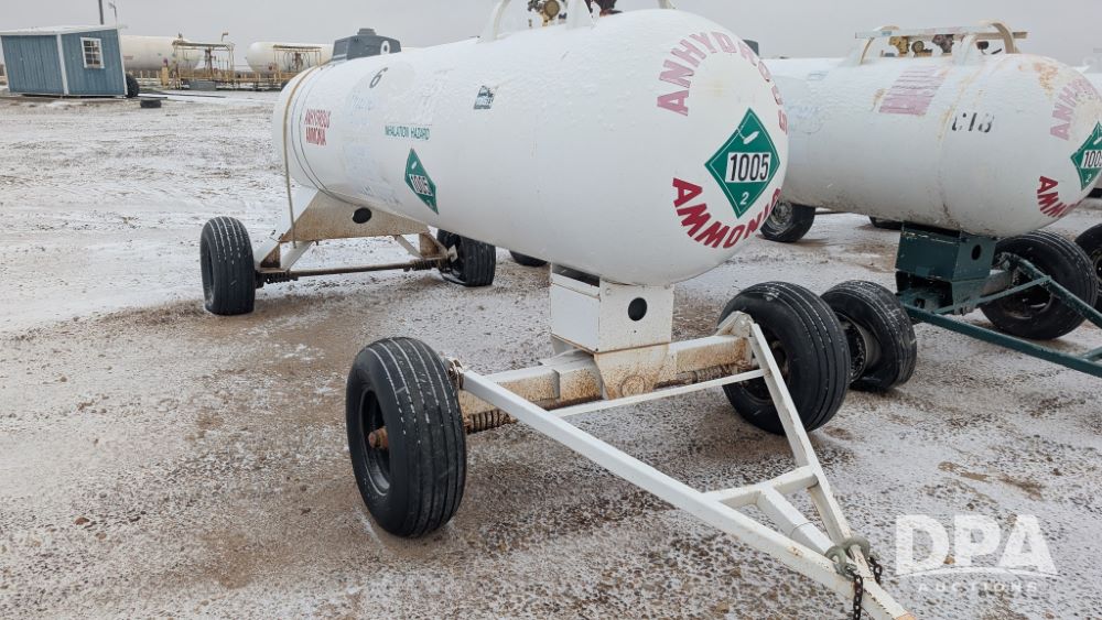 NH3 Nurse Tank (NP6294, Tank 6, Unit 75037), Trinity Industries 1,000 gallon NH3 nurse tank, top front fill, Pryor style gear, water tank, flotation tires, data plate.
