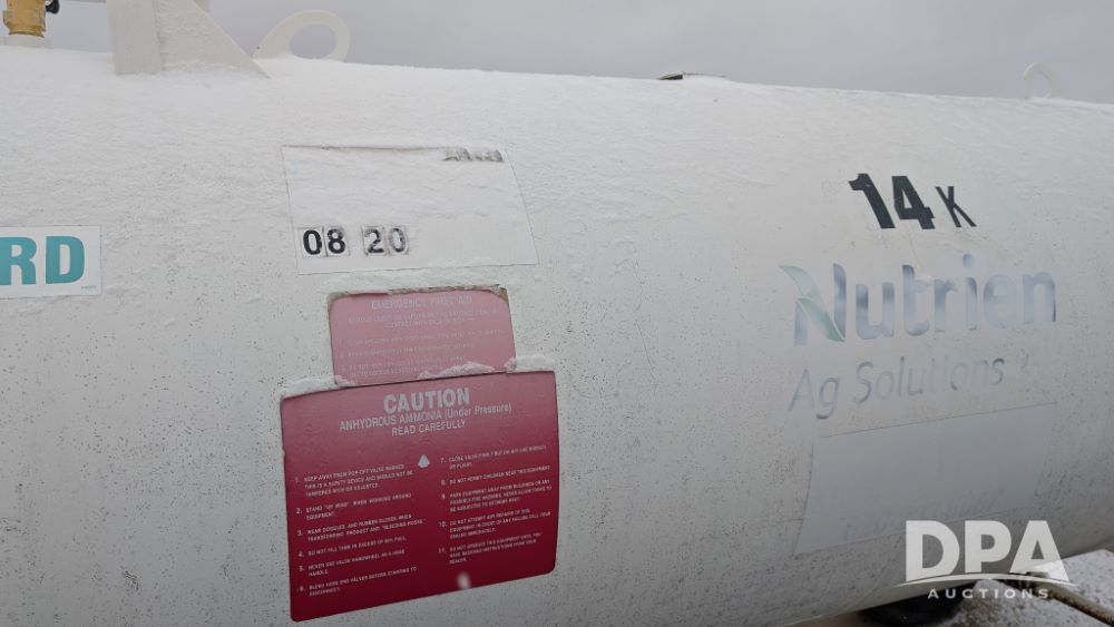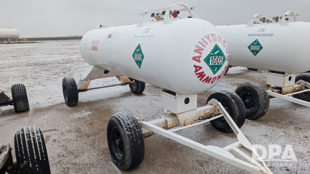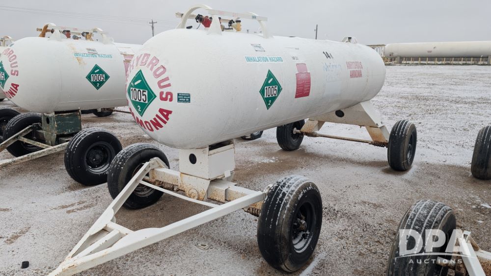 NH3 Nurse Tank (NP6298, Tank 14K, Unit 70411), 1,000 gallon NH3 nurse tank, top front fill, Pryor style gear, flotation tires, data plate.