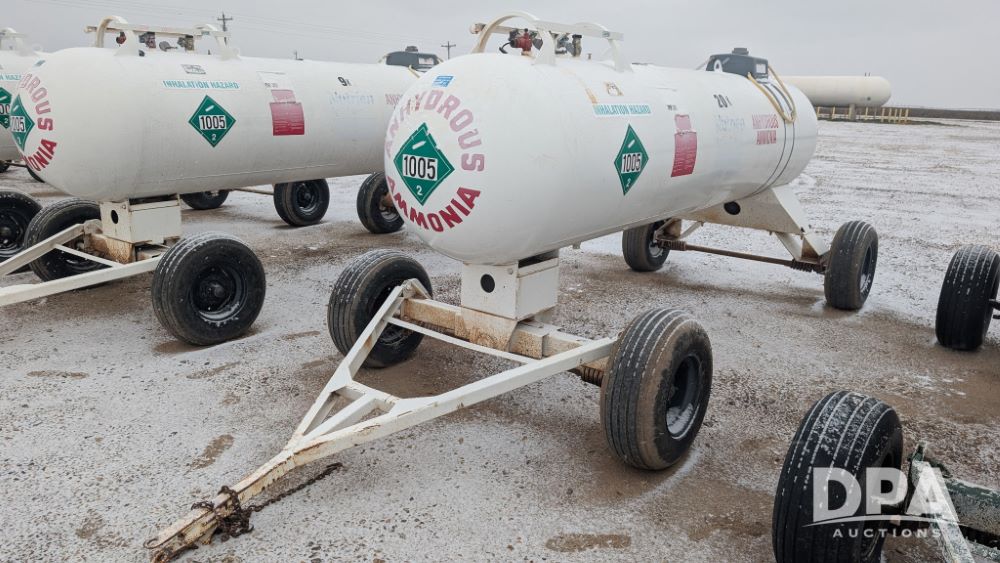 NH3 Nurse Tank (NP6300, Tank 20K, Unit 75023), 1,000 gallon NH3 nurse tank, top front fill, Pryor style gear, water tank, flotation tires, data plate.