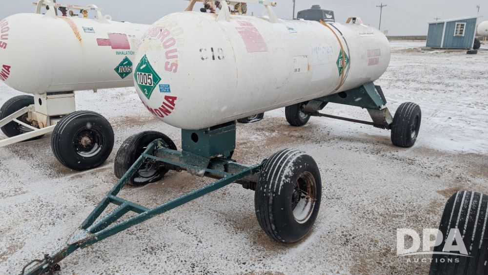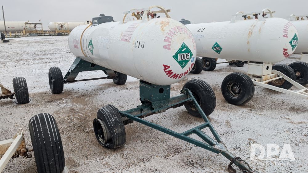 NH3 Nurse Tank (NP6306, Tank C18, Unit ), 1,000 gallon NH3 nurse tank, top front fill, Pryor style gear, water tank, flotation tires, data plate.