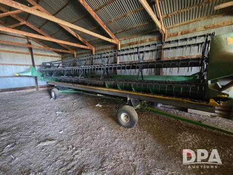 2001 John Deere 930F Platform Bean Head w/ Trailer (JM686), 30 foot, air real, sickles and fingers in good condition.