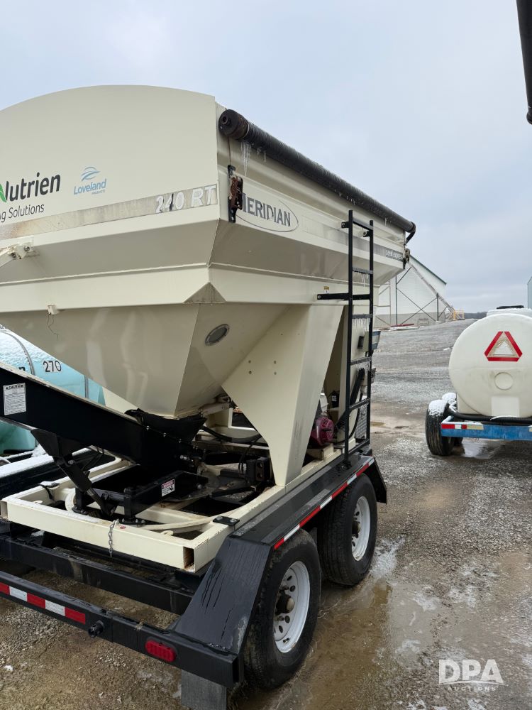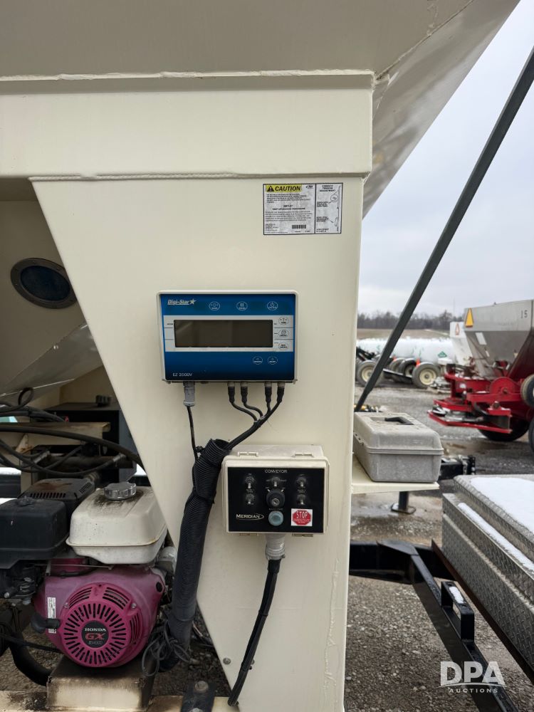 Meridian 240RT Weigh Wagon (PZ14240, Unit 100014128), Meridian 240RT weigh wagon, rear discharge conveyor, roll over tarp, Digi-Star EZ 2500V digital readout, Meridian conveyor control, Honda GX340 gas engine, tandem axle gear.