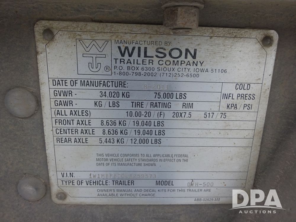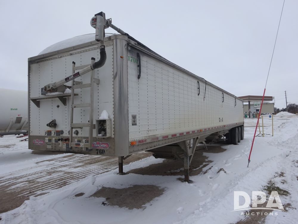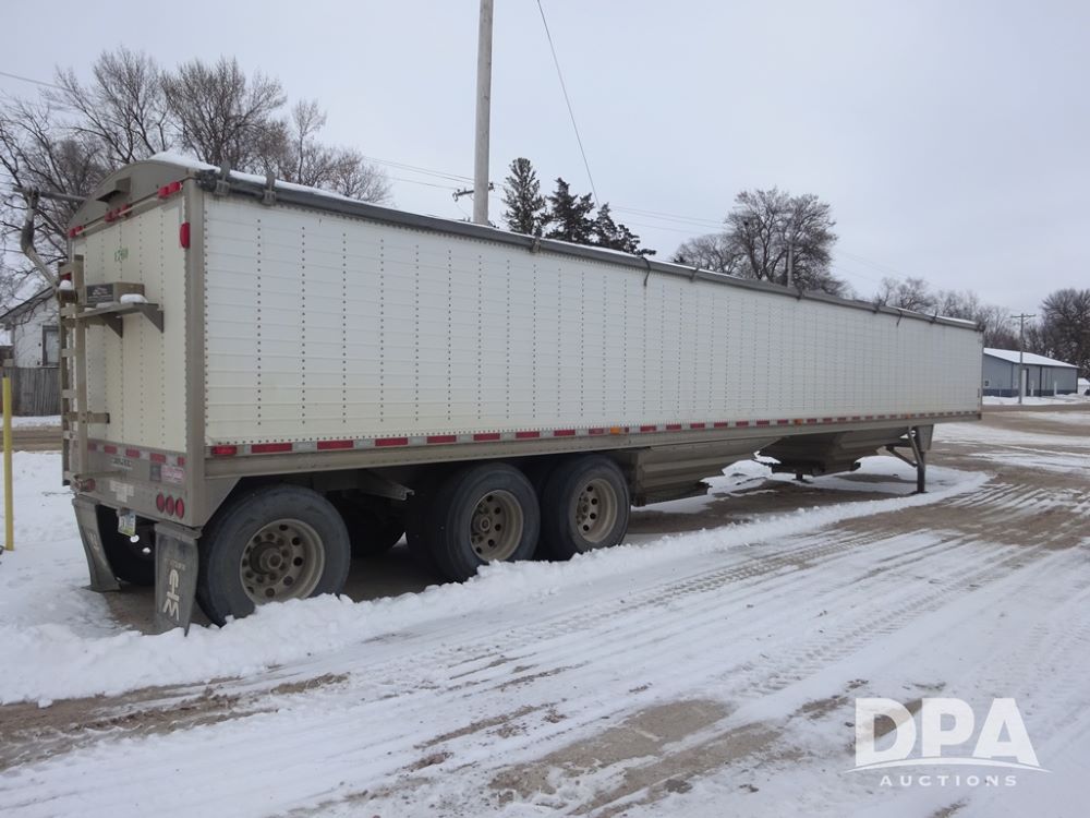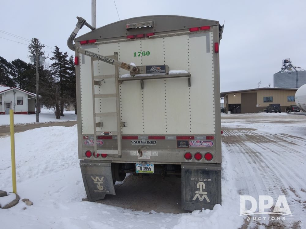 2012 Wilson PaceSetter Grain Trailer (PZ14232, Unit 1760), 2012 Wilson PaceSetter model DWH-500 aluminum hopper bottom grain trailer, LockDown electric roll over tarp, triple axle, air ride suspension, 11R22.5 tires, aluminum rims.