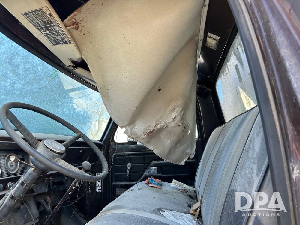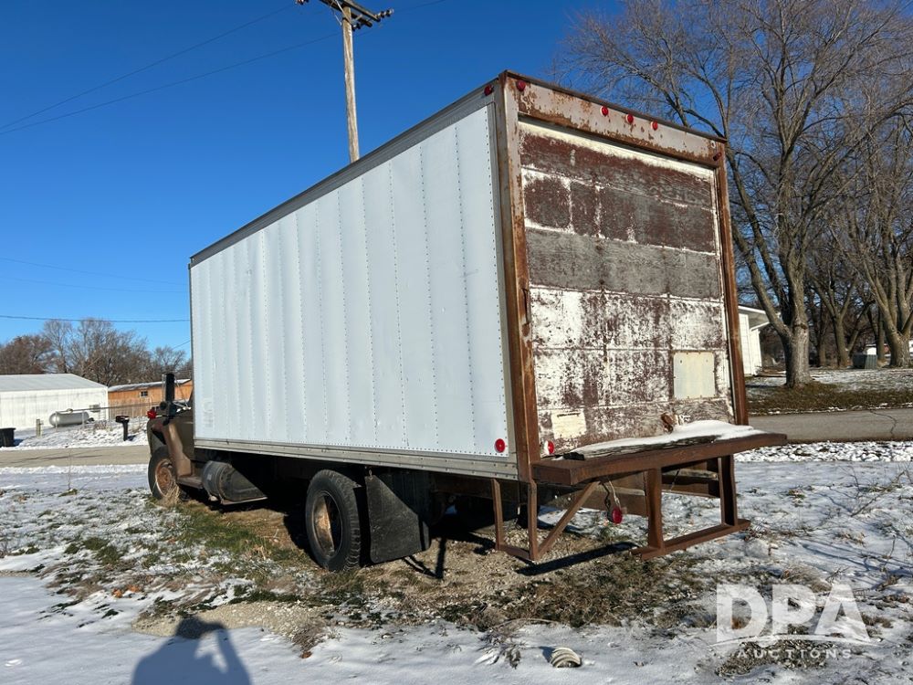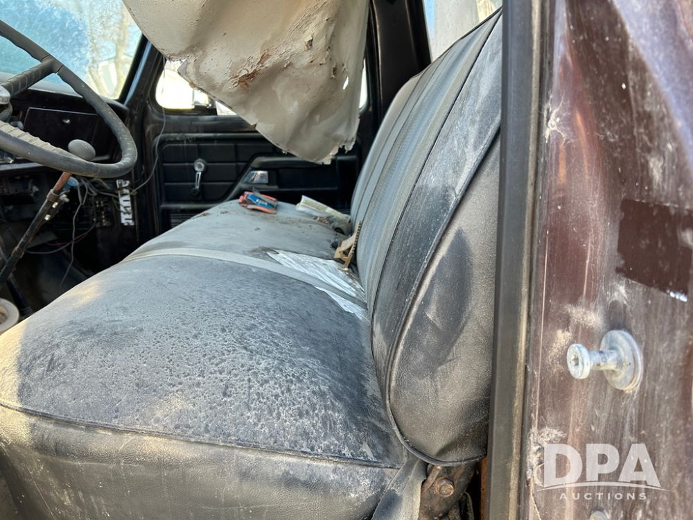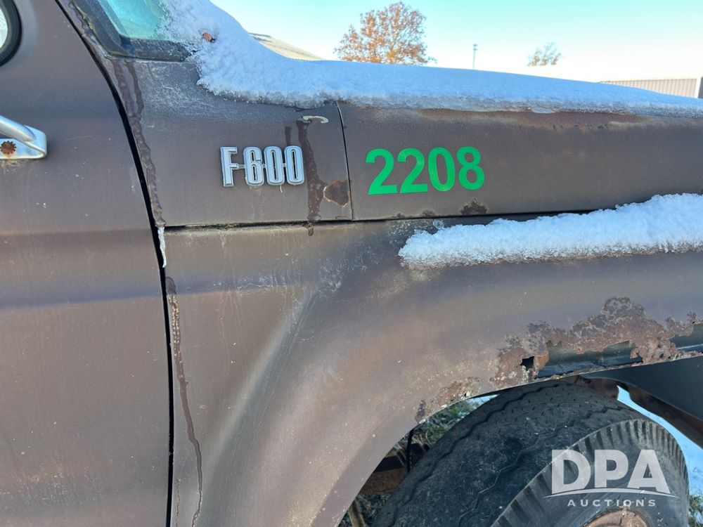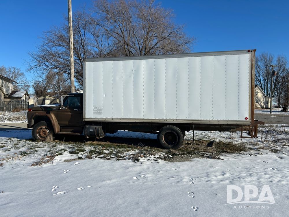 1978 Ford F600 Van Truck (CP1357, Unit 2208), gas engine, 4 speed transmission, 2 speed rear end, heat, radio, single axle, Van body, rear roll up door, curb door, 8.25-20 tires, shows 35,270 miles.