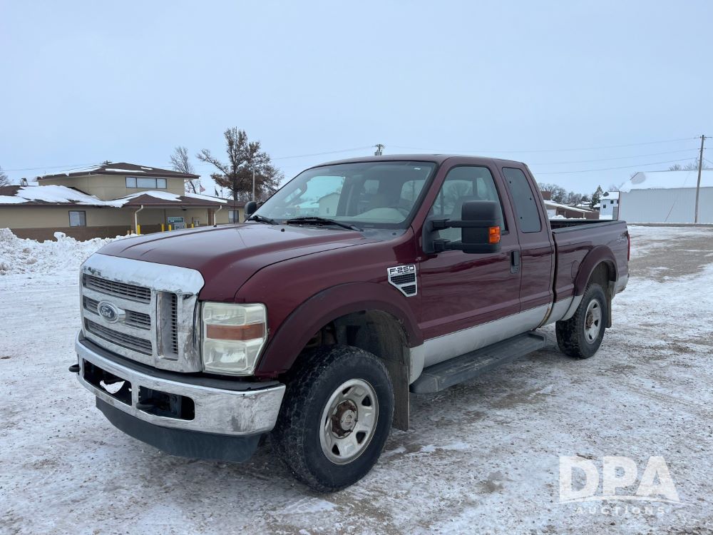 2008 Ford F250 XLT Super Duty Extended Cab Pickup (JN3547, Unit 115728), 4x4, 5.4L gas engine, automatic transmission, air conditioning, heat, Am/Fm CD radio, cruise control, power windows & locks, running boards, rear hitch, LT265/70R17 tires, shows 196,600 miles.