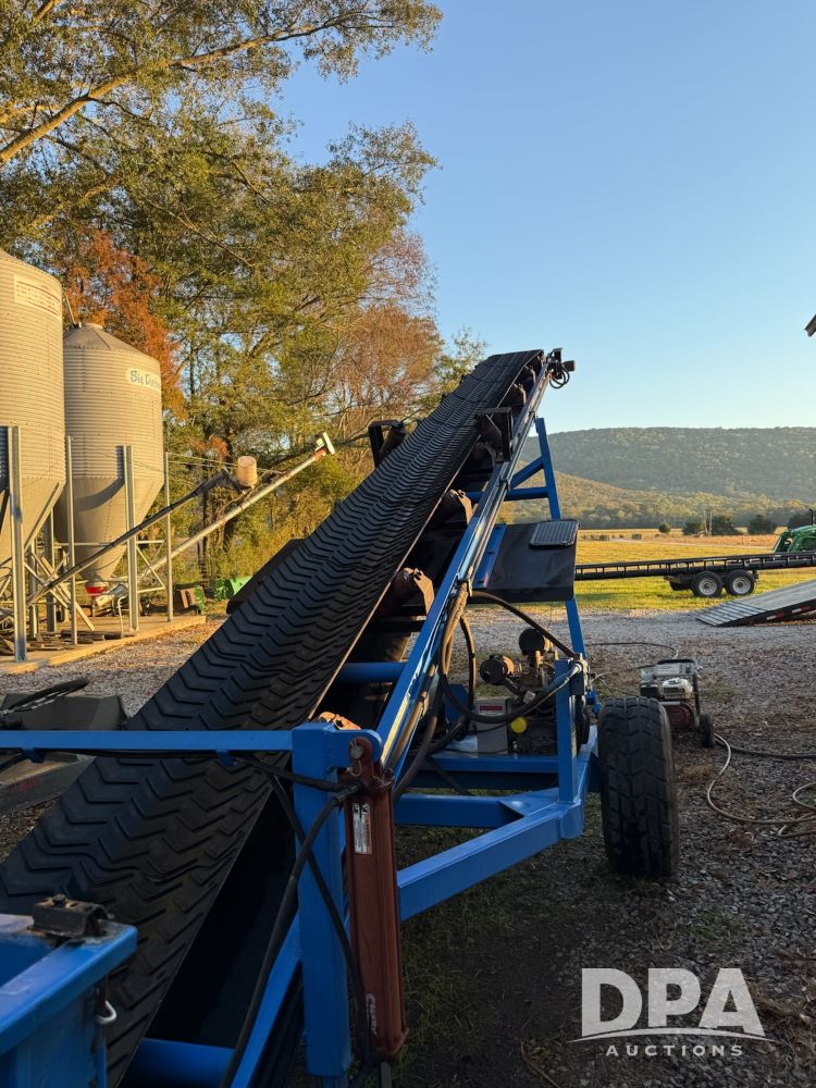 Adams Lime Litter Conveyor (LLD1532), 30 foot long, adjustable heights box is 9 foot, gas engine, new tires, new belt.