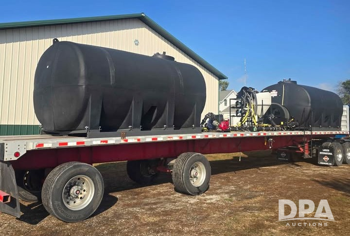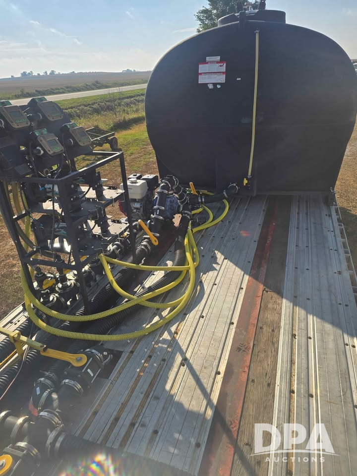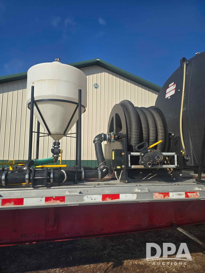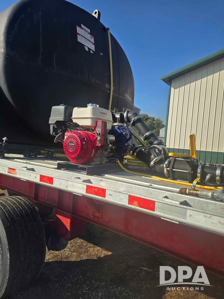 2005 Great Dane Flatbed Tender Trailer (LLD1536), 49 foot spread axle flatbed tender trailer, 3,200 gallon center sump, full drain endurance plastic tanks, 3 inch plumbing, Honda 3 inch pump with electric start, 3 inch hose reel , wireless remote control hose reel, 50 foot of hose, 60 gallon ace Roto-Mold cone inductor, 4-chemical automated direct injection chemical system, set up to load from both sides of the trailer.