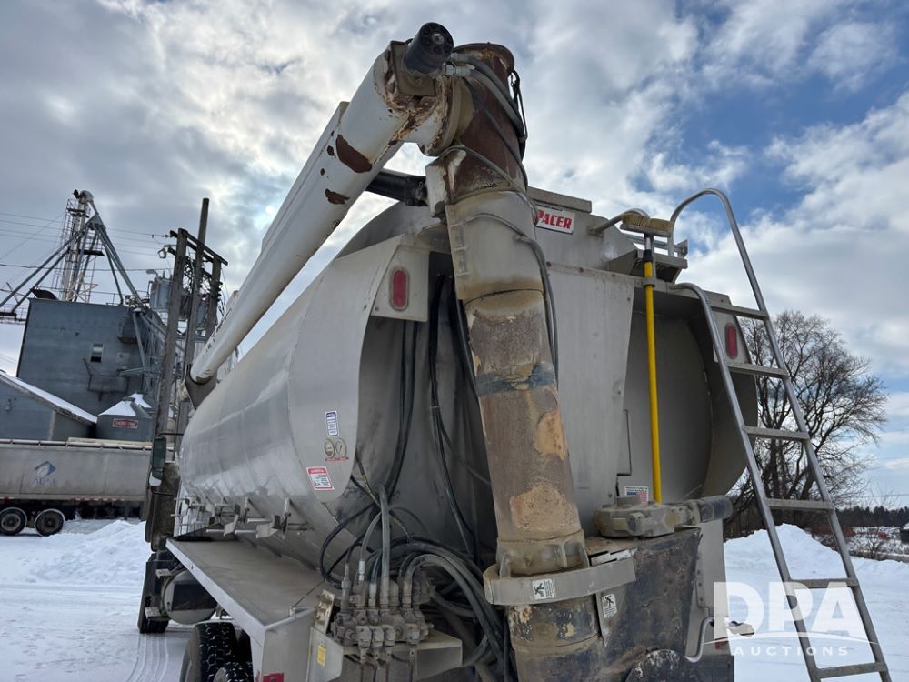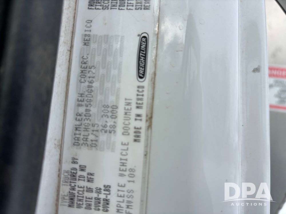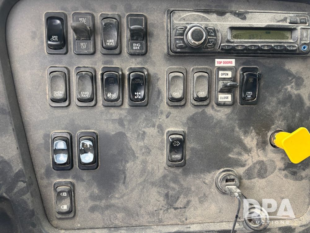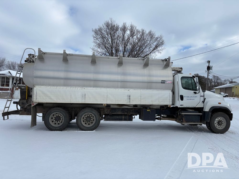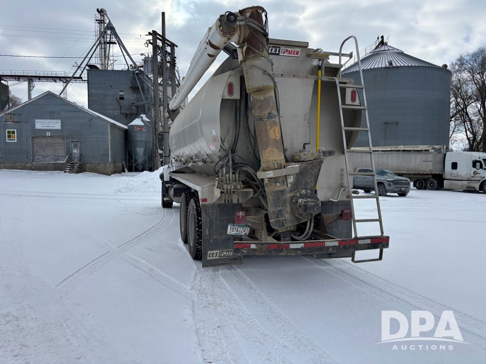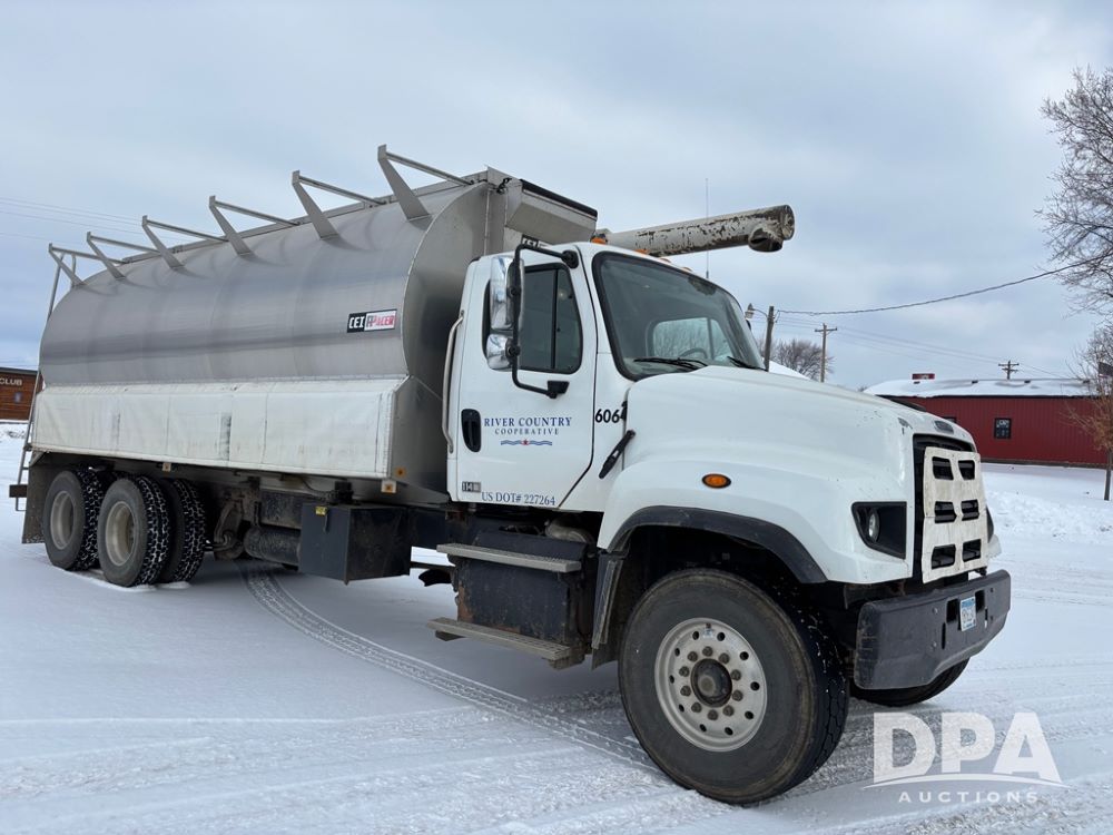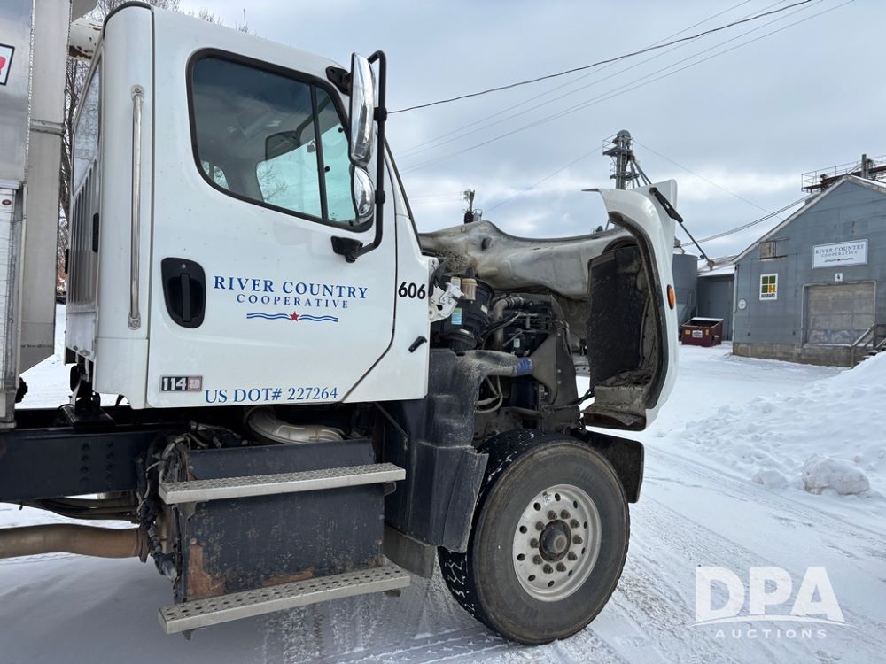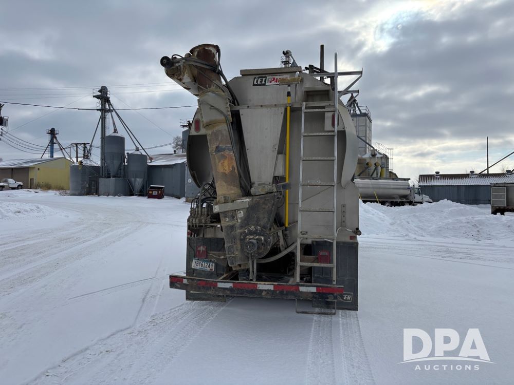 2015 Freightliner 114SD Feed Truck (DR12810 Unit 606), Detroit diesel engine, 10 speed transmission, tandem axle full screw, air ride suspension, 56,000lb rear, 26,0000lb front axle, CEI Pacer 15 ton 5 compartment hydraulic feed body, overhead discharge auger, hard top cover, engine brake, cruise control air dump valve, 22.5 tires, all aluminum wheels, odometer reads 254,152 miles.