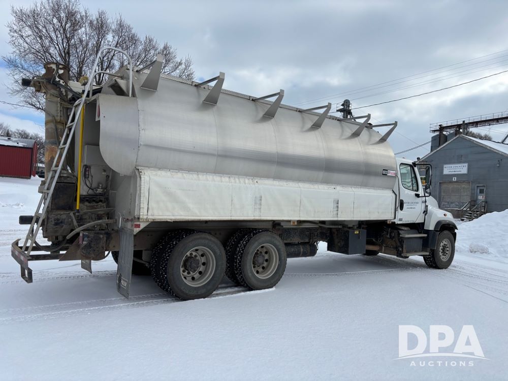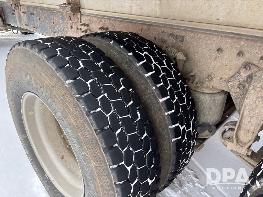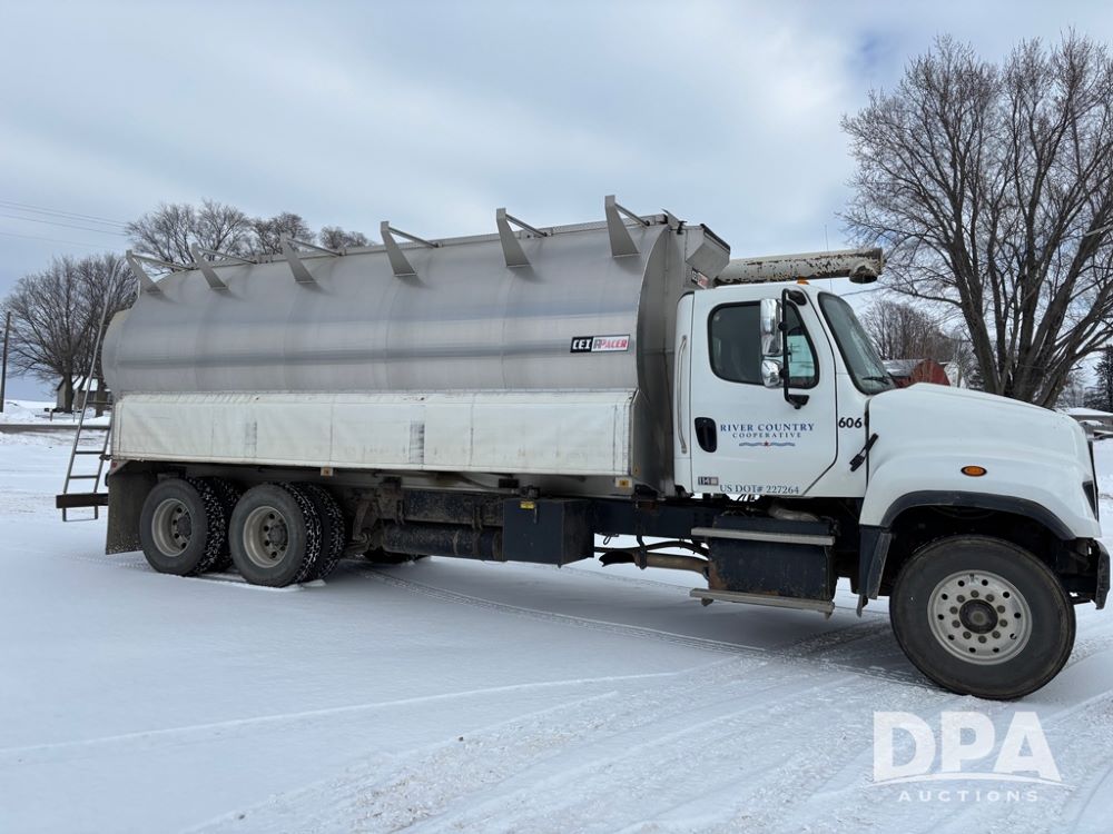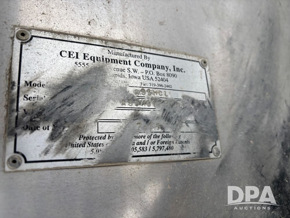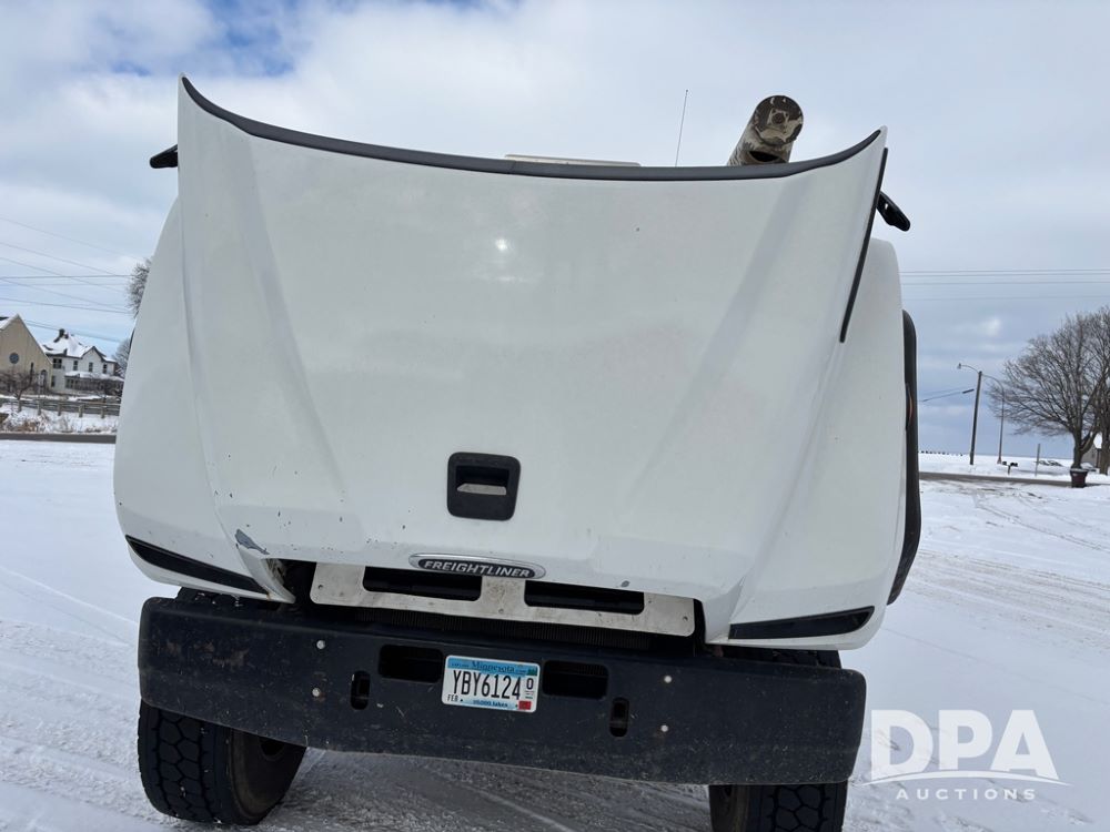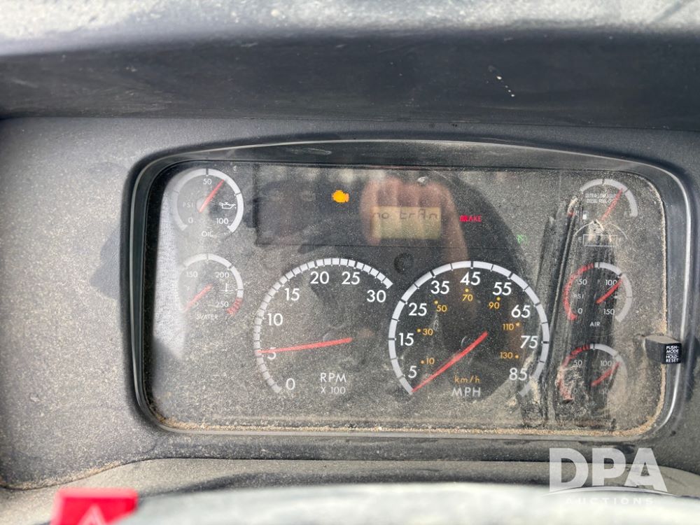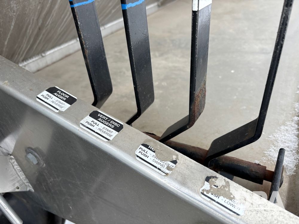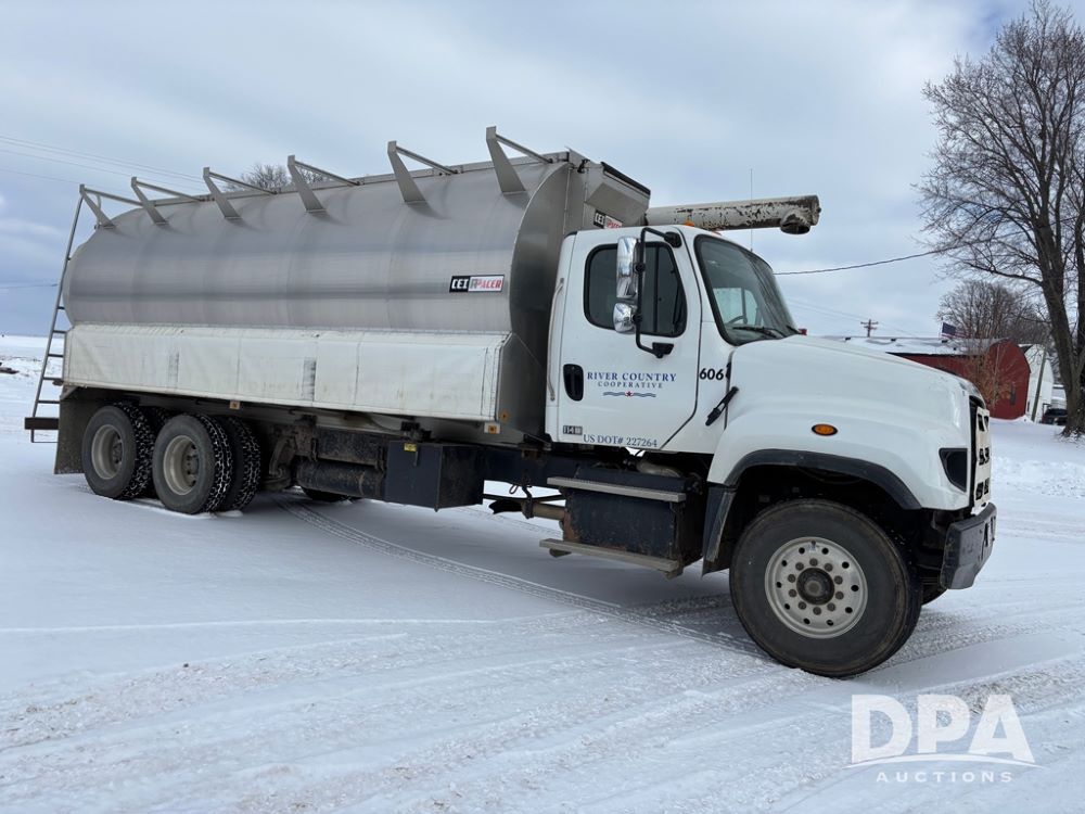 2015 Freightliner 114SD Feed Truck (DR12810 Unit 606), Detroit diesel engine, 10 speed transmission, tandem axle full screw, air ride suspension, 56,000lb rear, 26,0000lb front axle, CEI Pacer 15 ton 5 compartment hydraulic feed body, overhead discharge auger, hard top cover, engine brake, cruise control air dump valve, 22.5 tires, all aluminum wheels, odometer reads 254,152 miles.