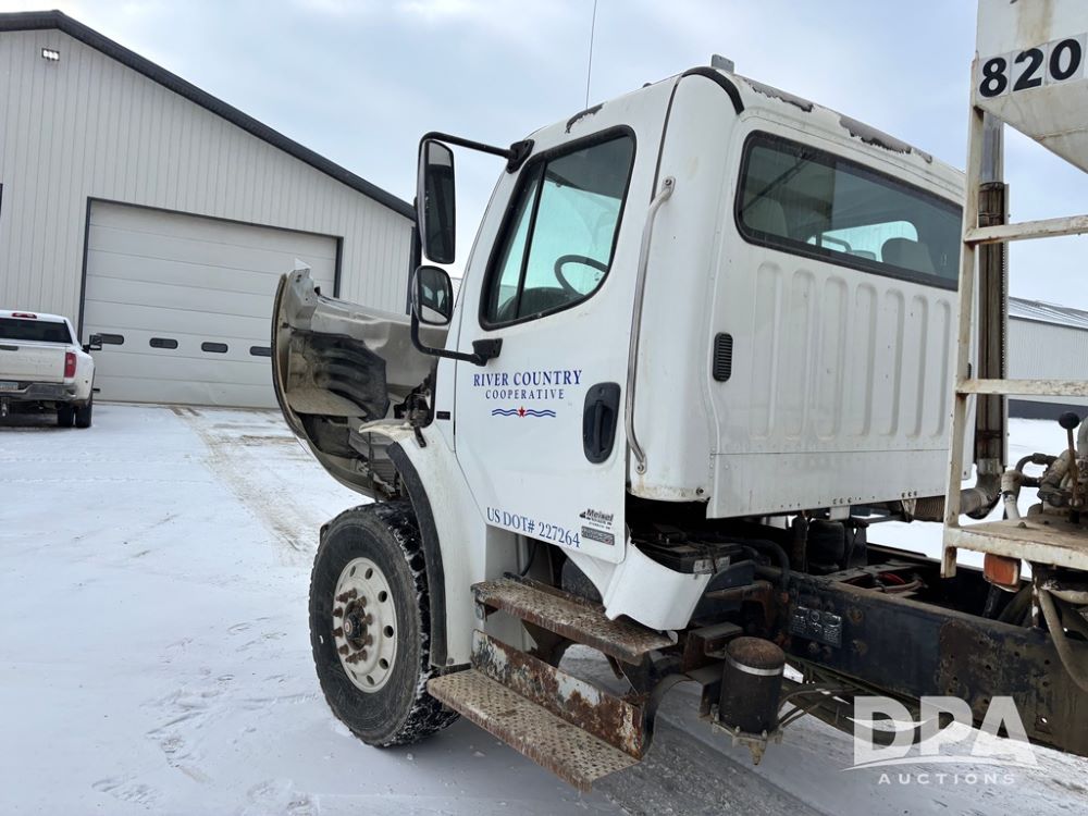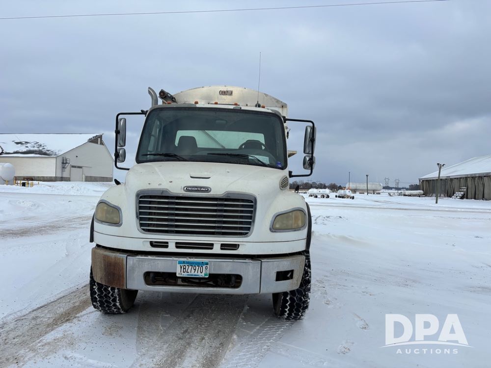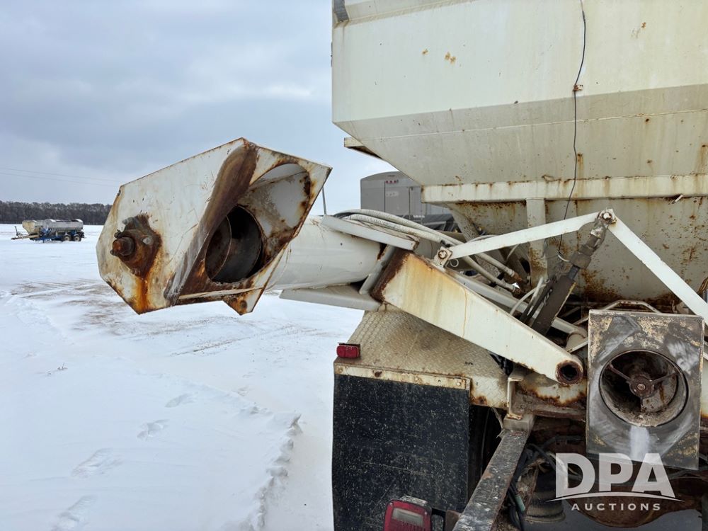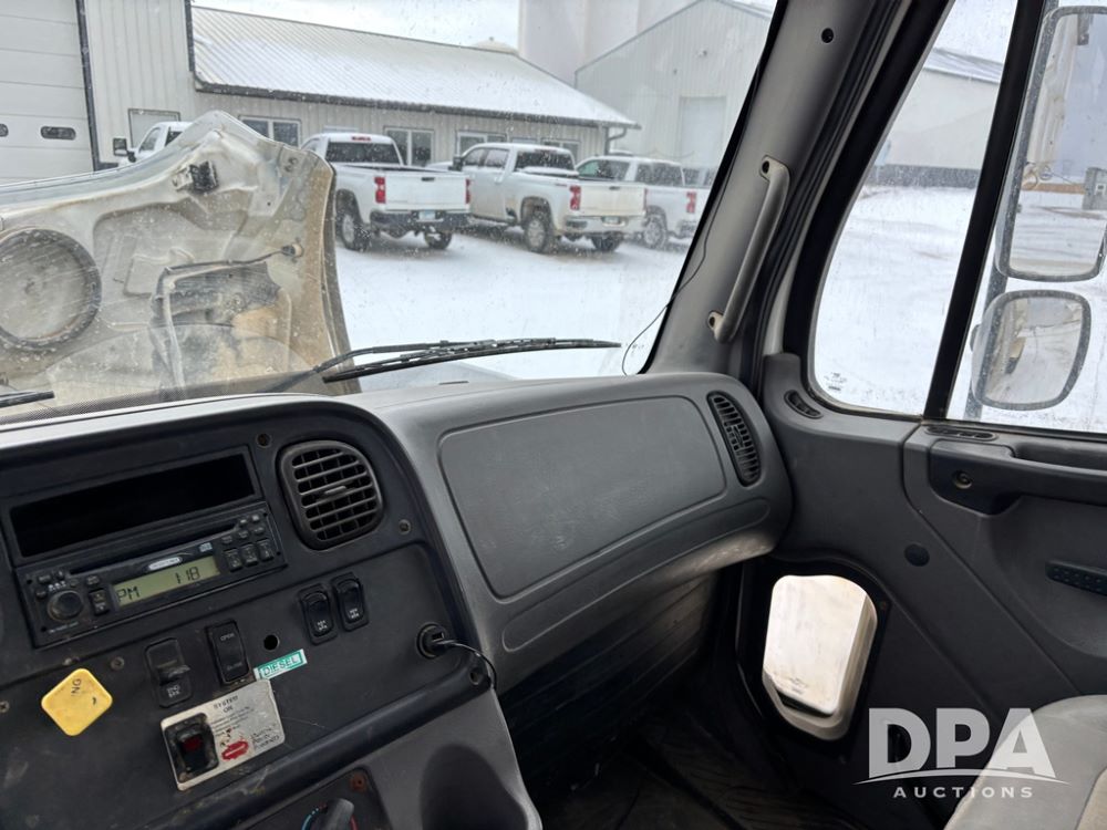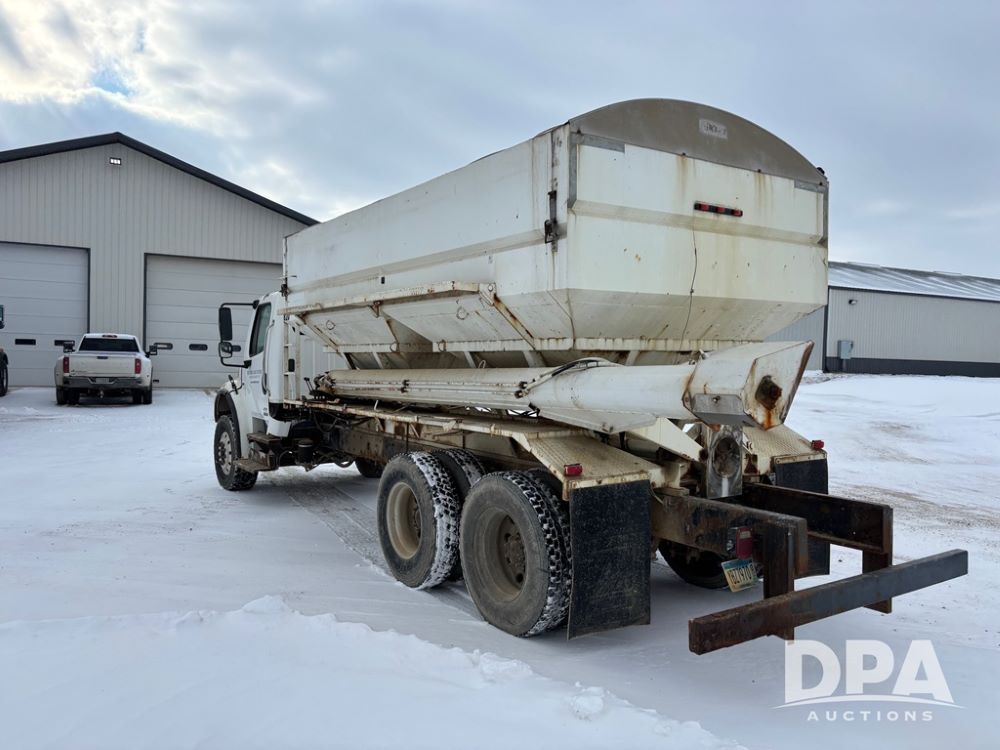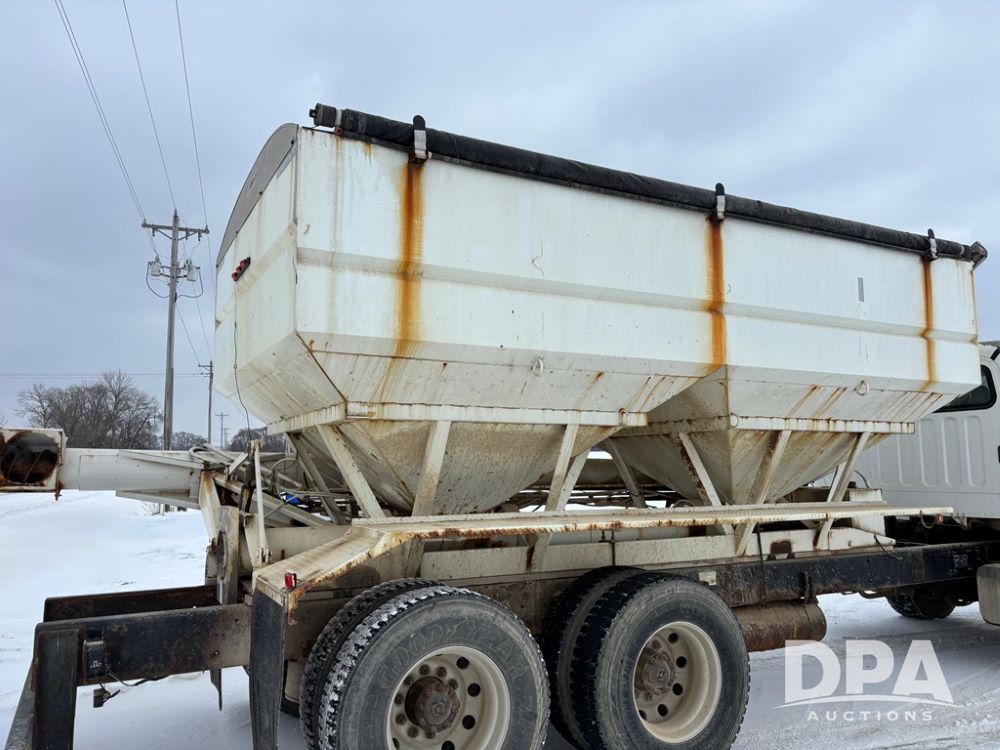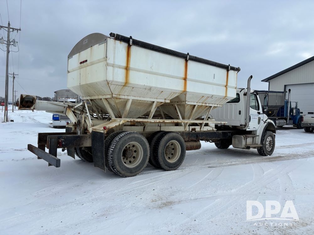 2006 Freightliner Dry Truck (DR12807 Unit 820), Mercedes diesel engine, Allison automatic transmission, tandem axle full screw, air ride suspension, 26,000LB front axle, w/power slave, 2 compartment hydraulic stainless steel dry tender box, side discharge auger, electric roll tarp, engine brake, 22.5 tires, all aluminum wheels.