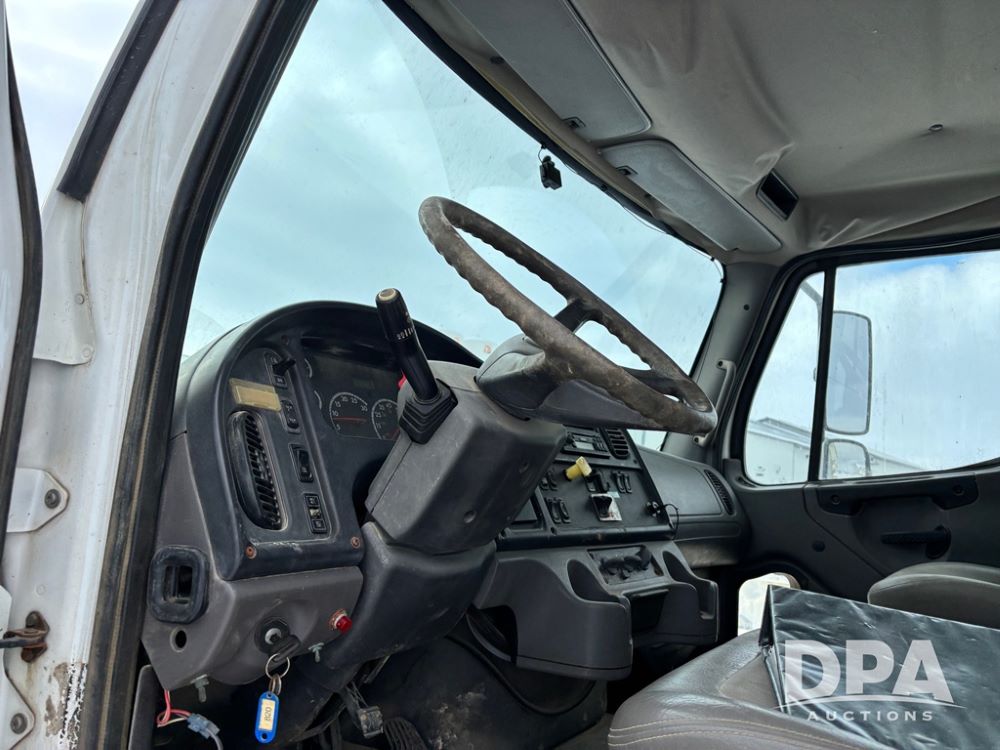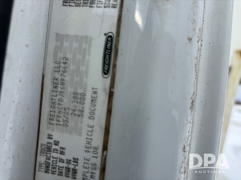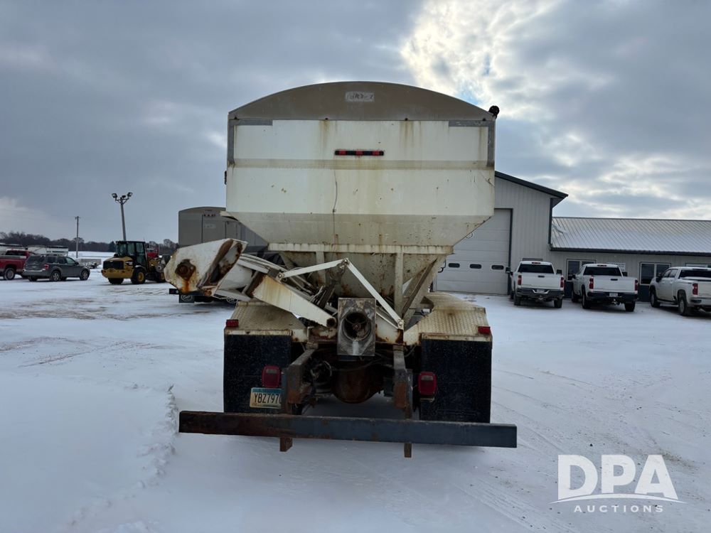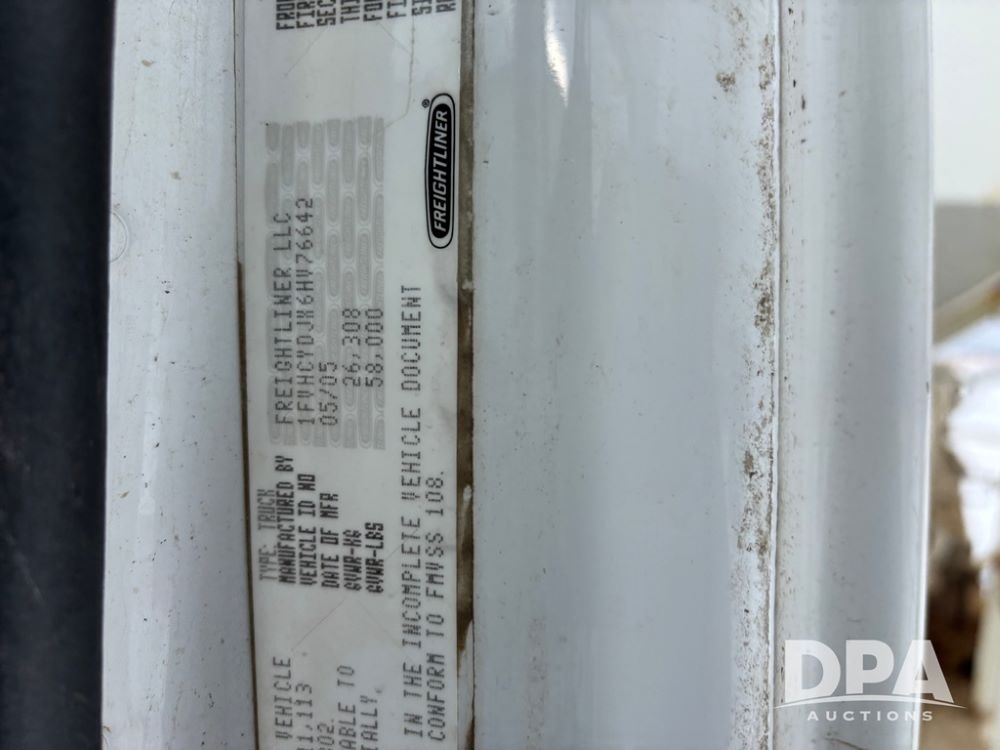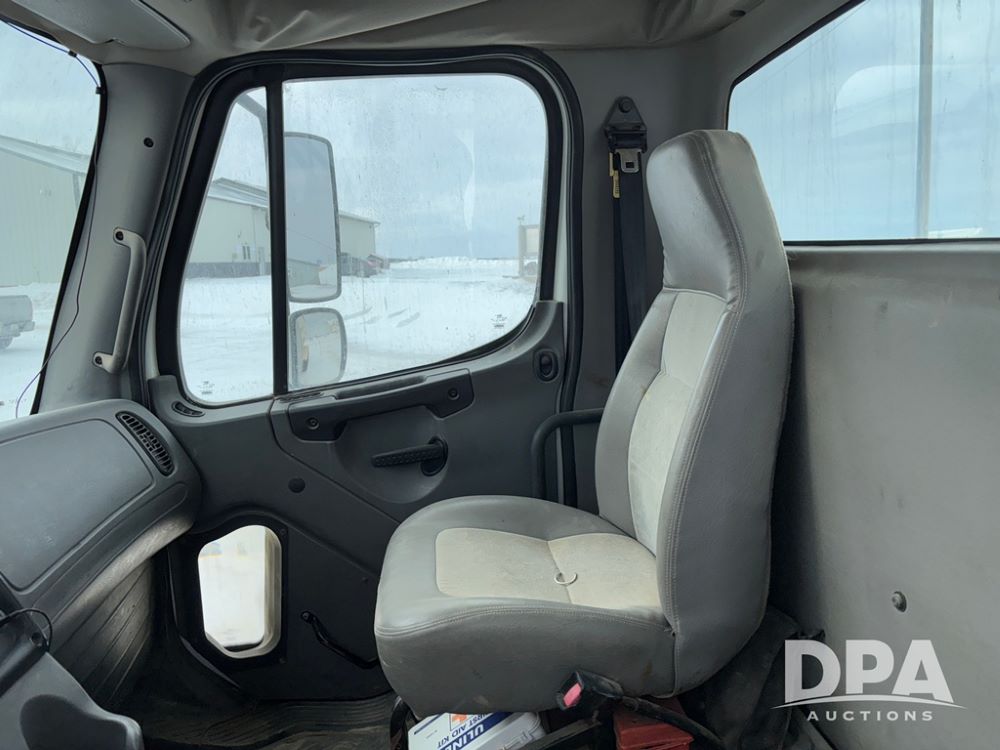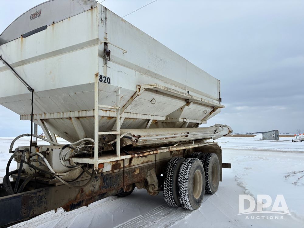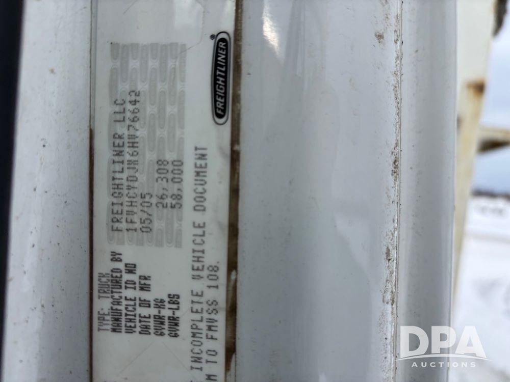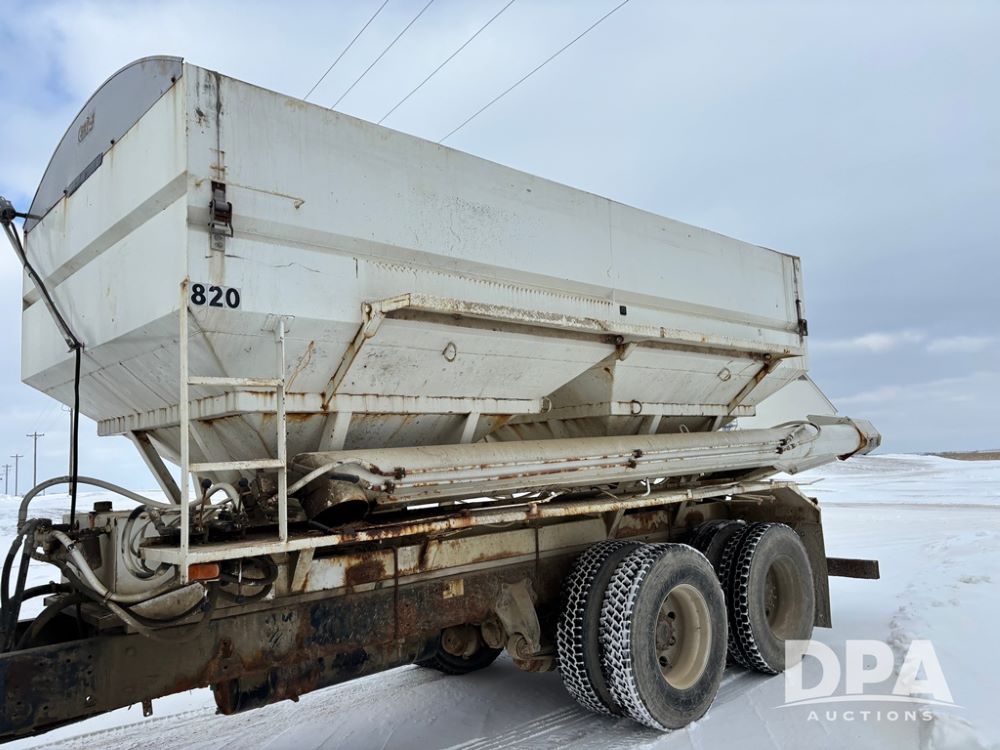 2006 Freightliner Dry Truck (DR12807 Unit 820), Mercedes diesel engine, Allison automatic transmission, tandem axle full screw, air ride suspension, 26,000LB front axle, w/power slave, 2 compartment hydraulic stainless steel dry tender box, side discharge auger, electric roll tarp, engine brake, 22.5 tires, all aluminum wheels.