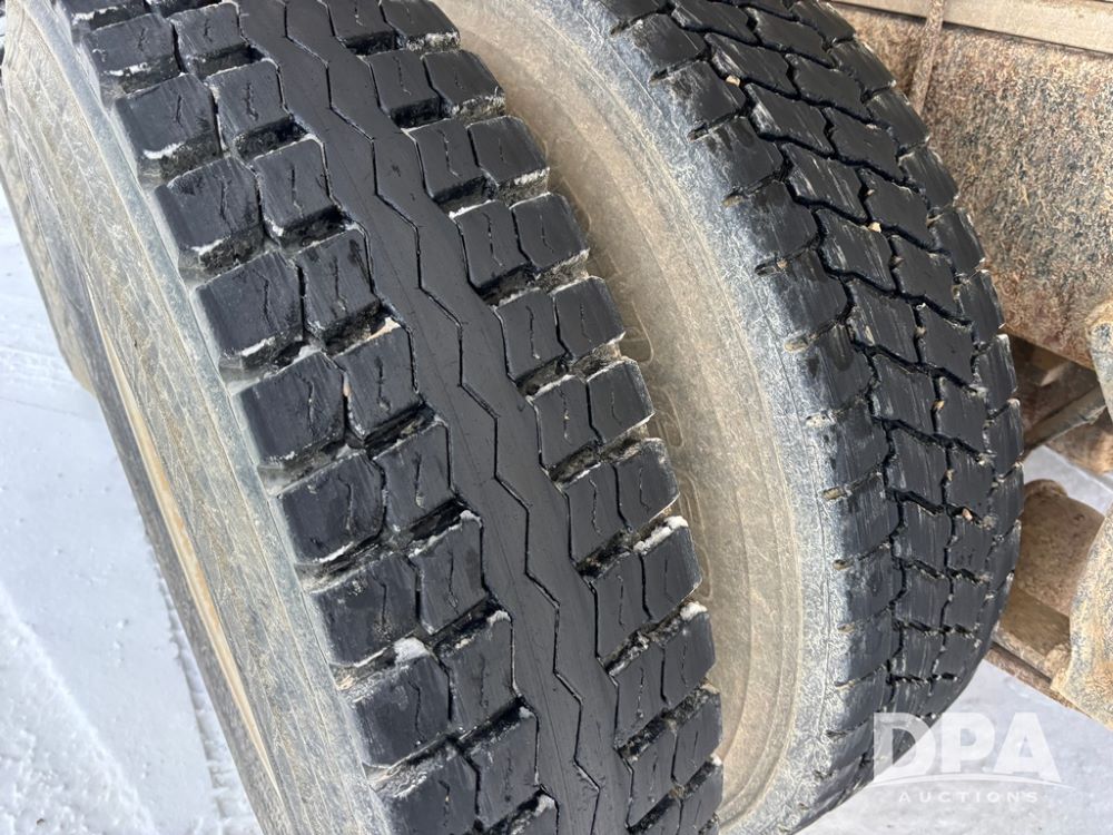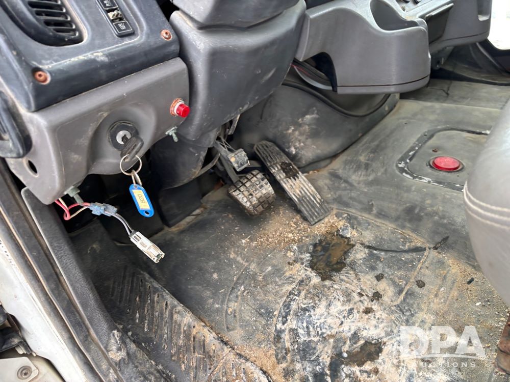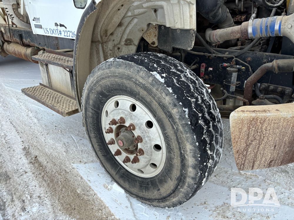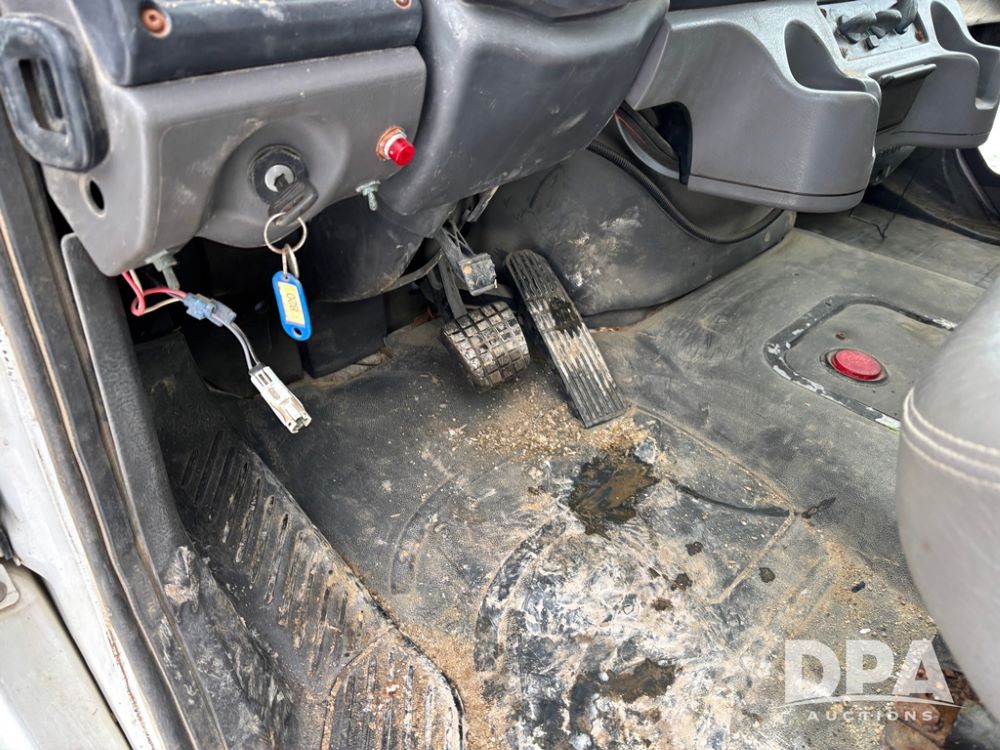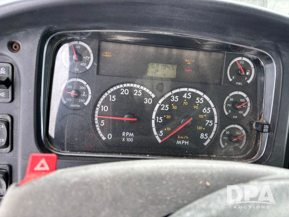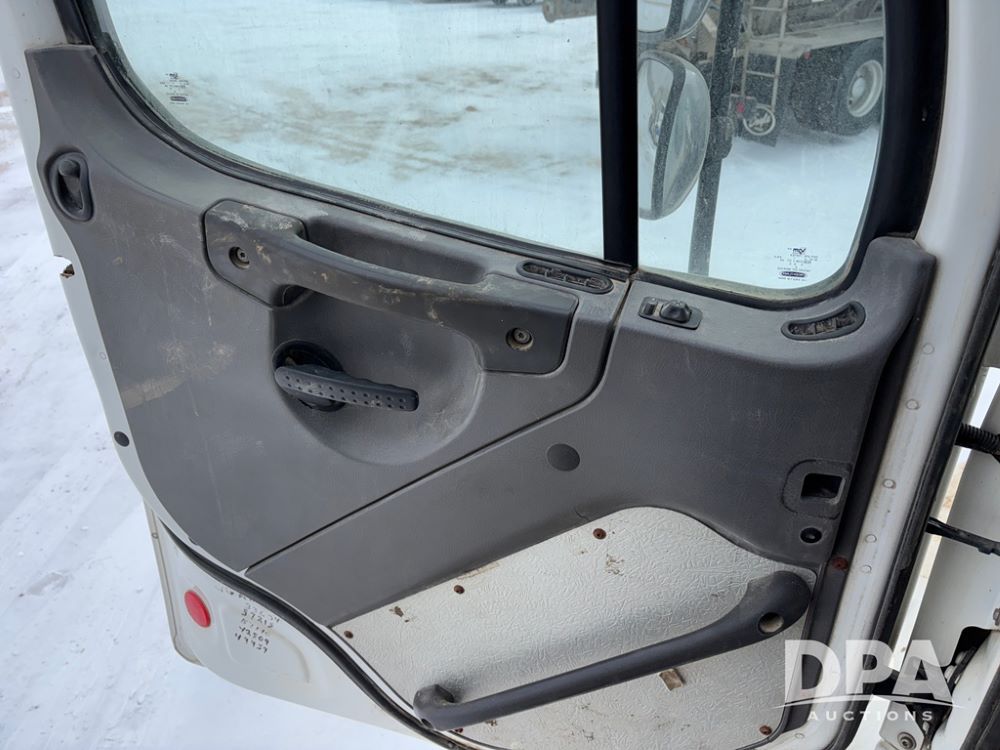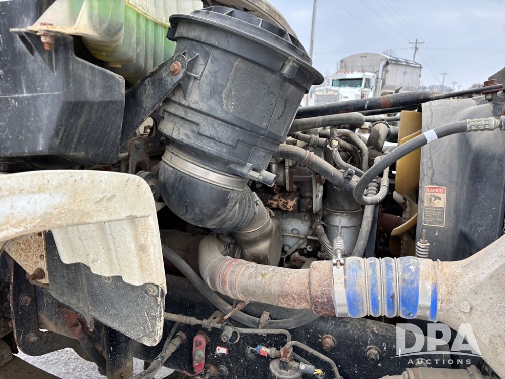 2006 Freightliner Dry Truck (DR12807 Unit 820), Mercedes diesel engine, Allison automatic transmission, tandem axle full screw, air ride suspension, 26,000LB front axle, w/power slave, 2 compartment hydraulic stainless steel dry tender box, side discharge auger, electric roll tarp, engine brake, 22.5 tires, all aluminum wheels.