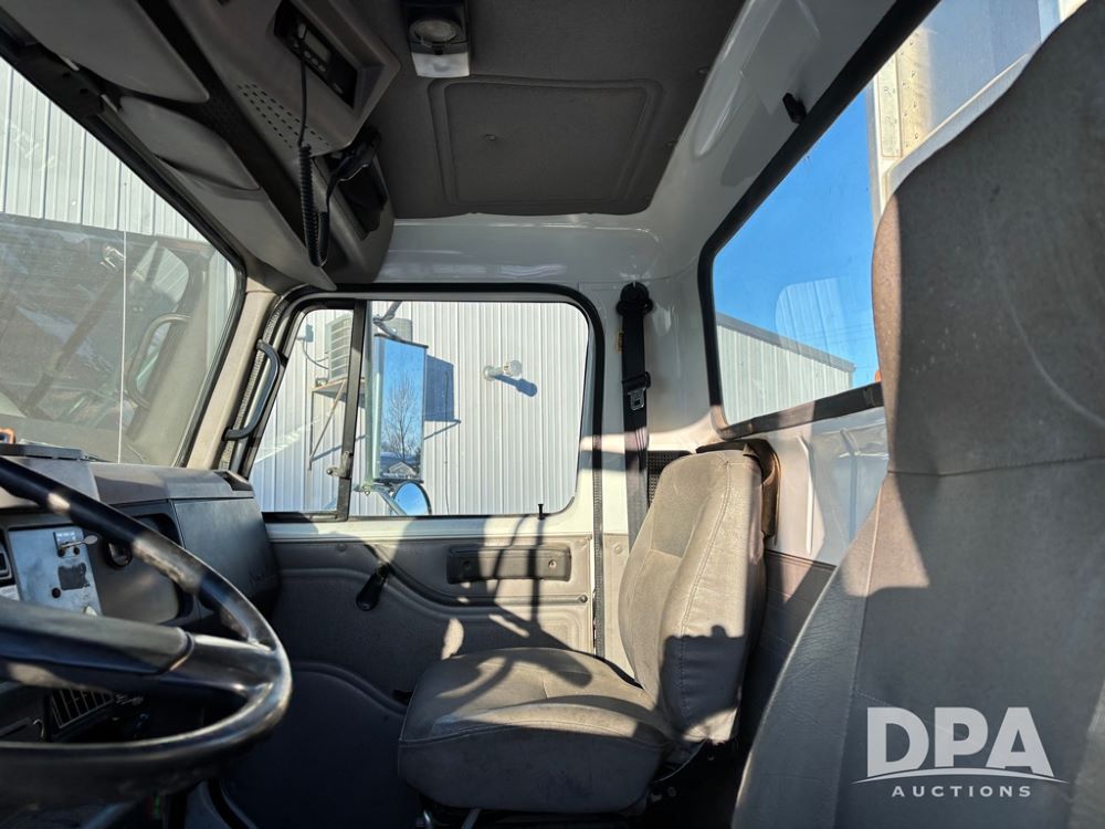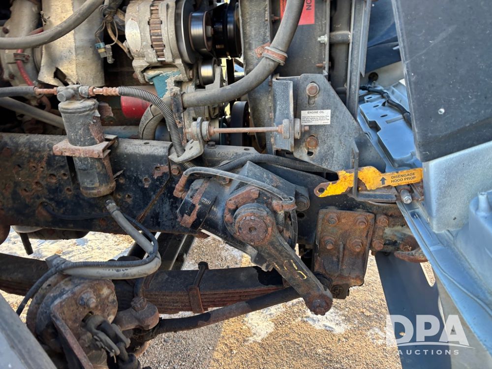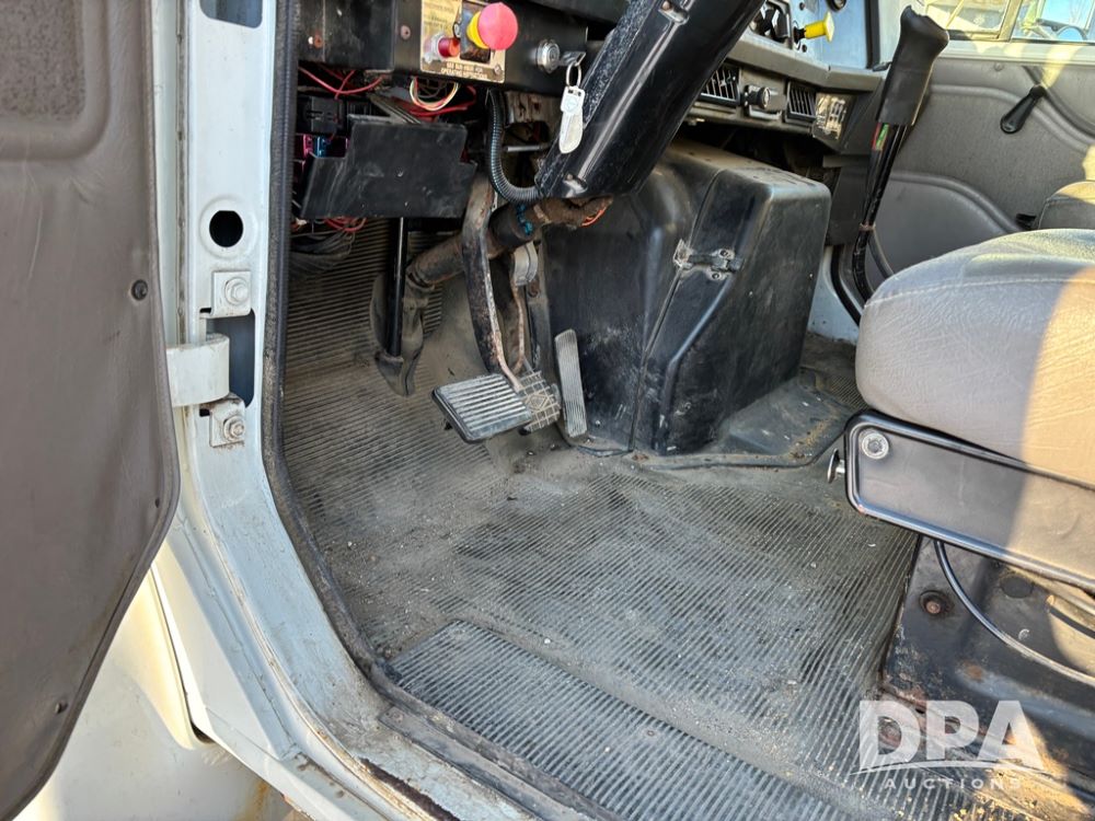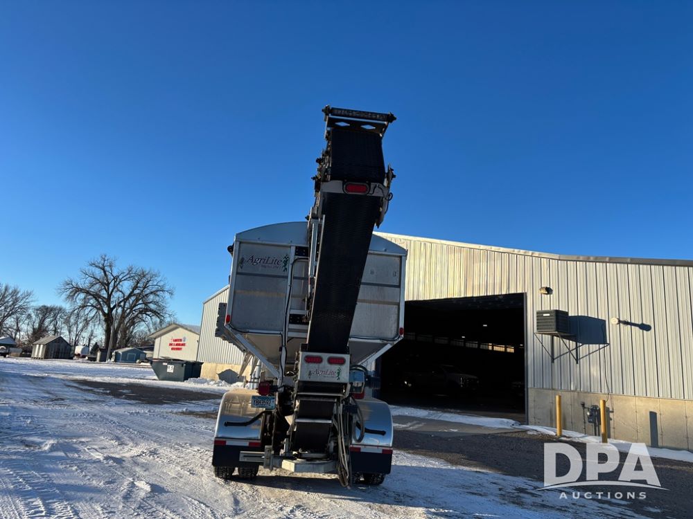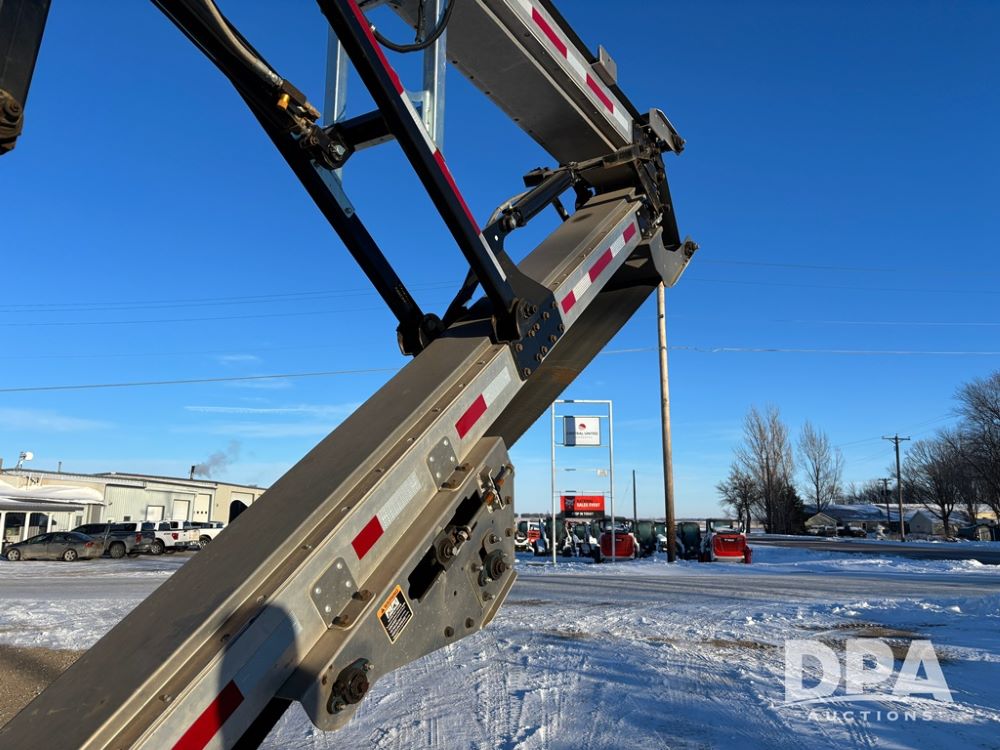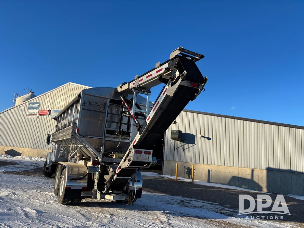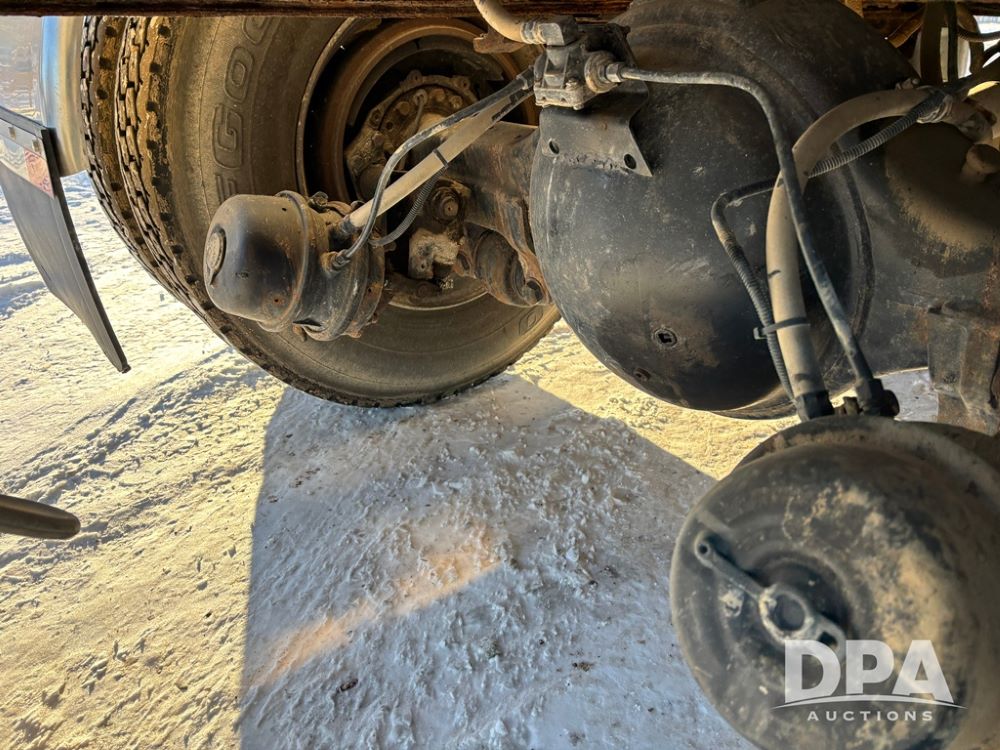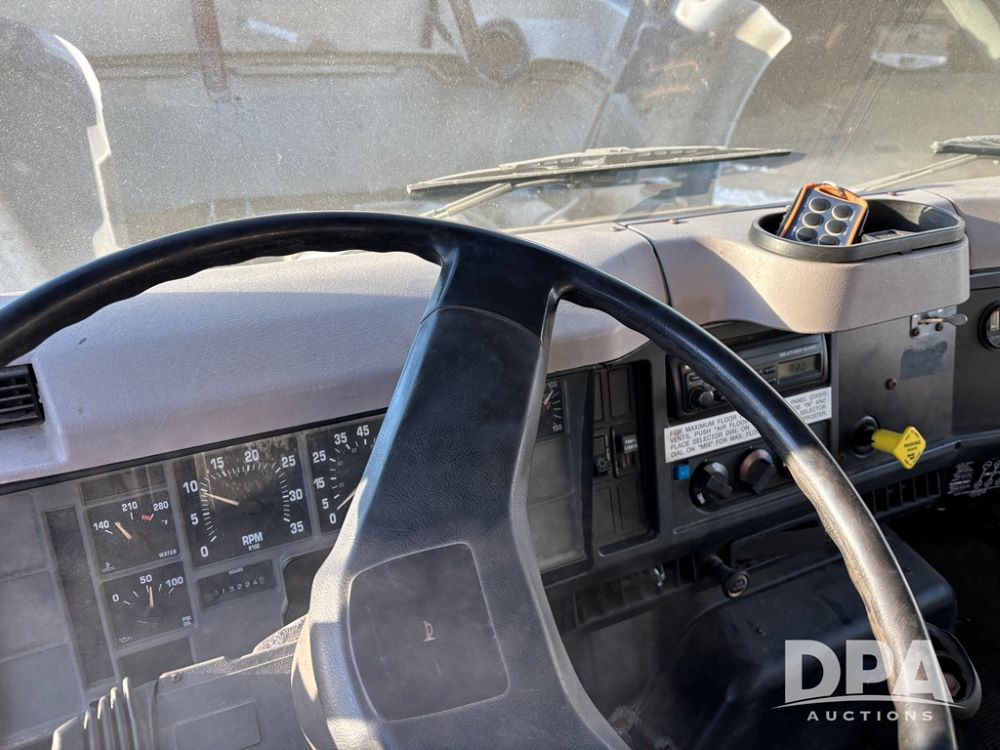 1999 International 4900 (DR12823 Unit 282), DT530 diesel engine, 10 speed transmission, tandem axle full screw, heavy front axle w/dual power steering, Agri Lite stainless steel 2 compartment hydraulic box, rear discharge folding conveyor, full 180 degree swing, hand held remote, electric roll tarp, stainless steel full fenders, 22.5 drive tires are near new.