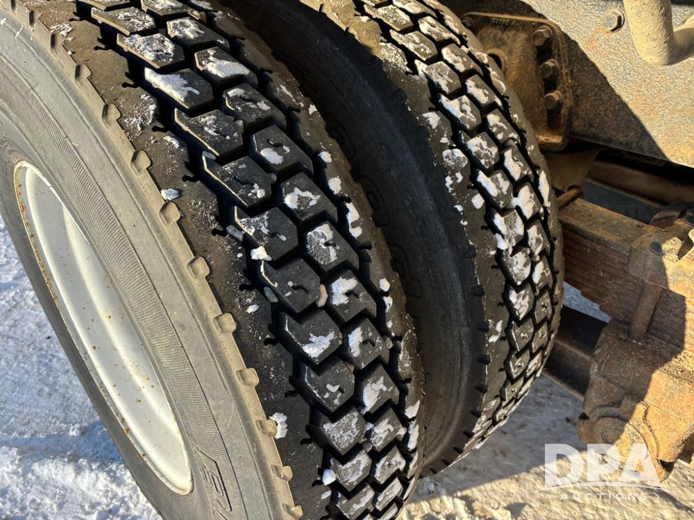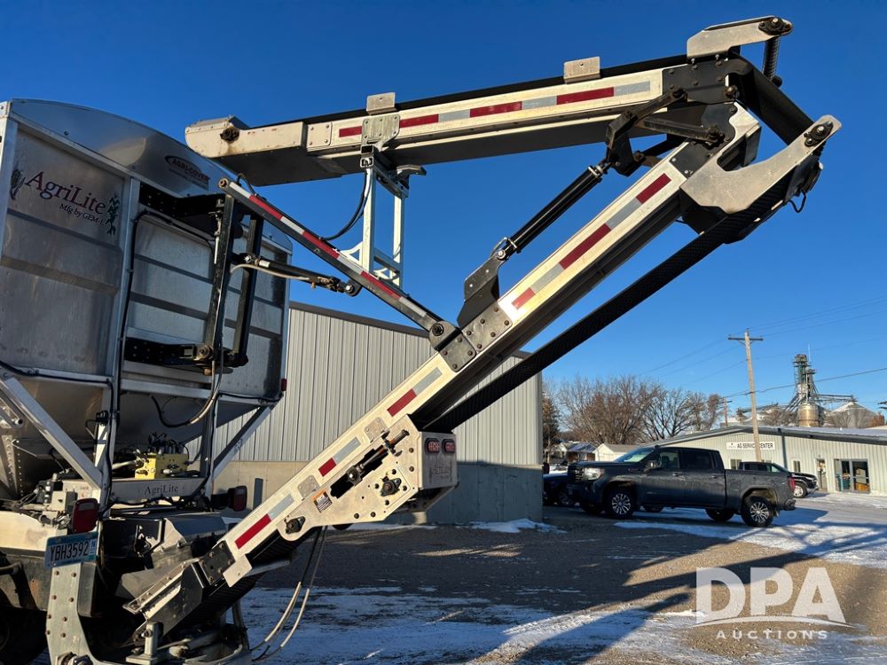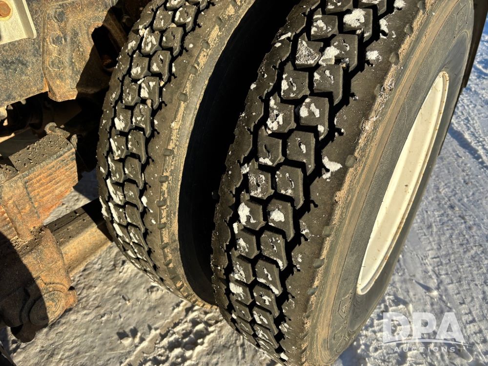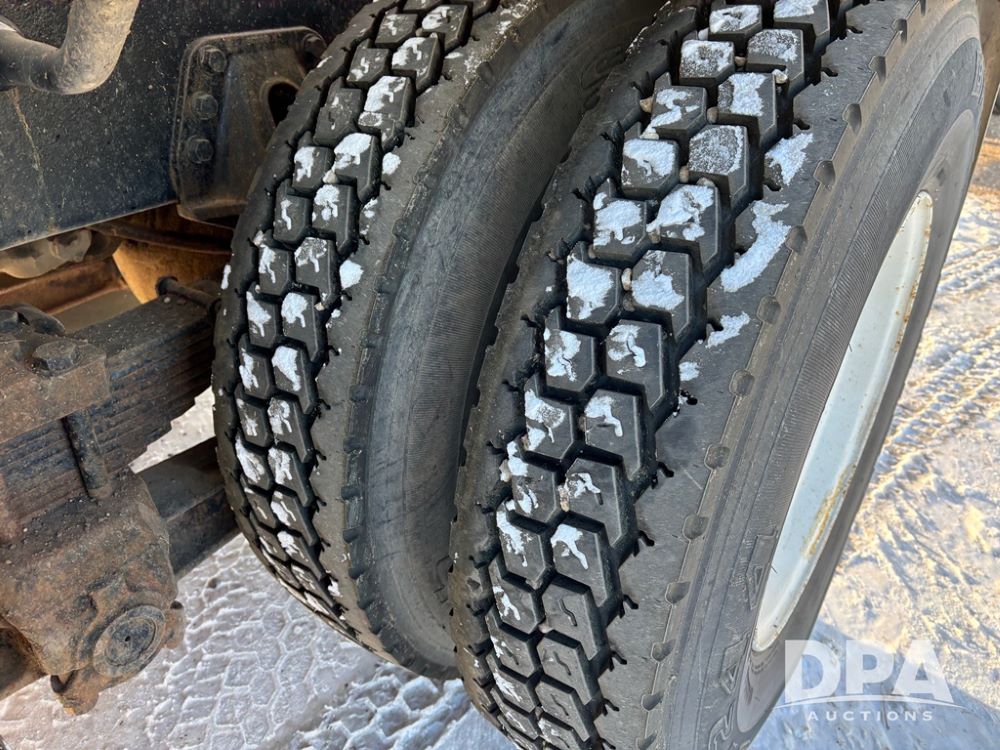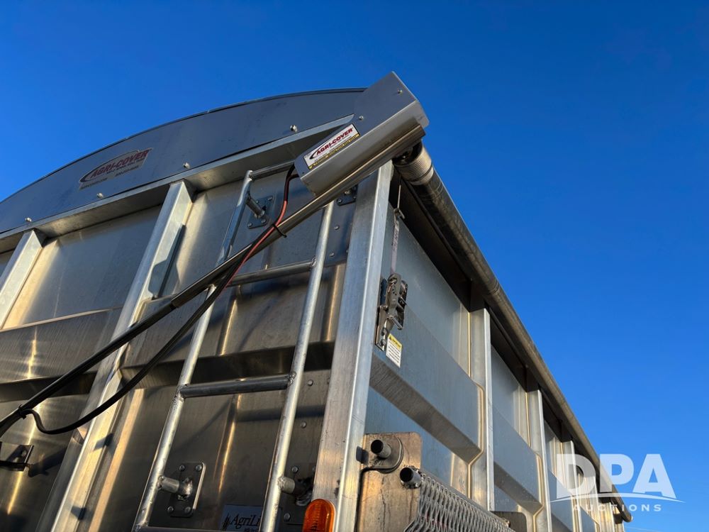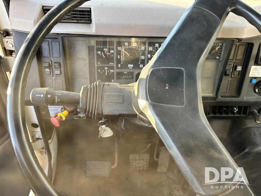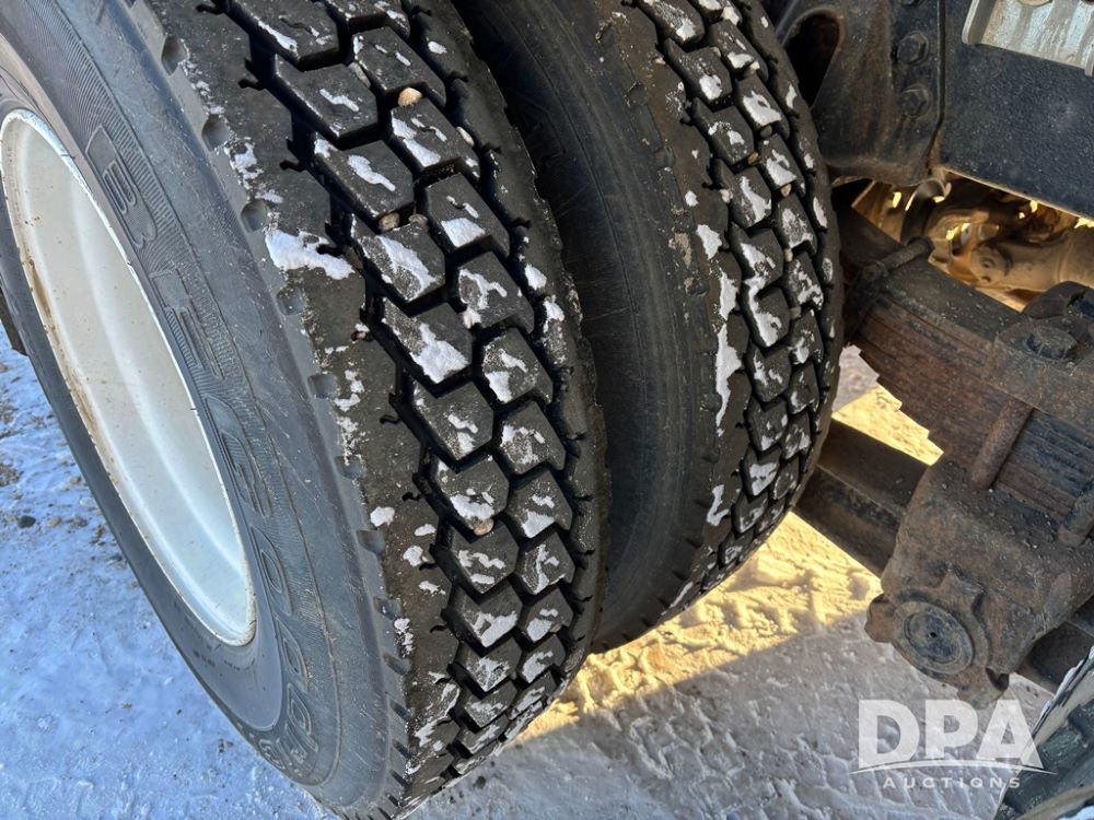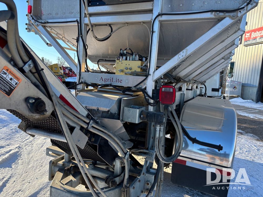 1999 International 4900 (DR12823 Unit 282), DT530 diesel engine, 10 speed transmission, tandem axle full screw, heavy front axle w/dual power steering, Agri Lite stainless steel 2 compartment hydraulic box, rear discharge folding conveyor, full 180 degree swing, hand held remote, electric roll tarp, stainless steel full fenders, 22.5 drive tires are near new.