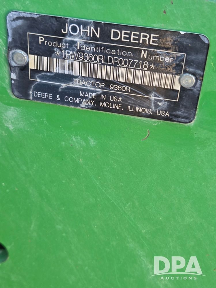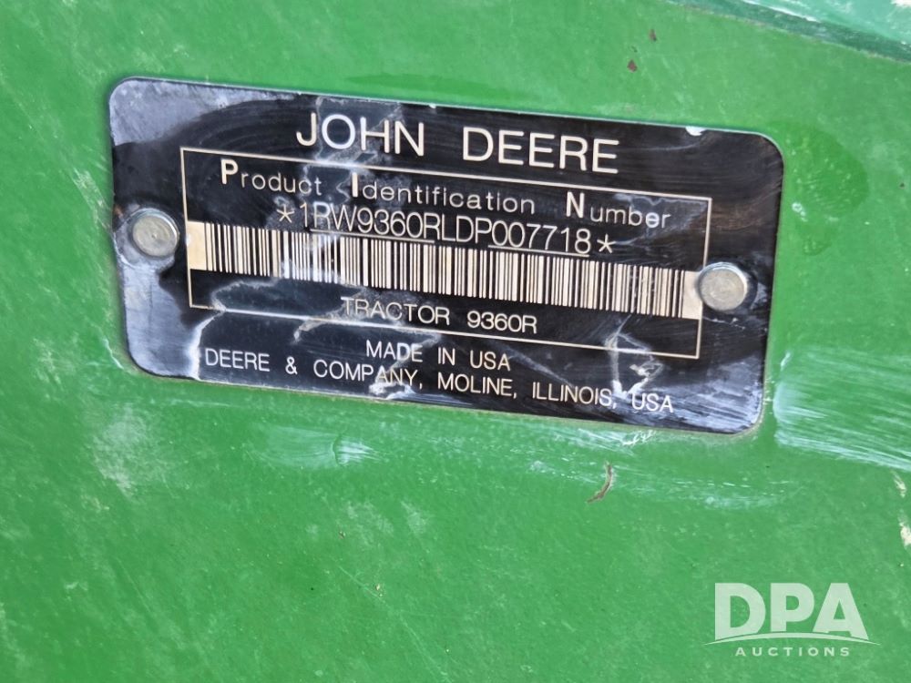 2013 John Deere 9360R Tractor (MN1177), 4WD, articulating John deere 9360R tractor, John Deere diesel engine, Powershift transmission, heat, air conditioning, radio, cloth seats with buddy seat, 5 hydraulic ports, rear 3 Point, Quick hitch, Ag drawbar, 1,000 PTO, 480/80R50 duals front and rear tires, GPS & Auto Guidance Ready, shows 6,203.5 hours.