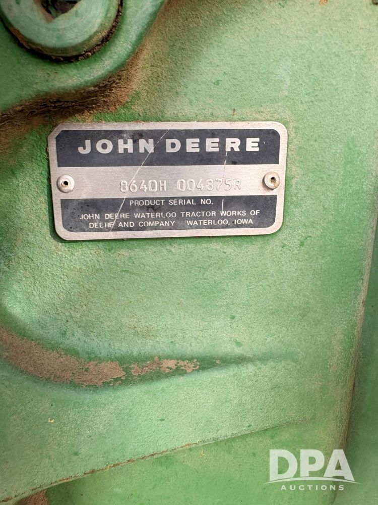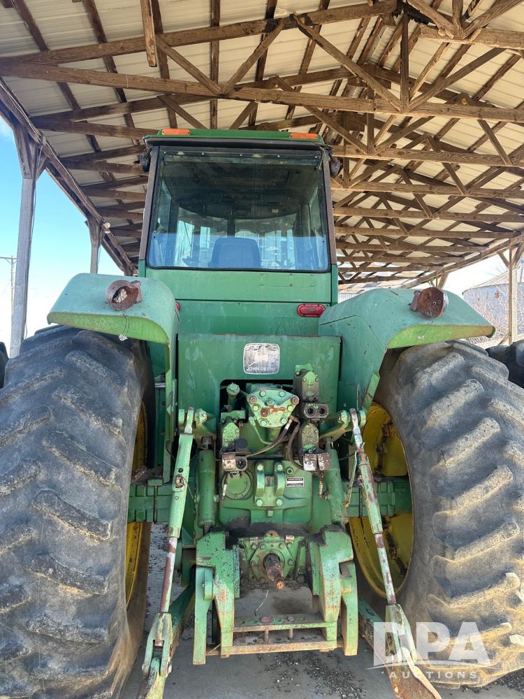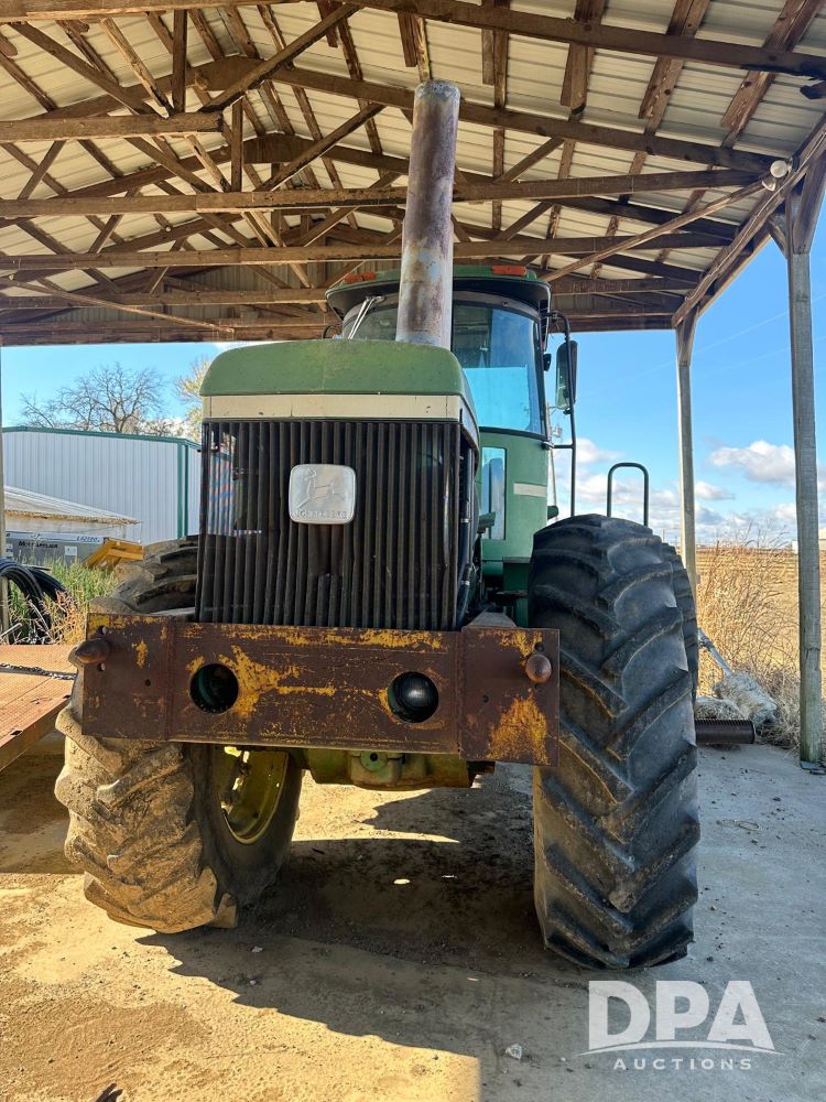 1983 John Deere 8640 Tractor and Blade (MN1169), John Deere 8640 articulated tractor, 4WD, diesel engine, quad range transmission, enclosed cab, PTO, 3 hydraulic outlets, 3 Point, Degelman style dozer blade included, 20.8-38 tires, shed kept, approx. 4,000 hours on tractor, approx. 900 hours on new engine.