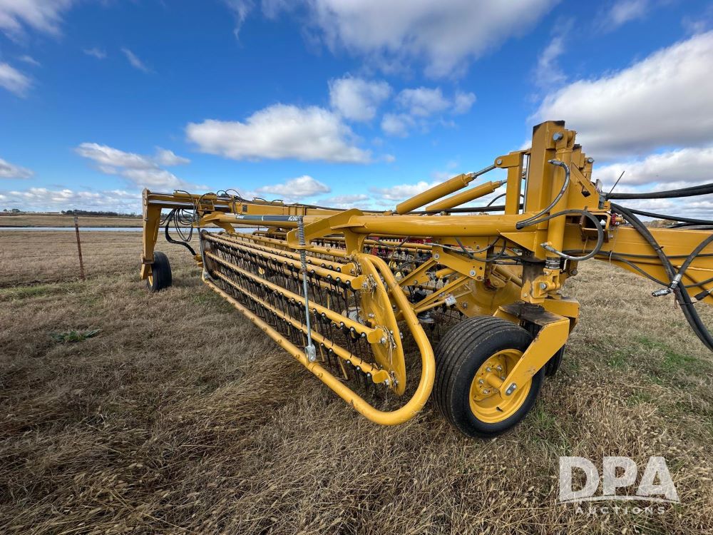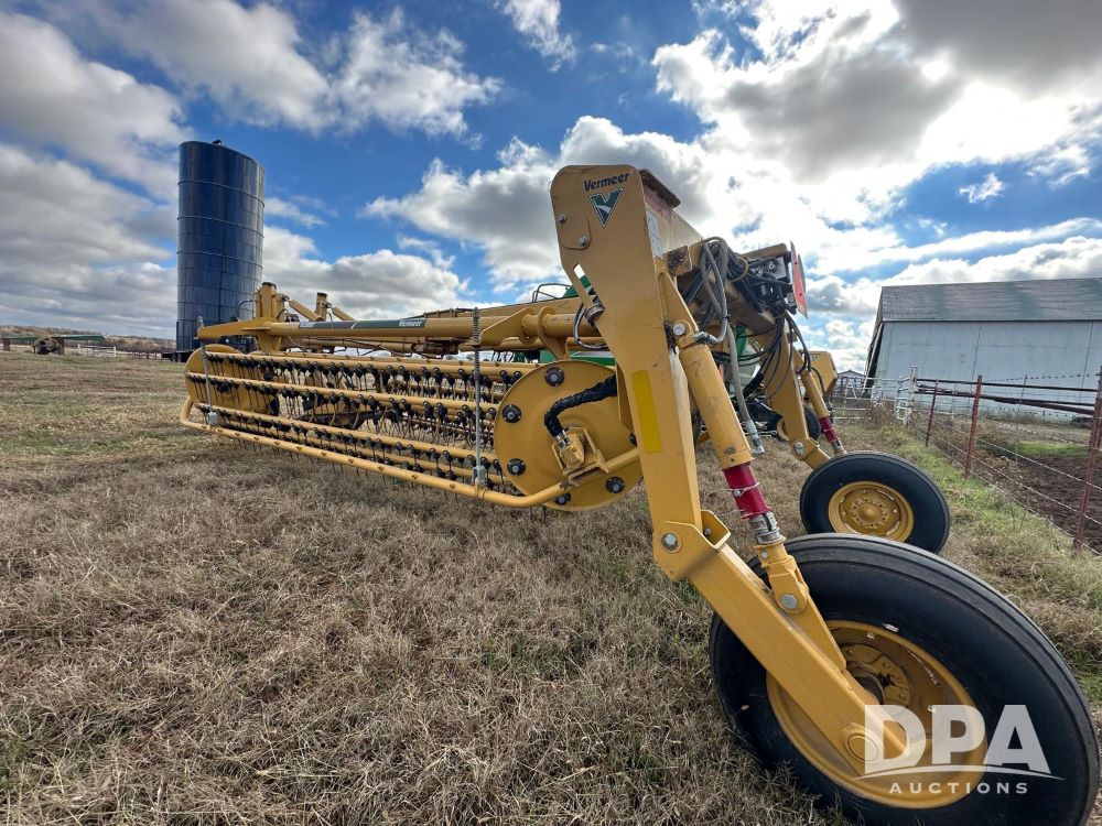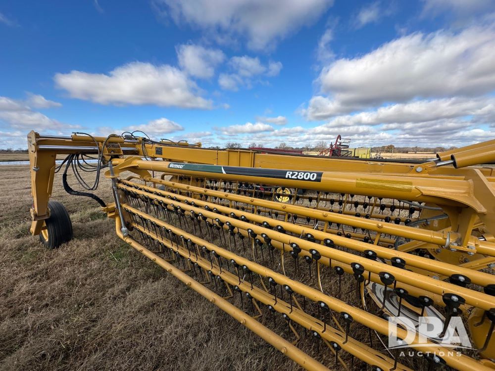 2023 Vermeer R2800 Hay Rake (MN1176), hydraulic power rake with a 19ft 6” rake width, PTO driven, twin 7 bar rakes, front dolly wheels, shed kept.