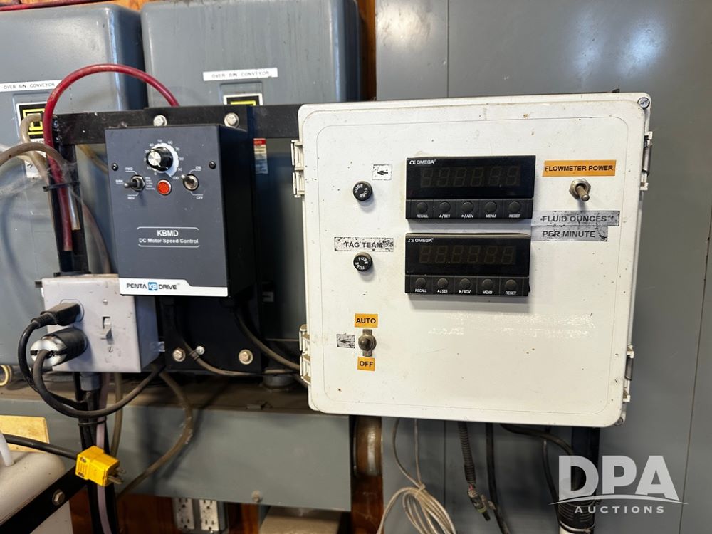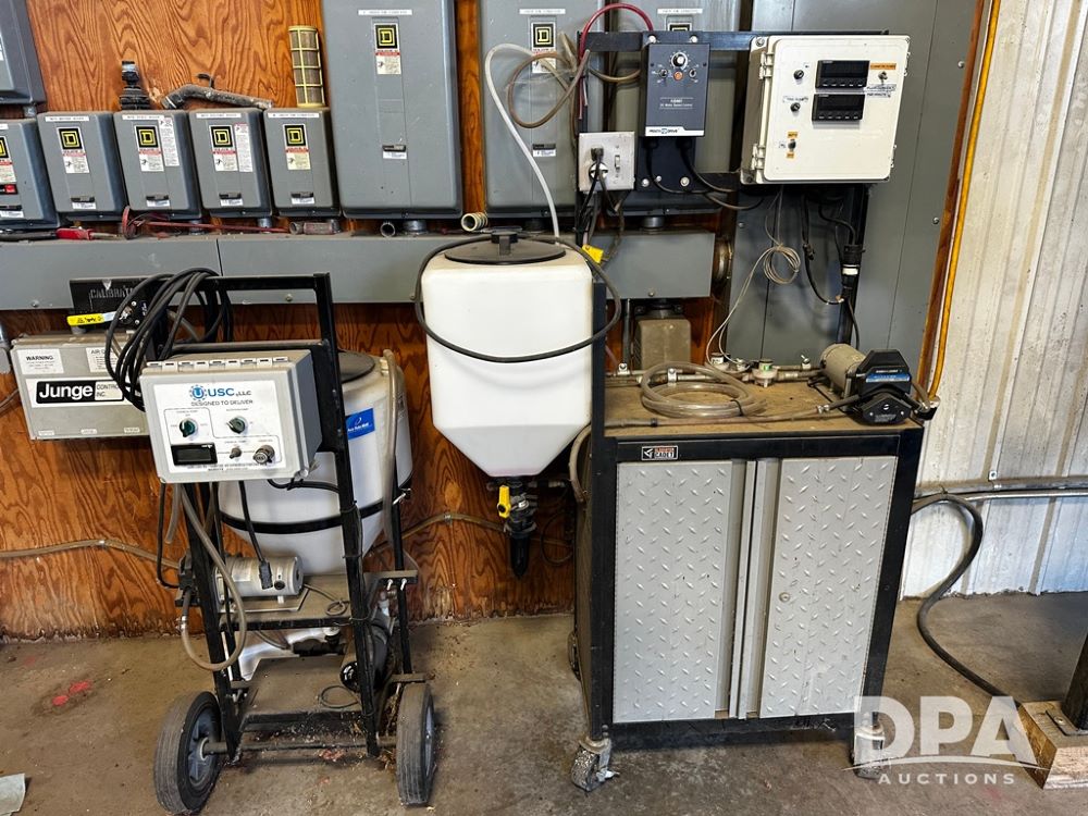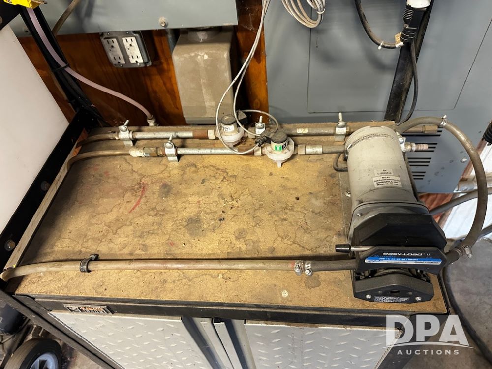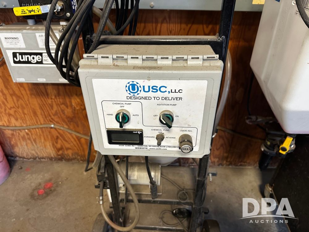 USC SC15 Inoculant Tank (NJP465), 15 gal inoculant tank and controls, 15 gal poly cone bottom tank, 1 head peristaltic pump & controls, second pump for agitation, second cart set up with 2 flowmeters & display, 10 gal cone bottom poly tank with one head, peristaltic pump and controls, second agitation pump.