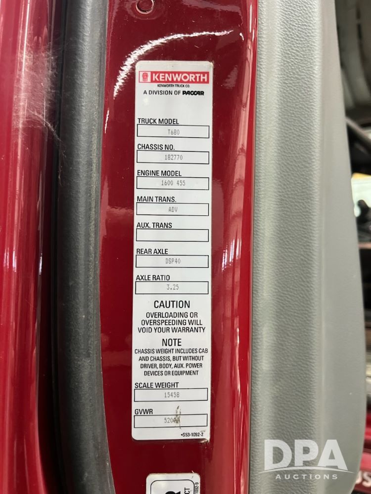 2018 Kenworth T680 Truck (ED5351), Paccar 455 HP engine, automatic transmission, heat, air-conditioning, radio, power locks and windows, jake brake, cruise, air ride, sliding fifth wheel, all aluminum wheels, 223" wheelbase, 22.5 tires, shows