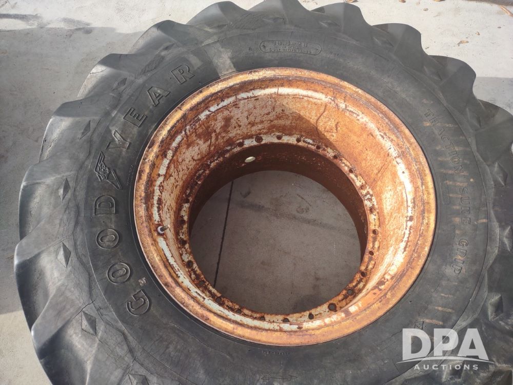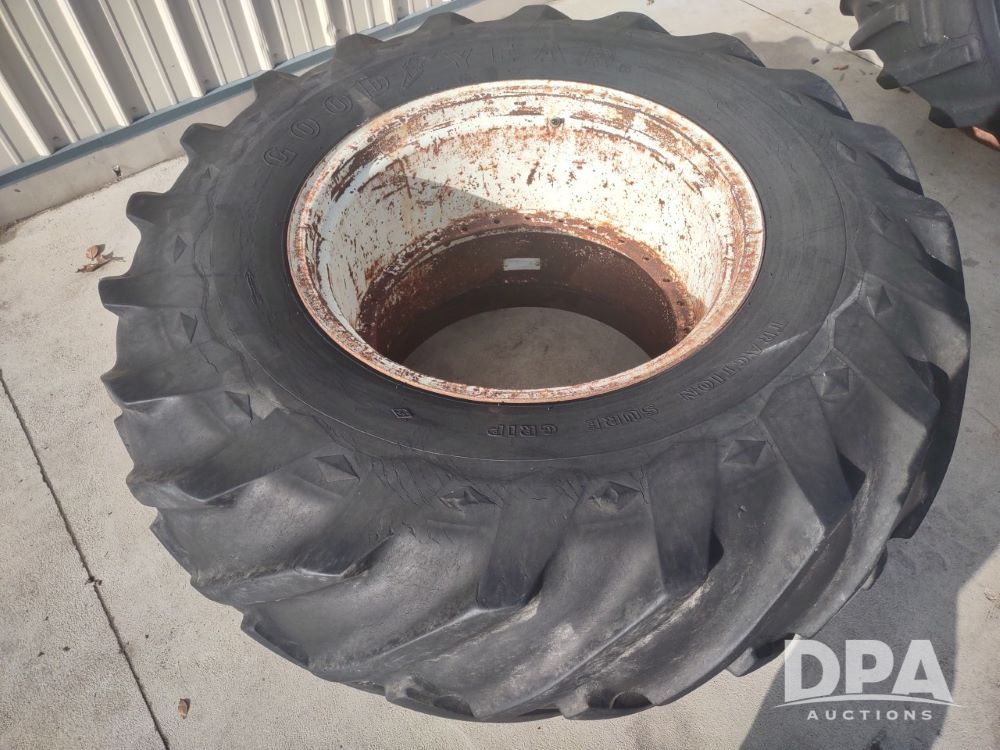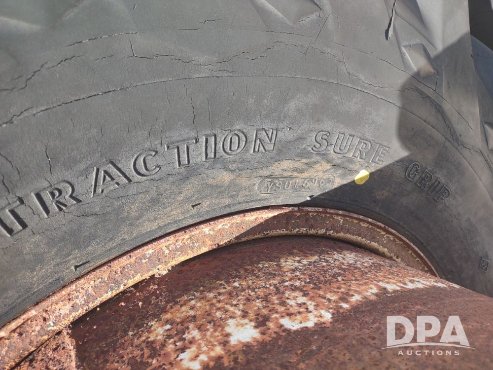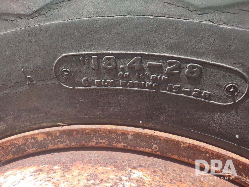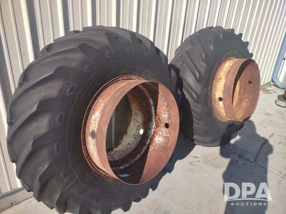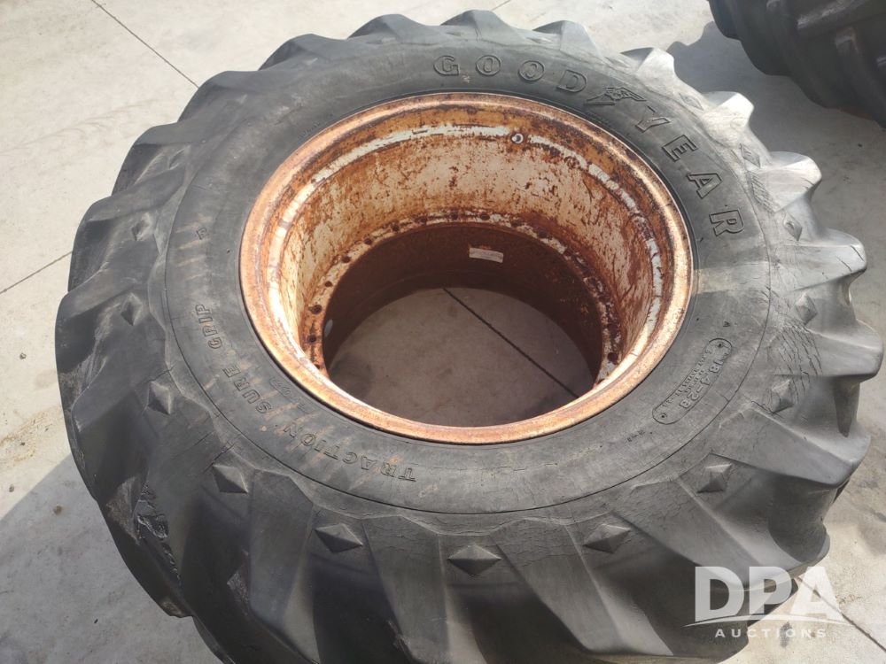 Good Year Tractor Duals (NP6328, Unit 011), Good Year 18.4-28 Traction Sure Grip Tires, (2) tires with 1" tread depth, 6 ply rating 15-28 on a 16" rim, outside rim diameter is 27.5" and inside rim diameter is 27 1/8", the rims are made by Dietrich Mfg, good condition.