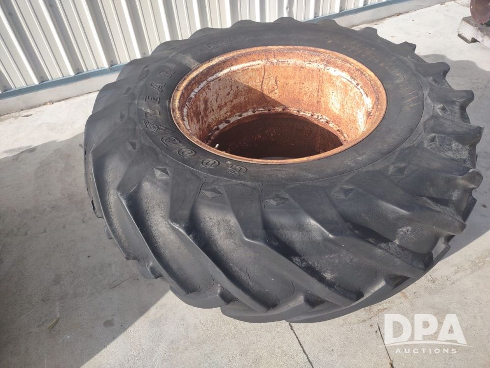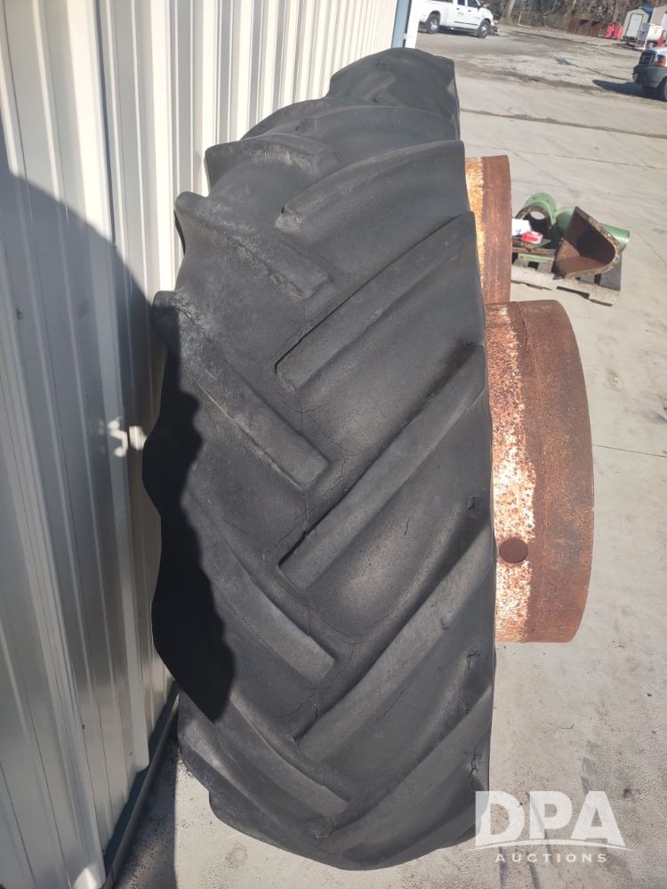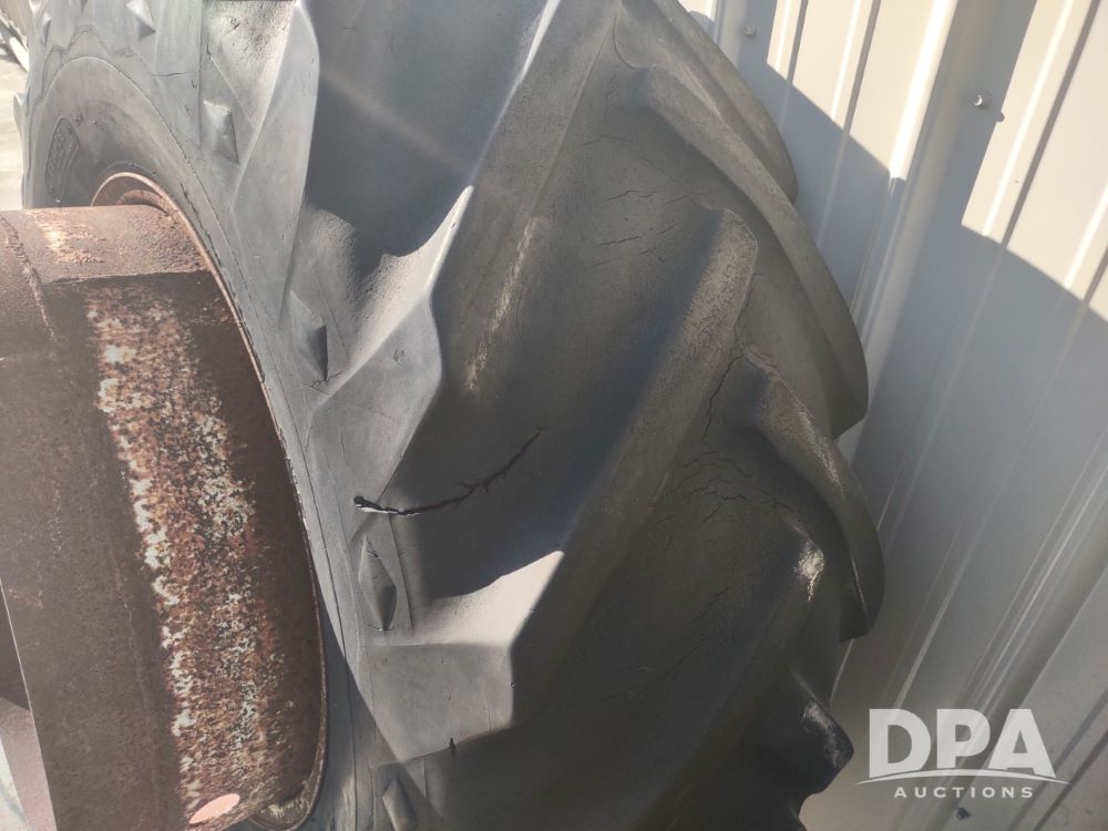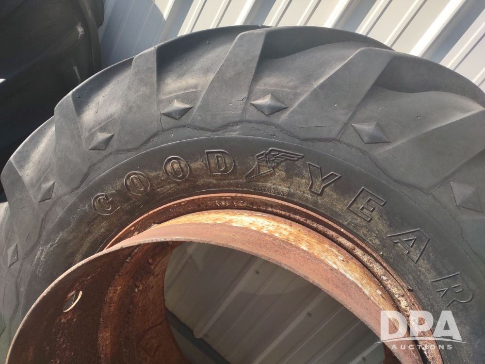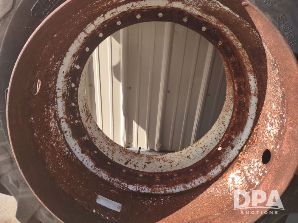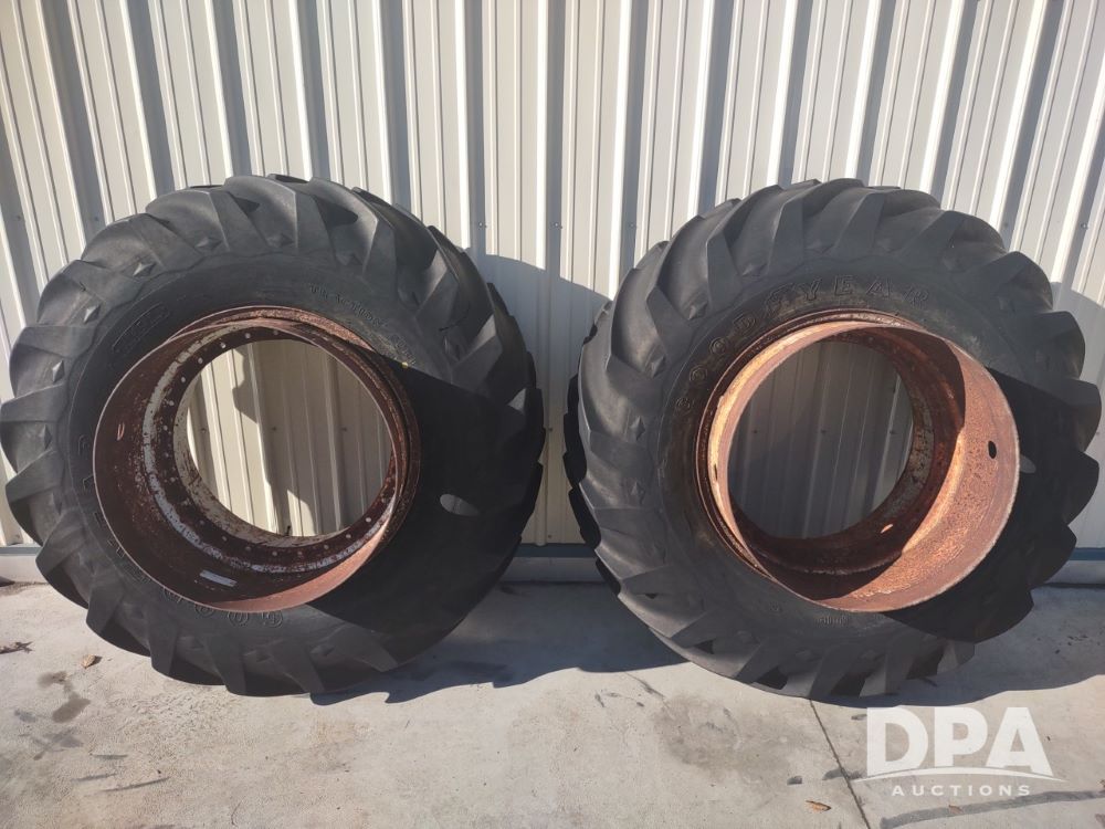 Good Year Tractor Duals (NP6328, Unit 011), Good Year 18.4-28 Traction Sure Grip Tires, (2) tires with 1" tread depth, 6 ply rating 15-28 on a 16" rim, outside rim diameter is 27.5" and inside rim diameter is 27 1/8", the rims are made by Dietrich Mfg, good condition.