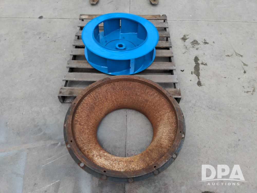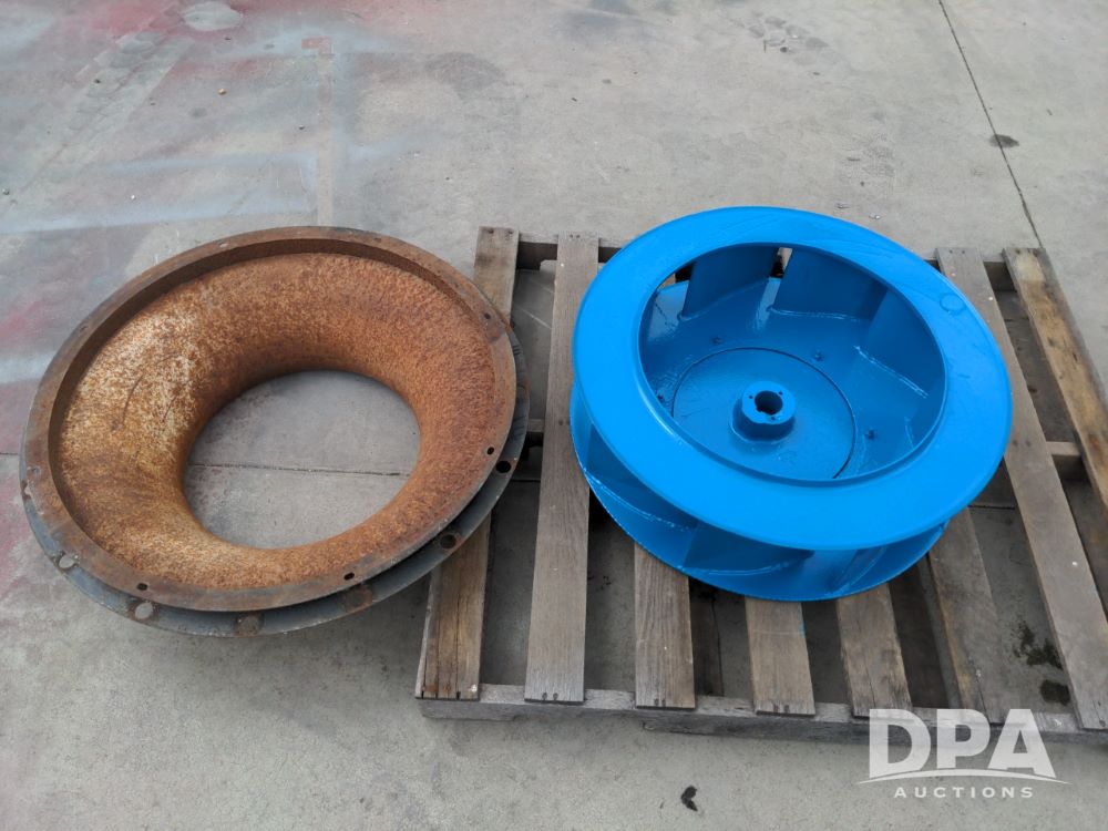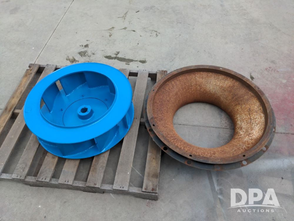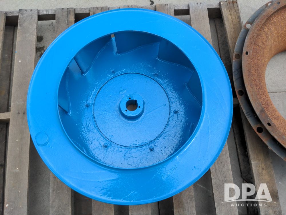 Grain Bin Fan Rotor (NP6329, Unit 012), 27.5" fan wheel with intake funnel, inlet center is 17", fan width is 7.25".