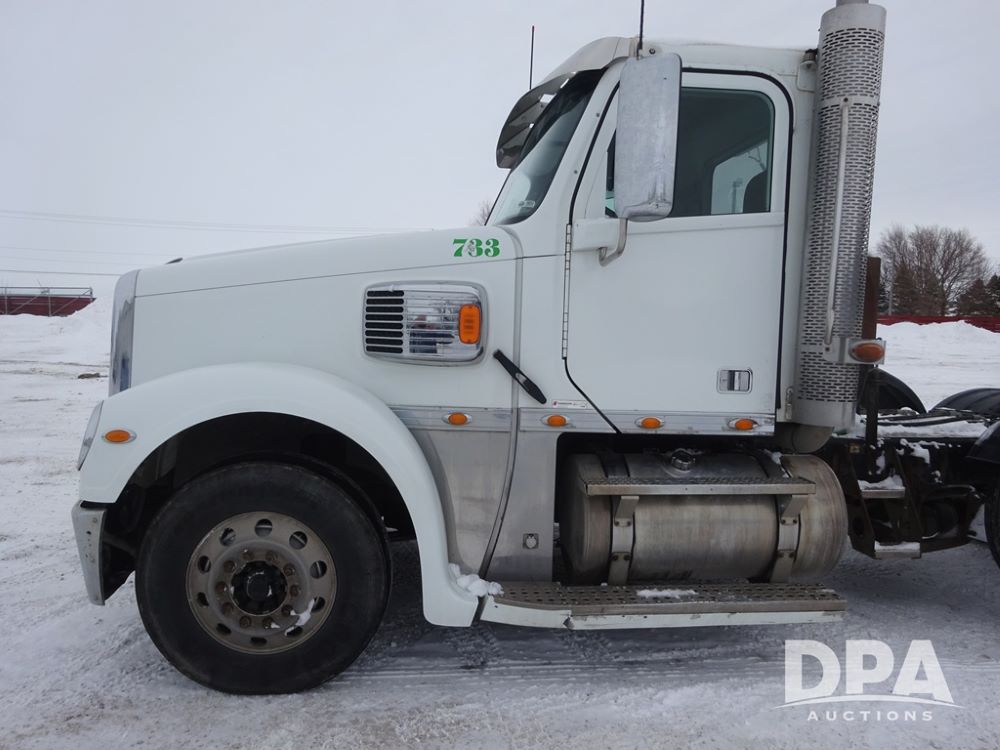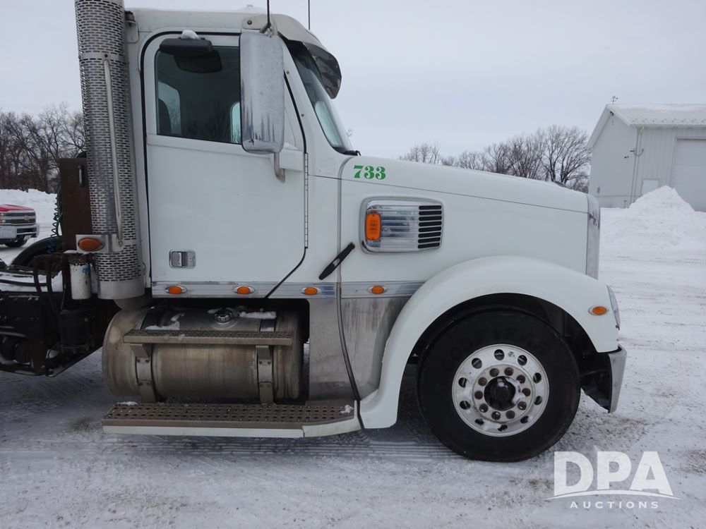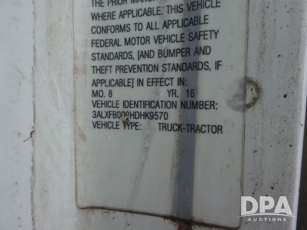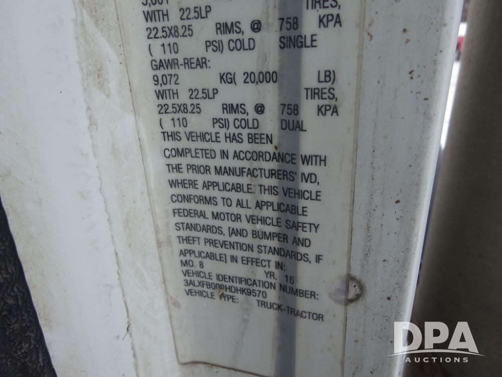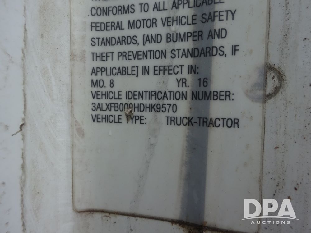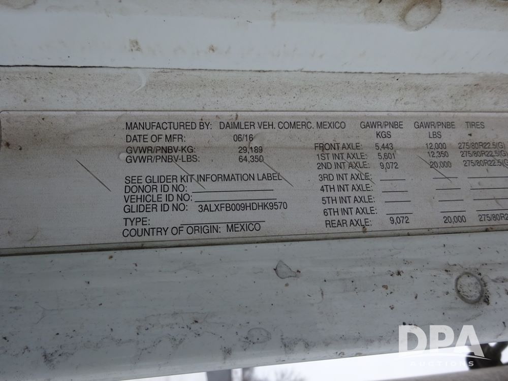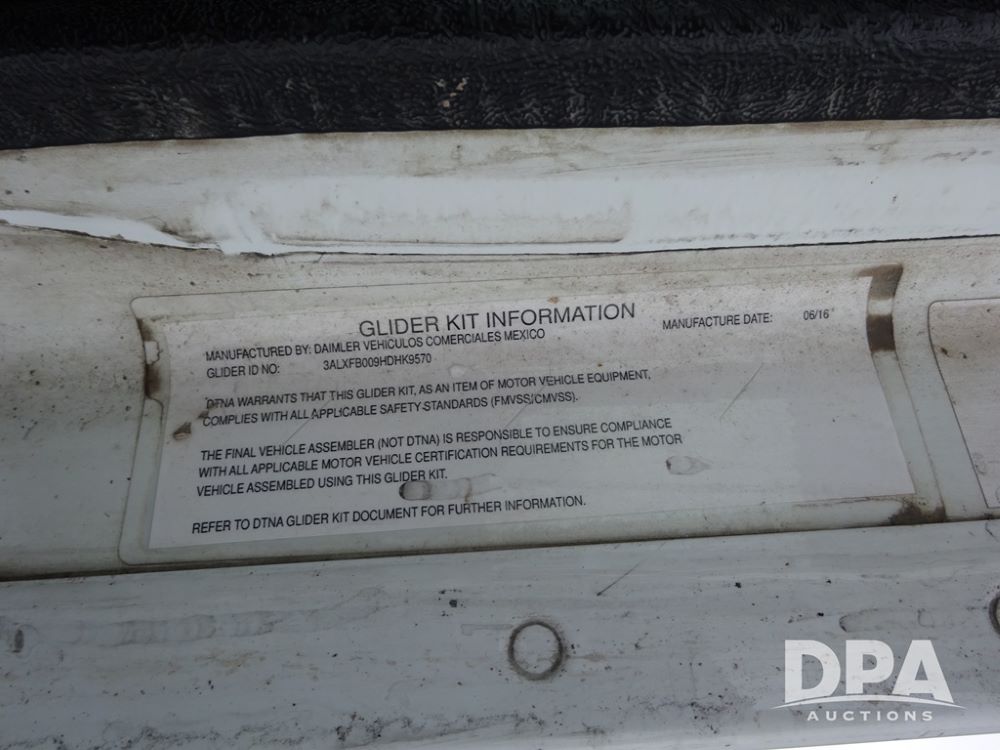 2017 Freightliner Coronado Day Cab Glider Truck (PZ14241, Unit 733), Detroit Series 60 diesel engine, Eaton Fuller 13 speed transmission, air conditioning, heat, Am/Fm radio, cruise control, engine brake, power windows & locks, 5th wheel, wet kit, tandem axle, full screw, air ride suspension, pusher axle, 295/75R22.5 tires, aluminum rims, fenders, 295/75R22.5 pusher tires, fenders, shows 570,596 miles.