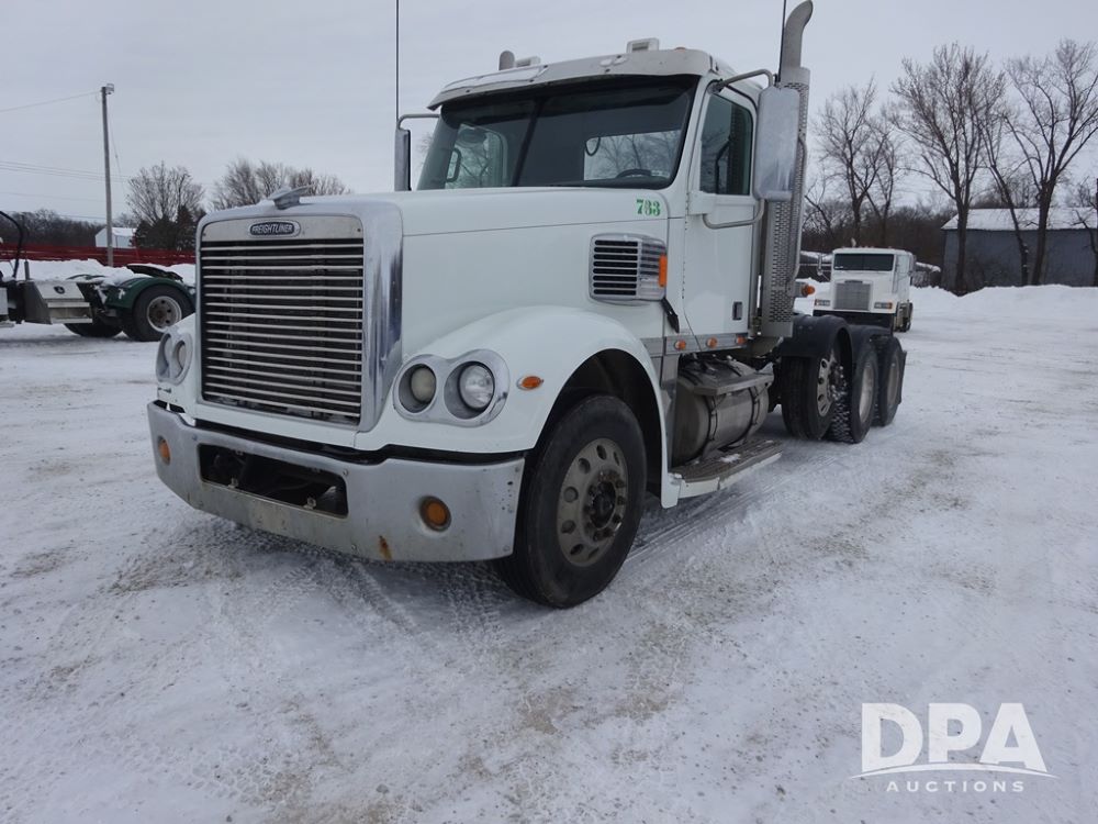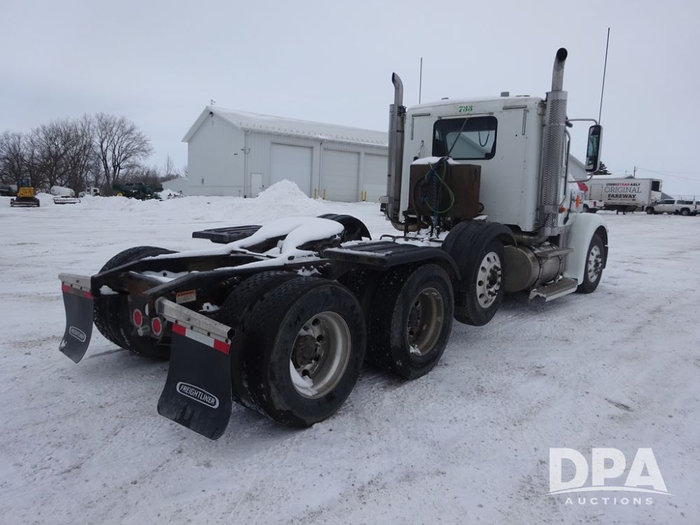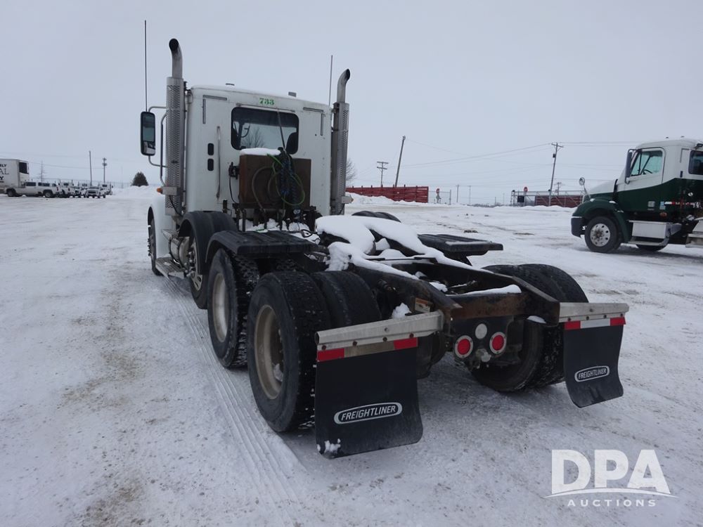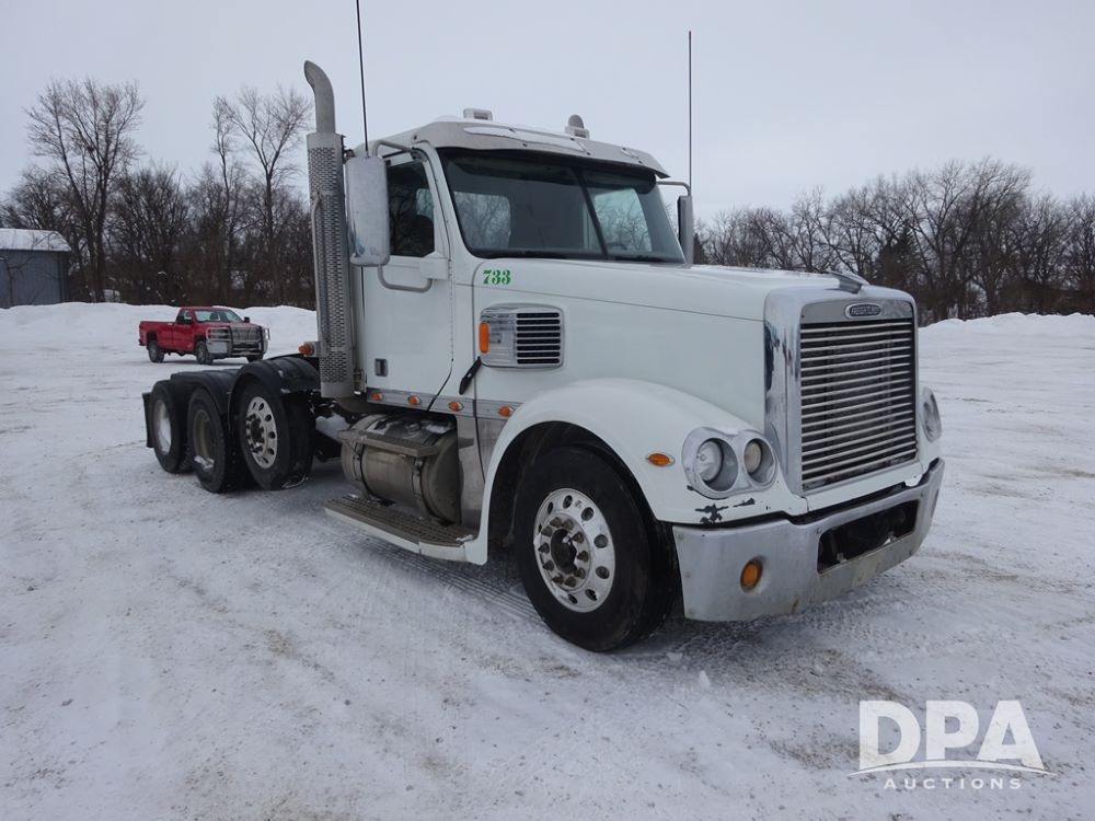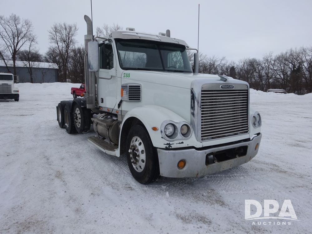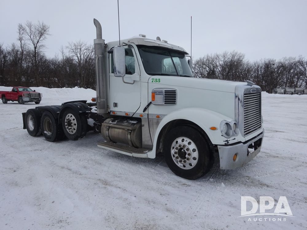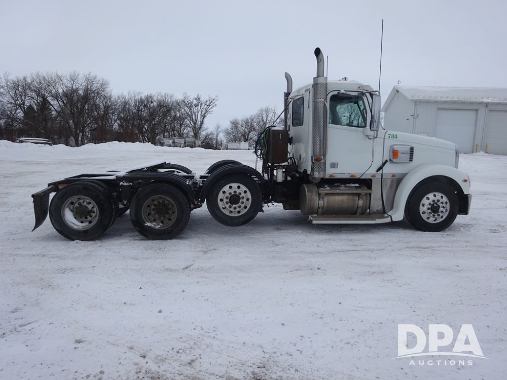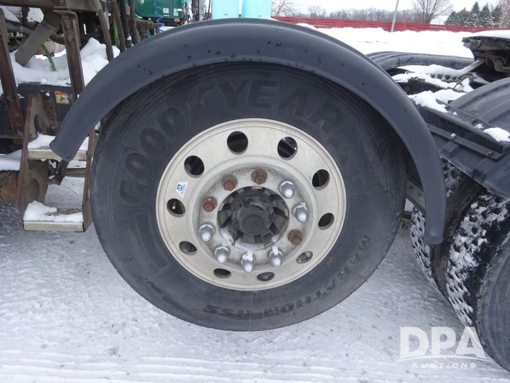 2017 Freightliner Coronado Day Cab Glider Truck (PZ14241, Unit 733), Detroit Series 60 diesel engine, Eaton Fuller 13 speed transmission, air conditioning, heat, Am/Fm radio, cruise control, engine brake, power windows & locks, 5th wheel, wet kit, tandem axle, full screw, air ride suspension, pusher axle, 295/75R22.5 tires, aluminum rims, fenders, 295/75R22.5 pusher tires, fenders, shows 570,596 miles.
